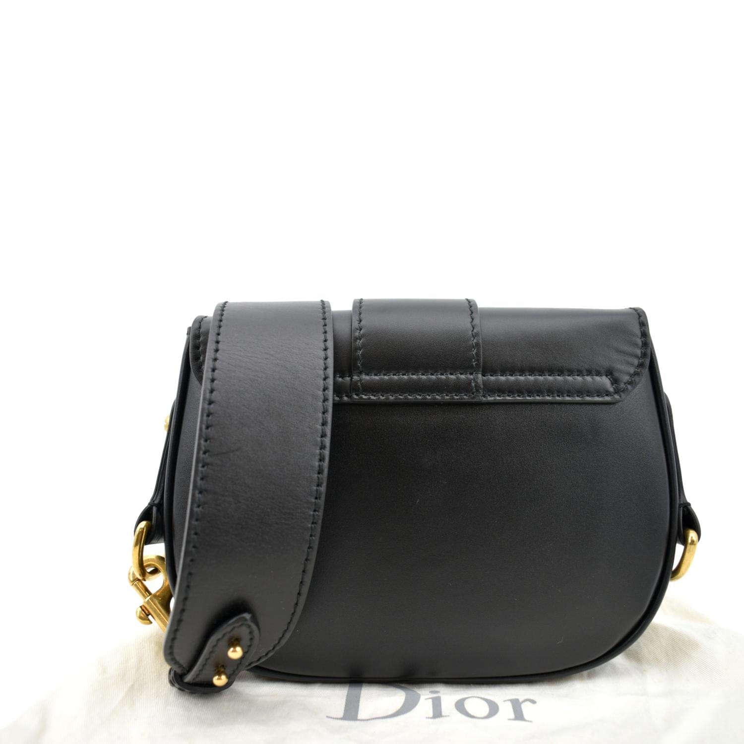 CHRISTIAN DIOR D Fence Calfskin Leather Saddle Bag Black