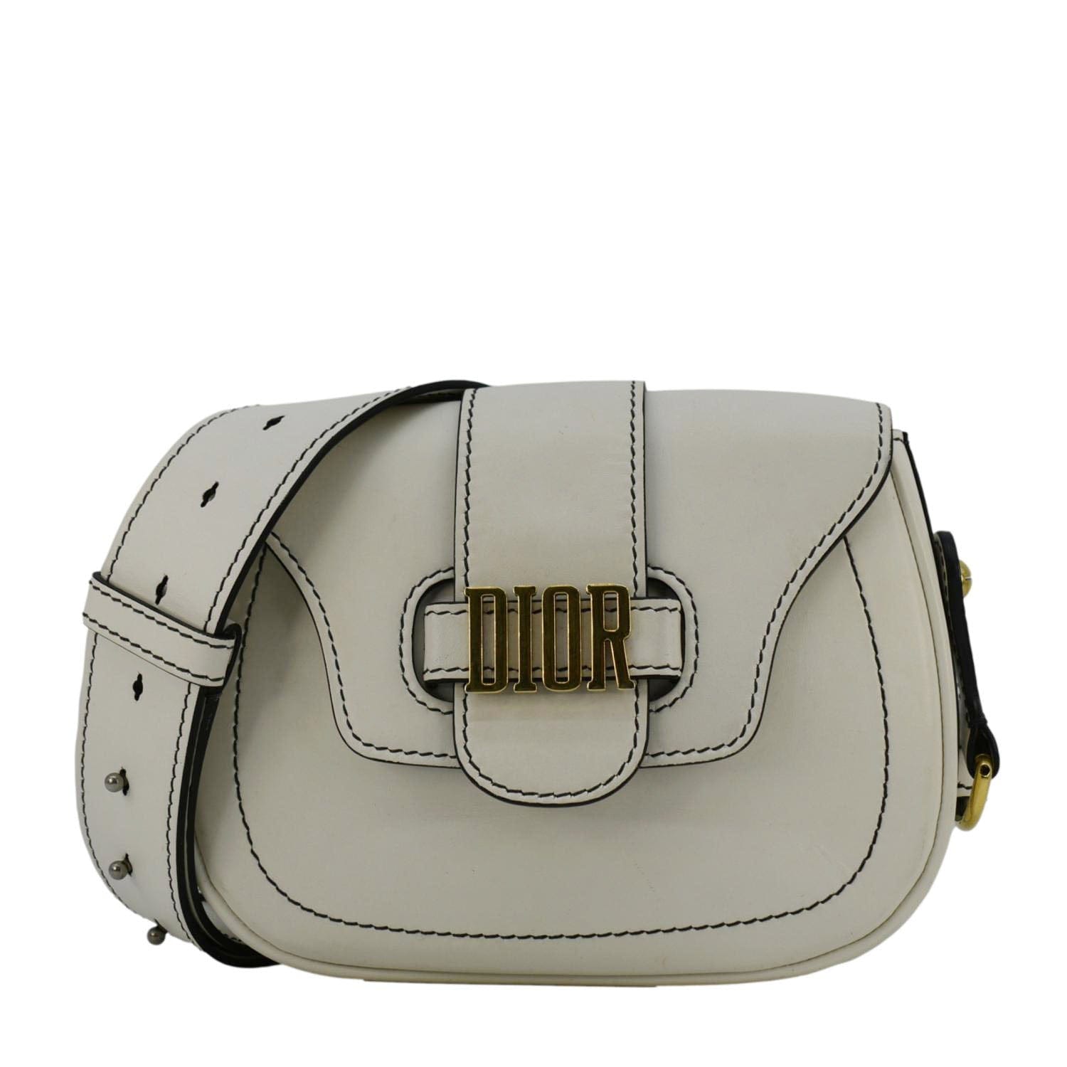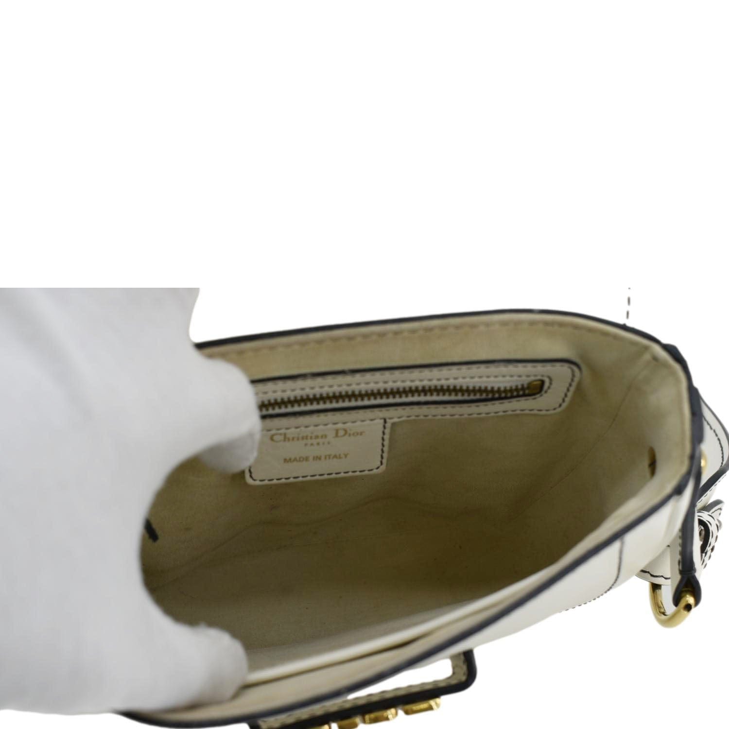 CHRISTIAN DIOR D Fence Calfskin Leather Saddle Bag White