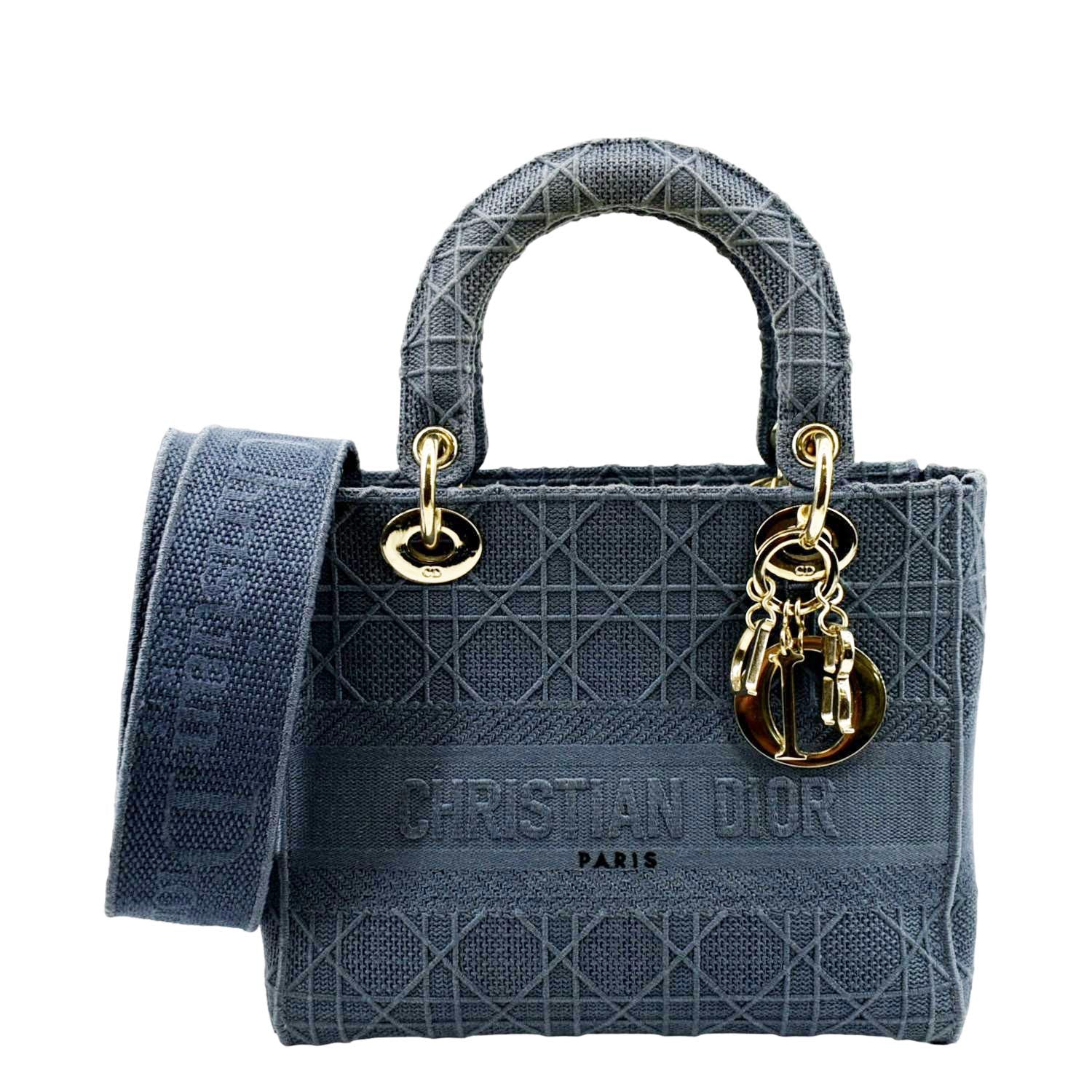 CHRISTIAN DIOR Lady D-Lite Embroidered Canvas Crossbody Bag Denim Blue