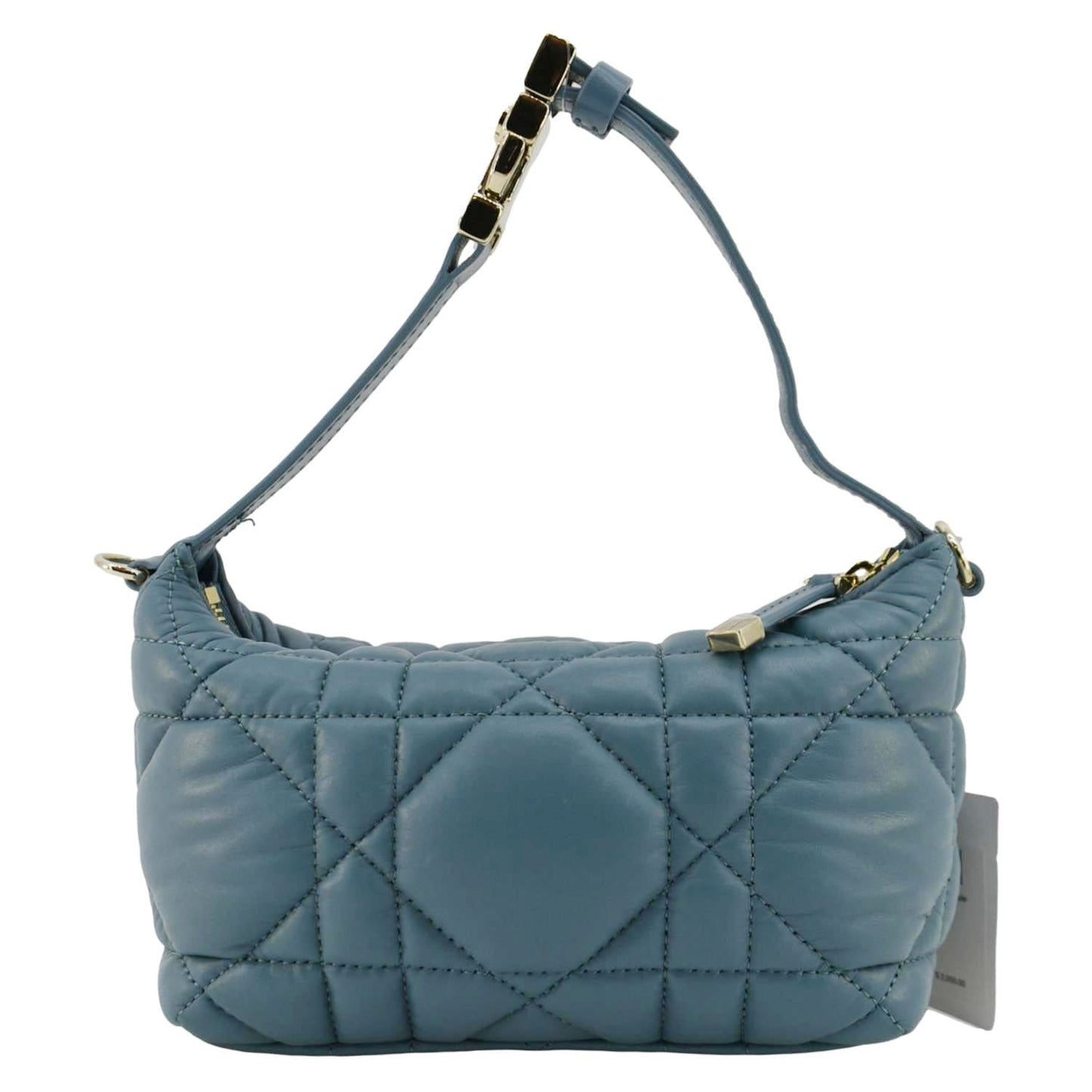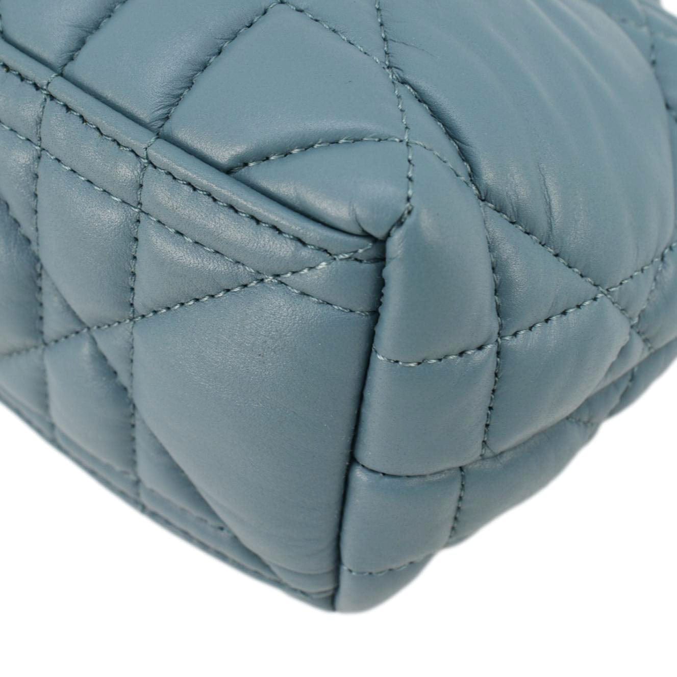 The CHRISTIAN DIOR Diortravel Calfskin Macrocannage Clutch bag in blue offers a blend of luxury and practicality. With its bold quilting and compact design, it’s perfect for stylishly carrying your essentials.