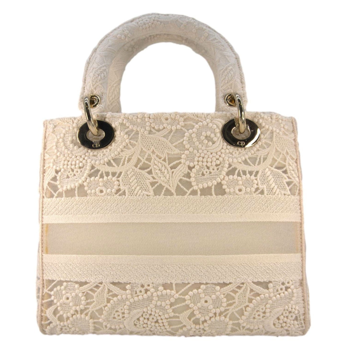 The Christian Dior Lady D-Lite Shoulder Bag in white embroidered canvas exudes refined elegance. Featuring intricate tonal embroidery, the iconic 'D.I.O.R.' charms, and a detachable strap, it’s a sophisticated blend of heritage and modernity.