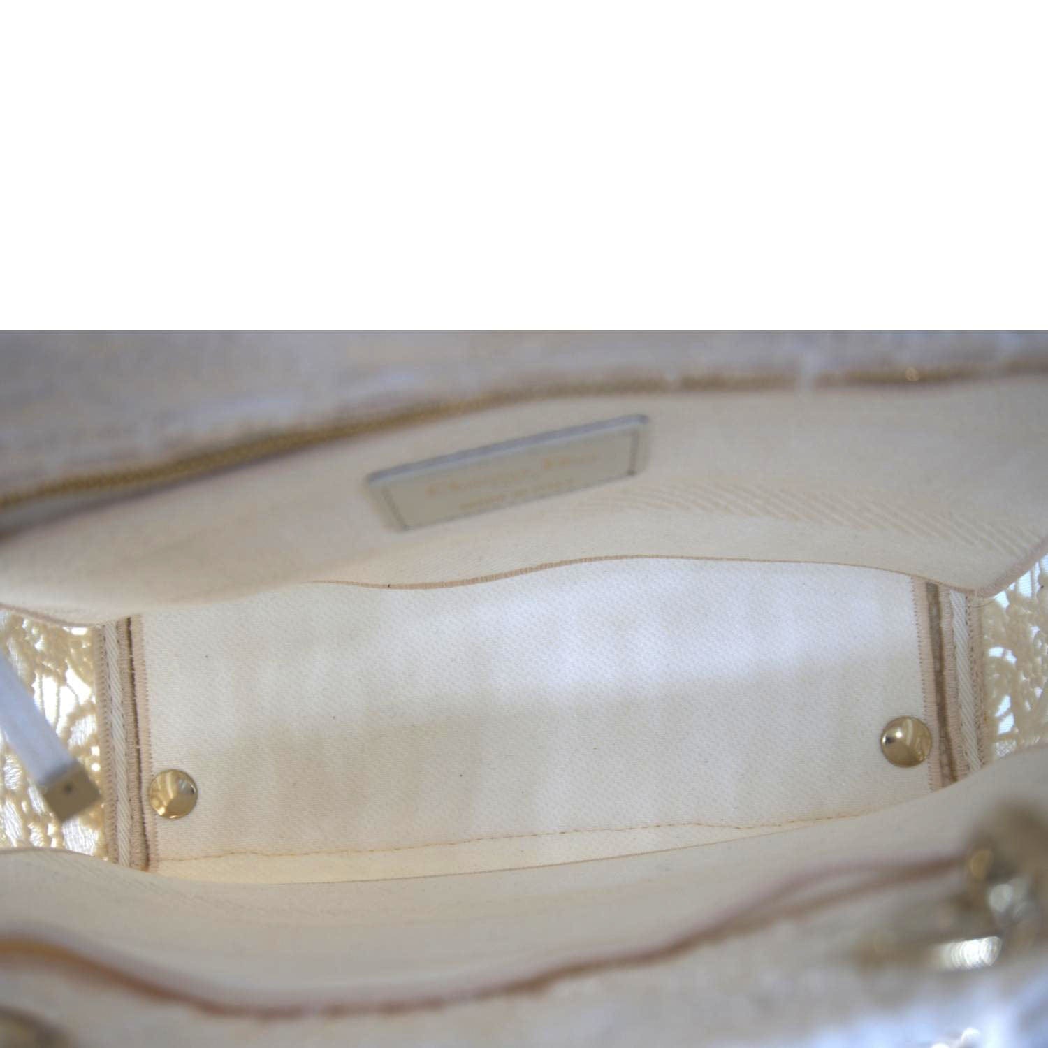 CHRISTIAN DIOR Lady dior D-Lite Embroidered Canvas Shoulder Bag White