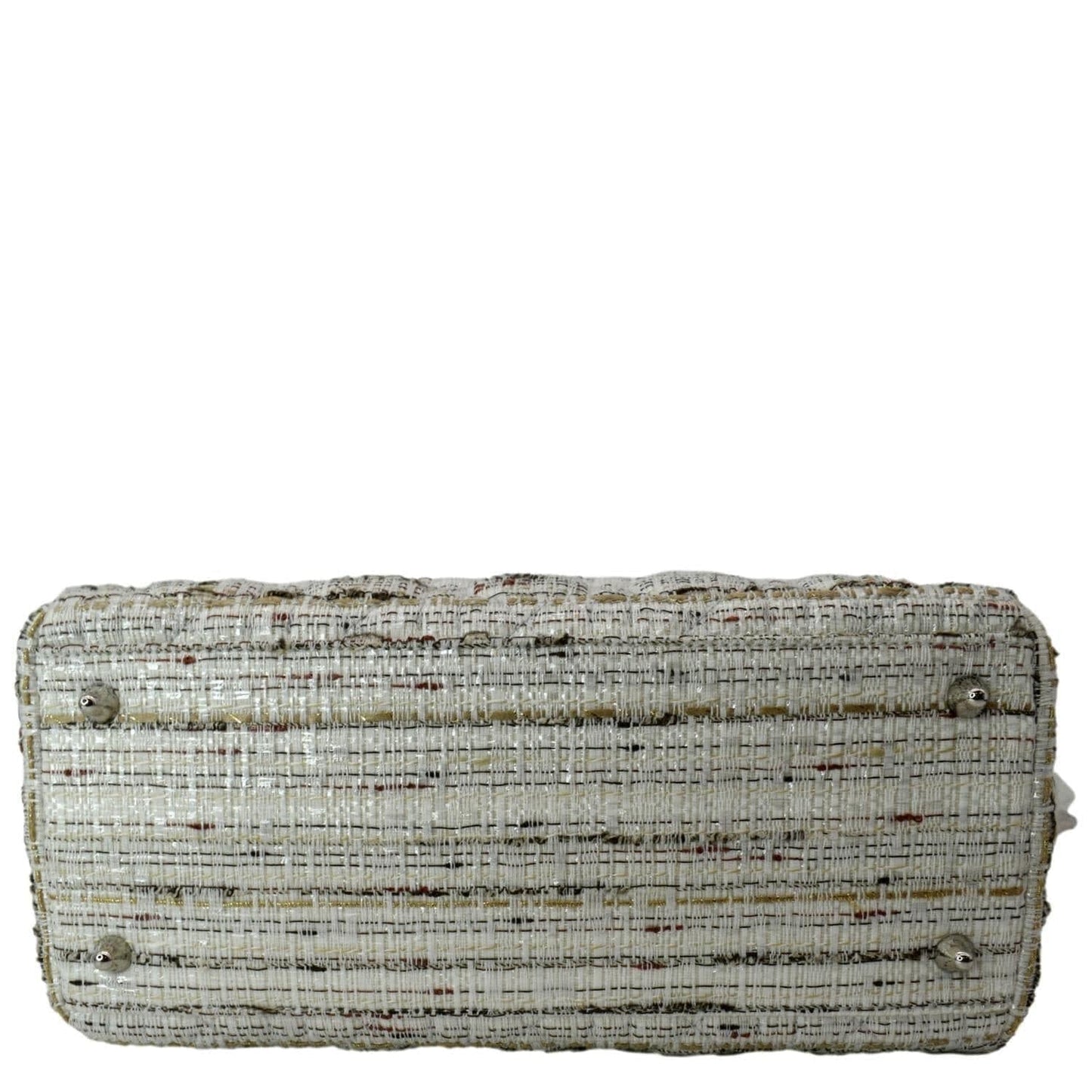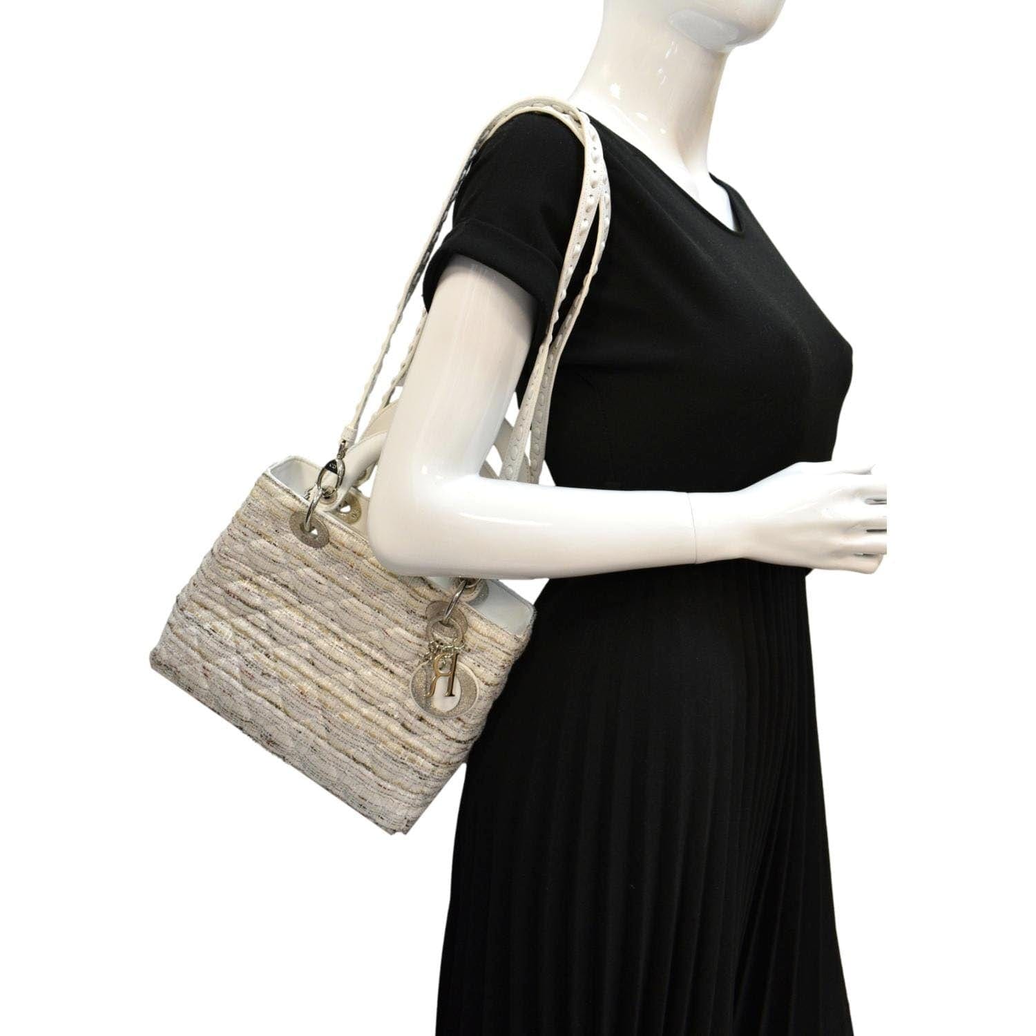 CHRISTIAN DIOR Medium Lady Dior Tweed Leather Shoulder Bag White