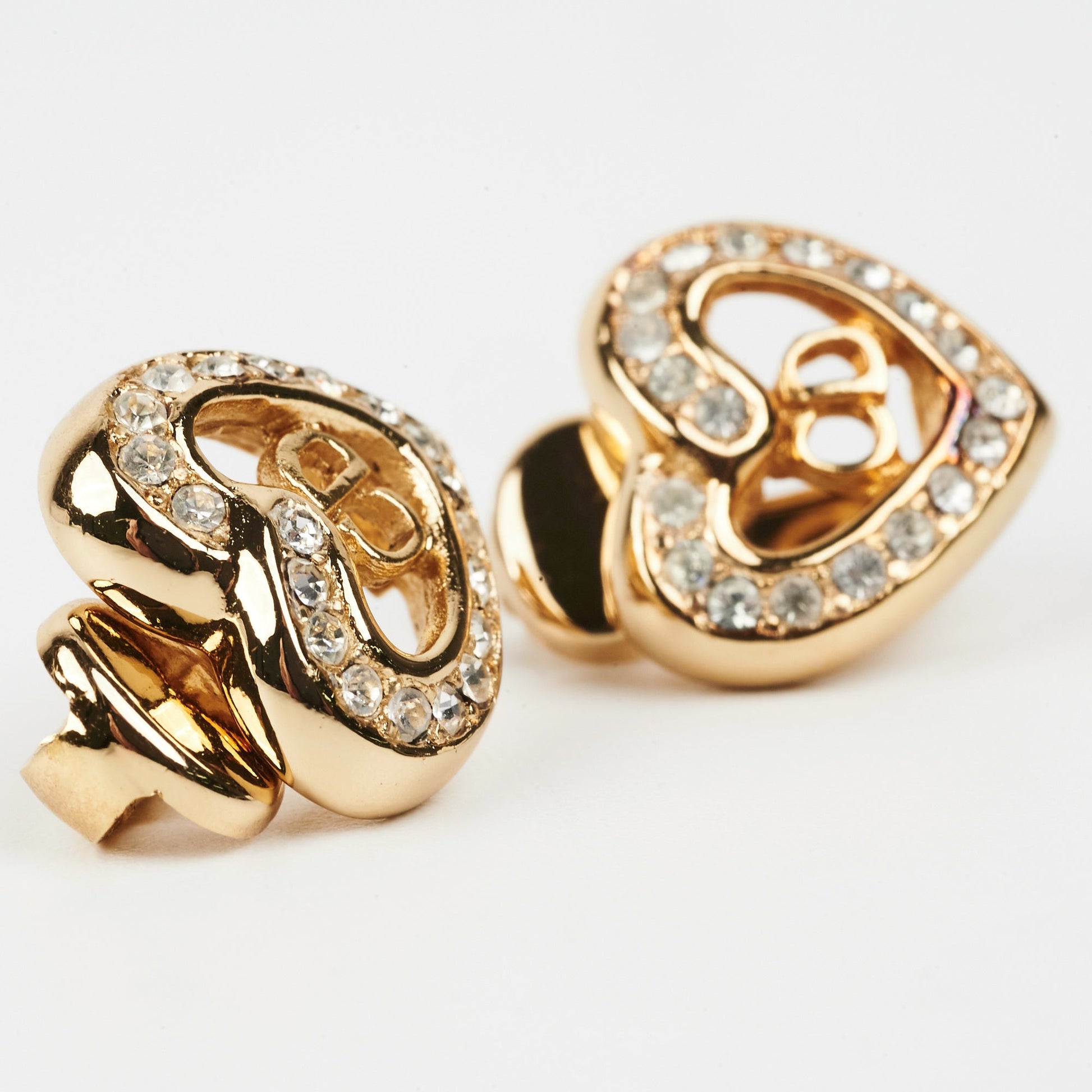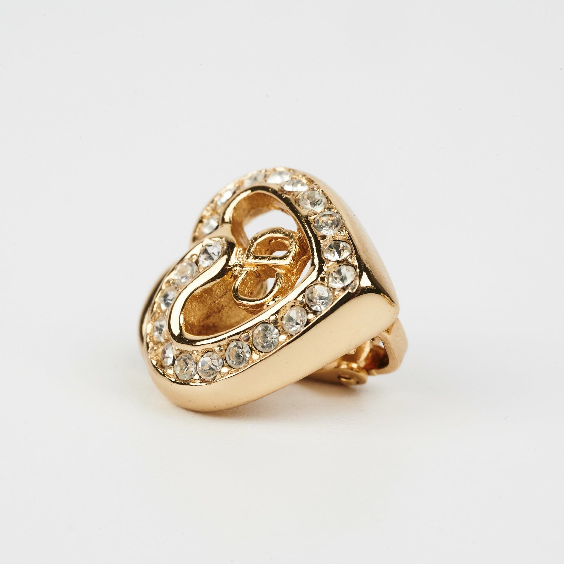 Christian Dior Heart Rhinestone Clip On Earrings Costume Jewellery