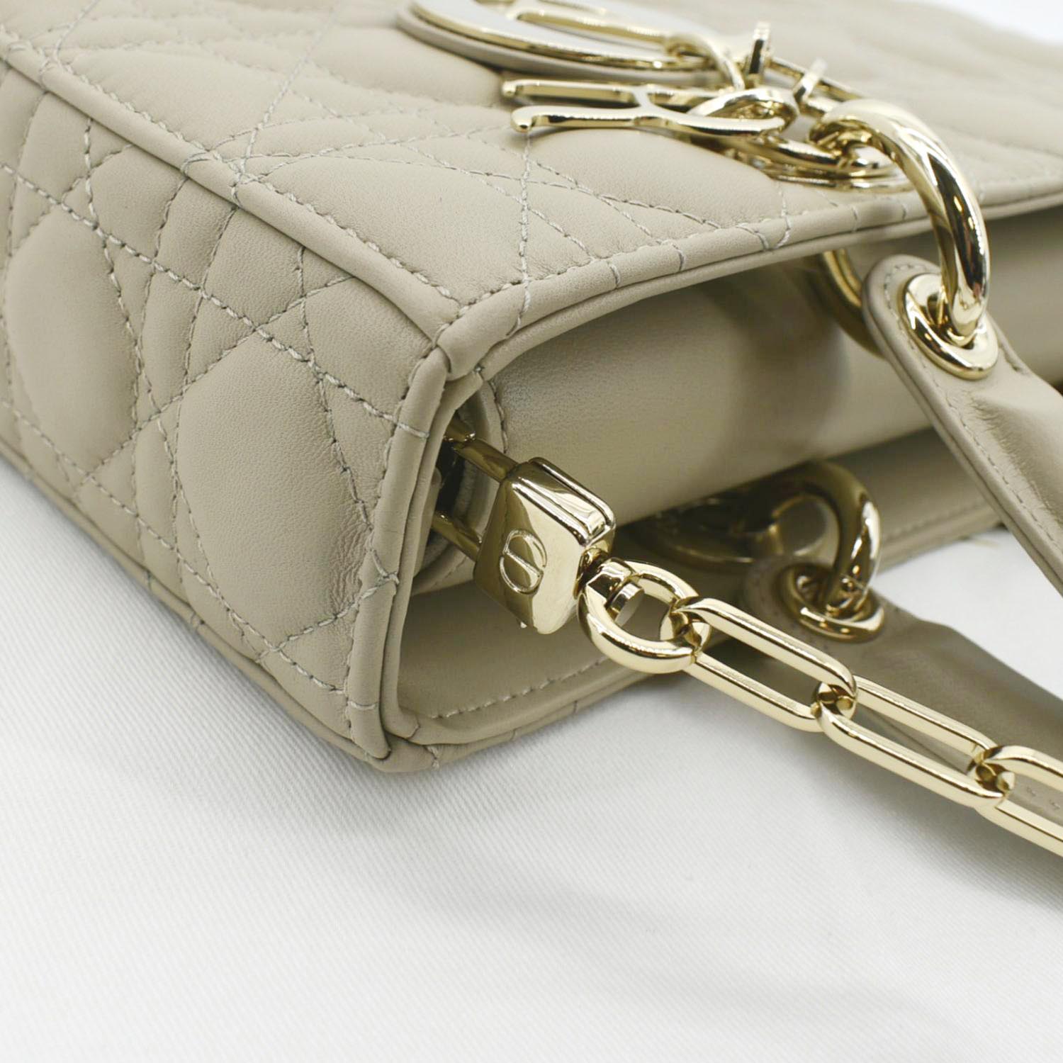 CHRISTIAN DIOR Lady D-Joy Medium Cannage Lambskin Chain Shoulder Bag Sand
