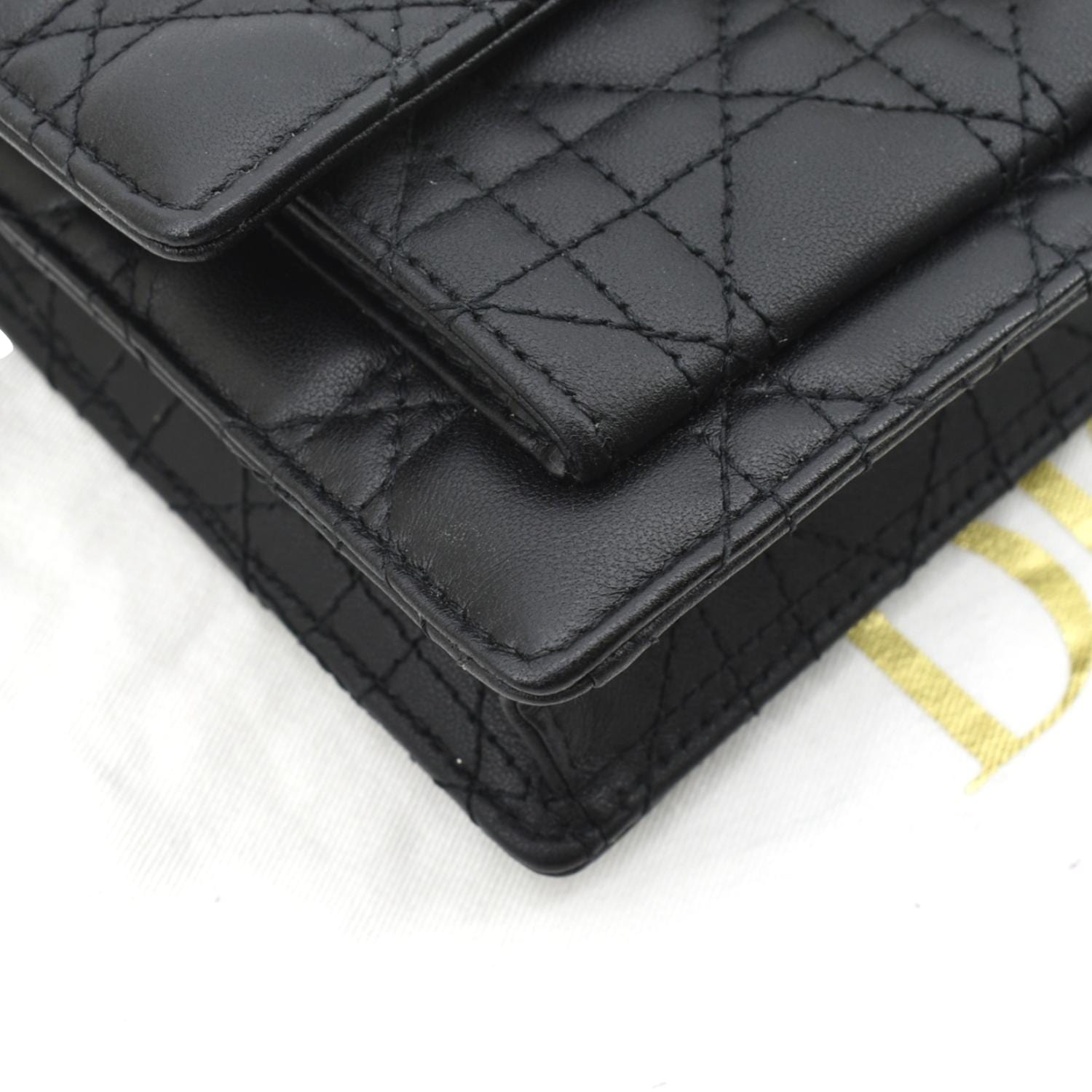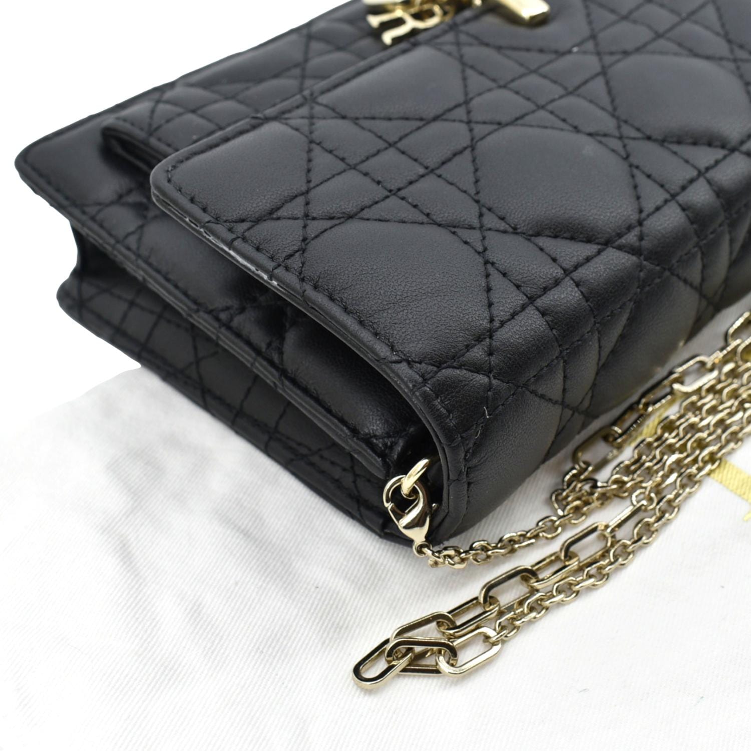 CHRISTIAN DIOR Lady Dior Leather Shoulder Chain Wallet Black