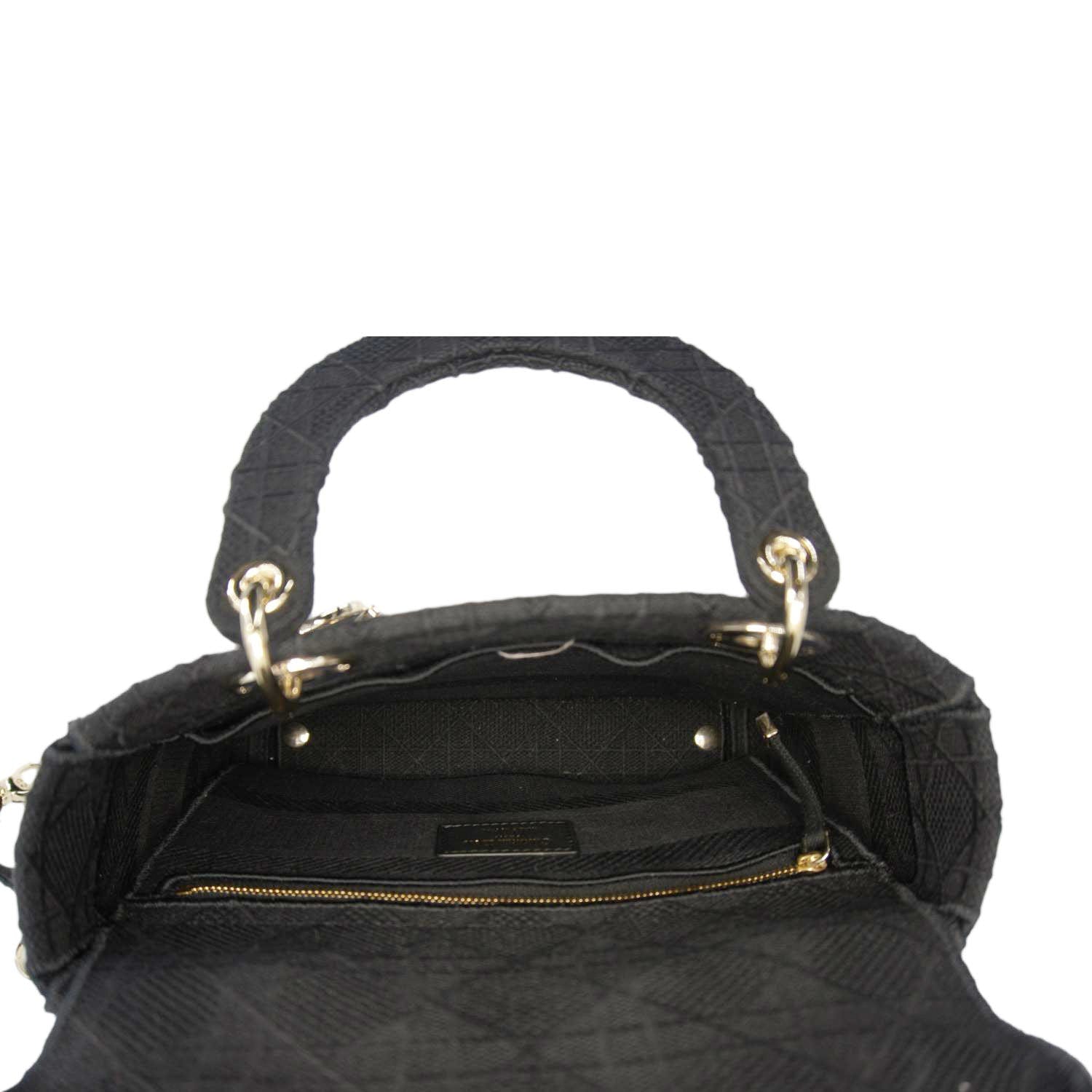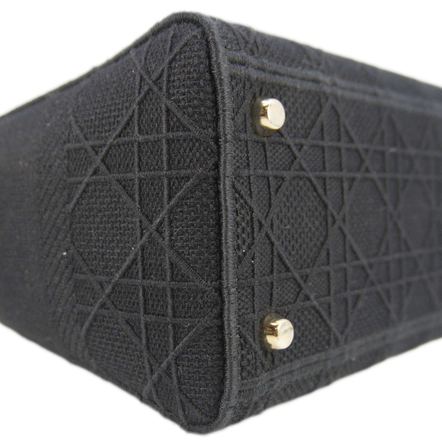 CHRISTIAN DIOR Lady dior D-Lite Embroidered Canvas Shoulder Bag Black
