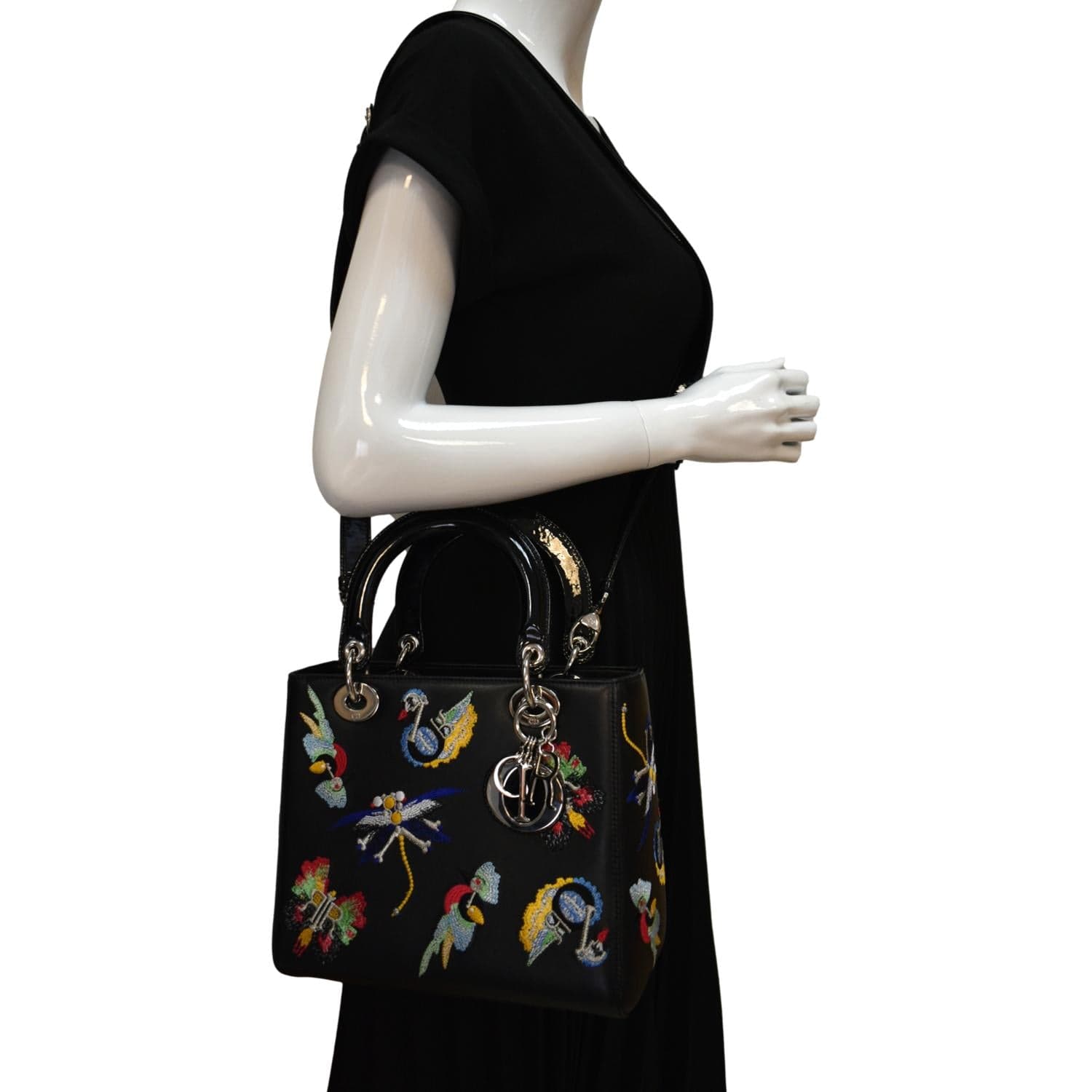CHRISTIAN DIOR Lady Dior Embroidered Calfskin Shoulder Bag Black