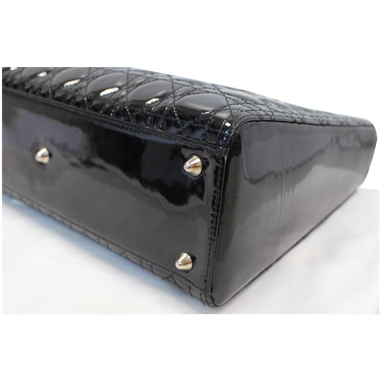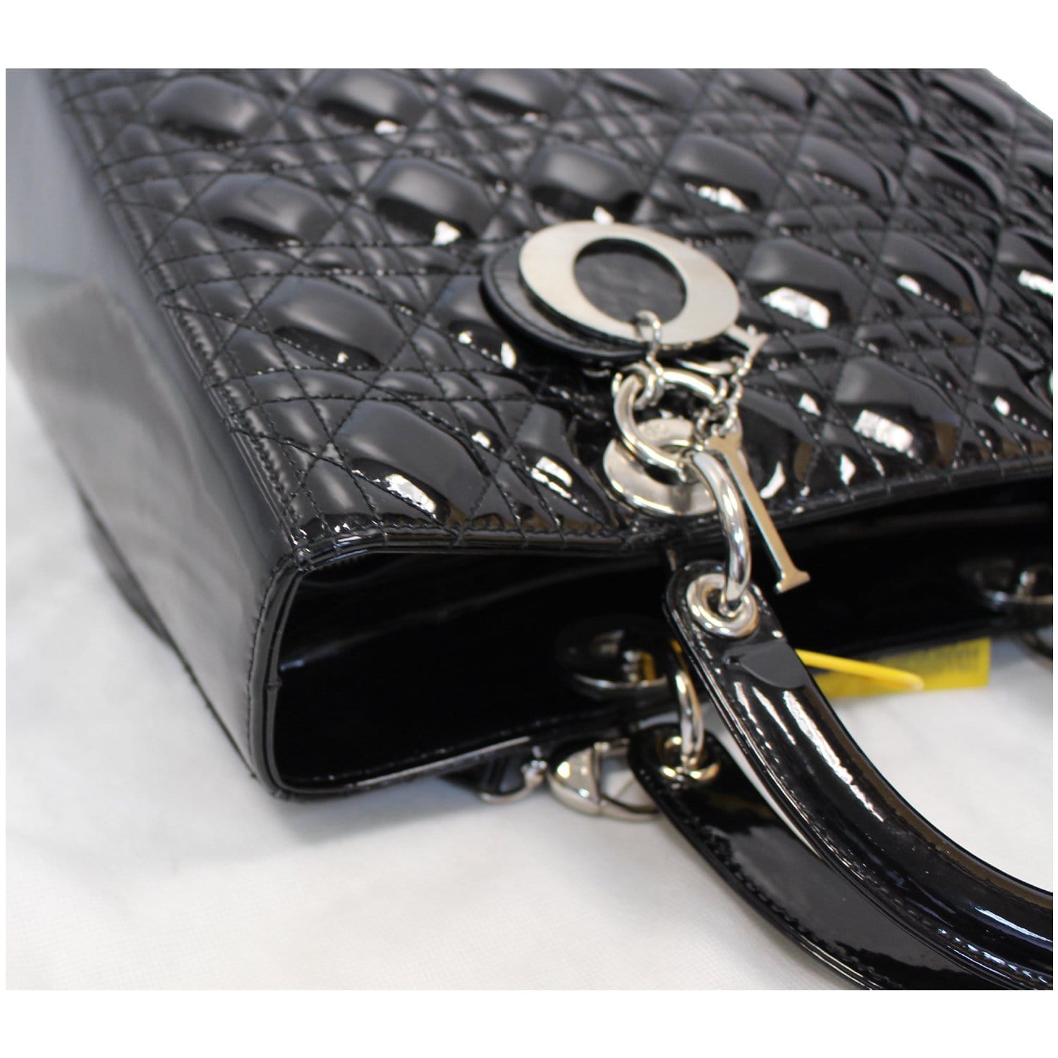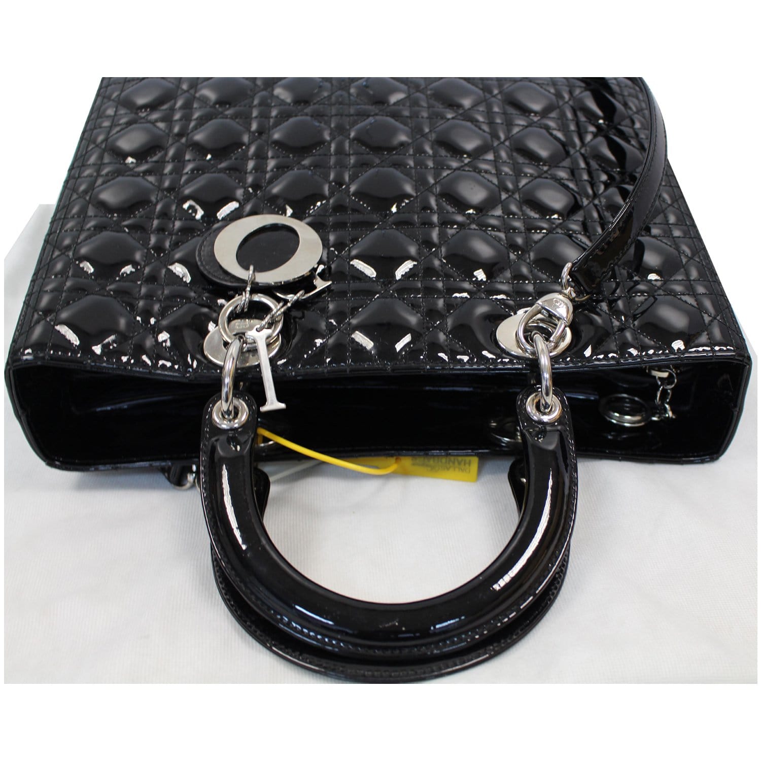 CHRISTIAN DIOR Lady Dior Large Quilted Patent Leather Shoulder Bag Black