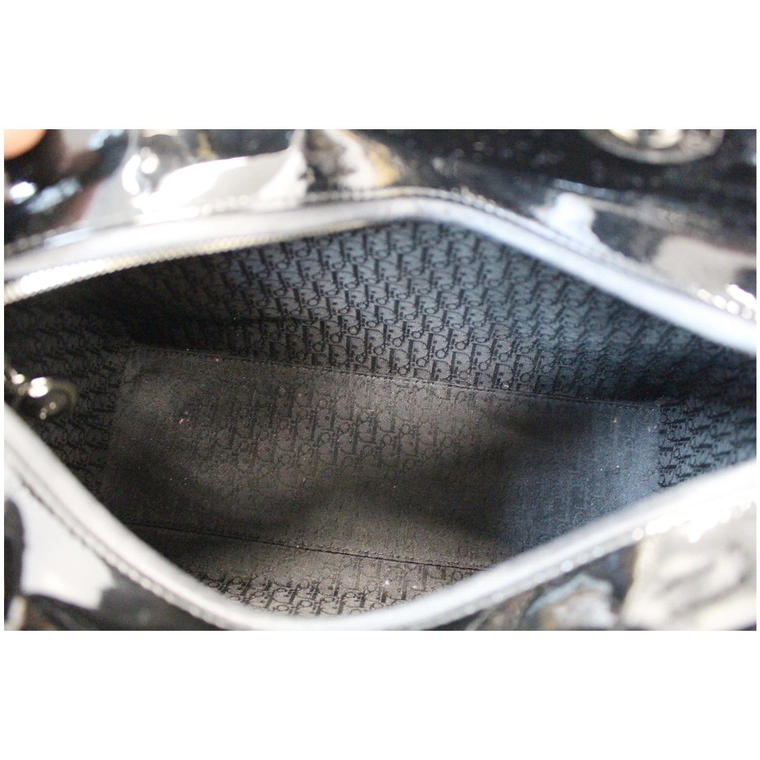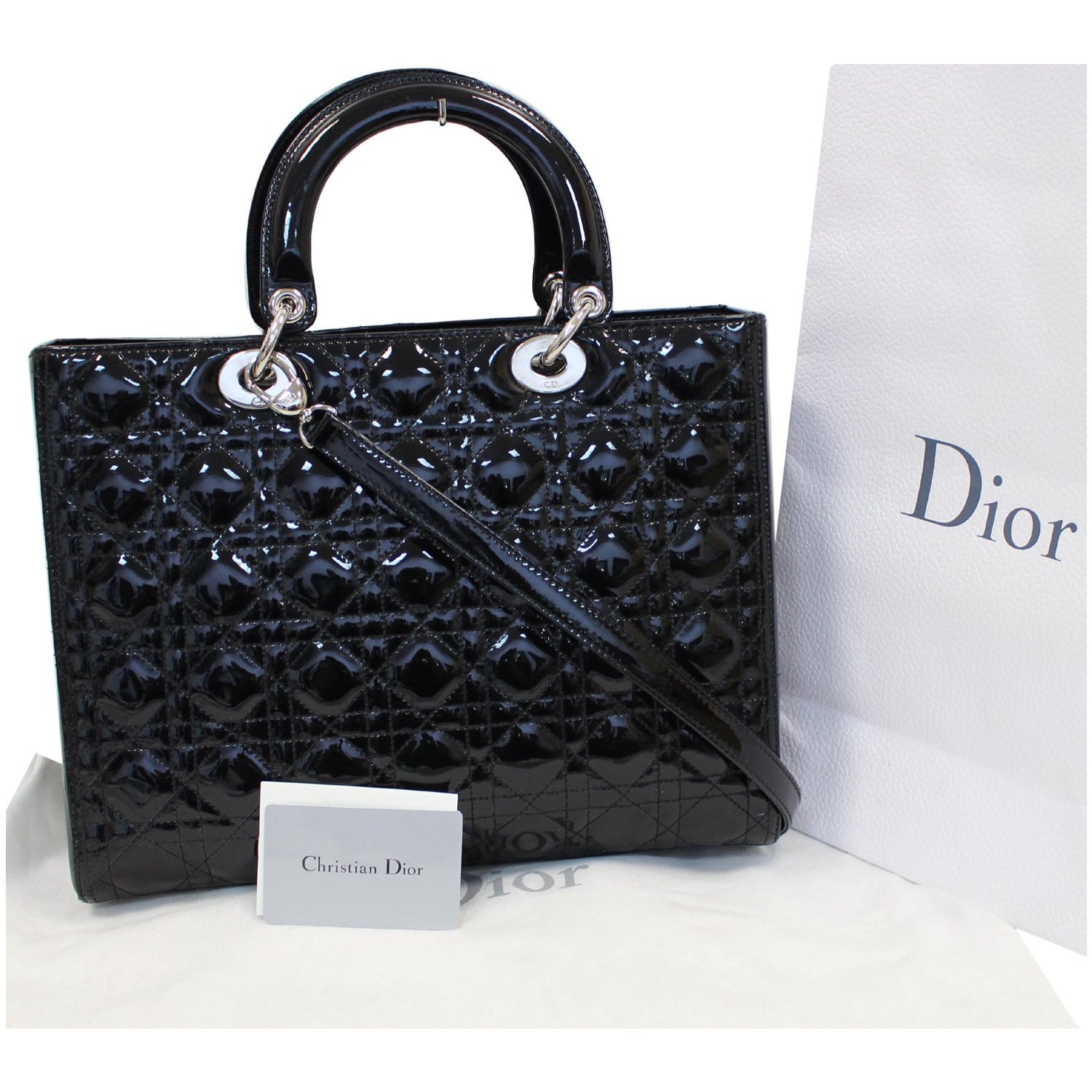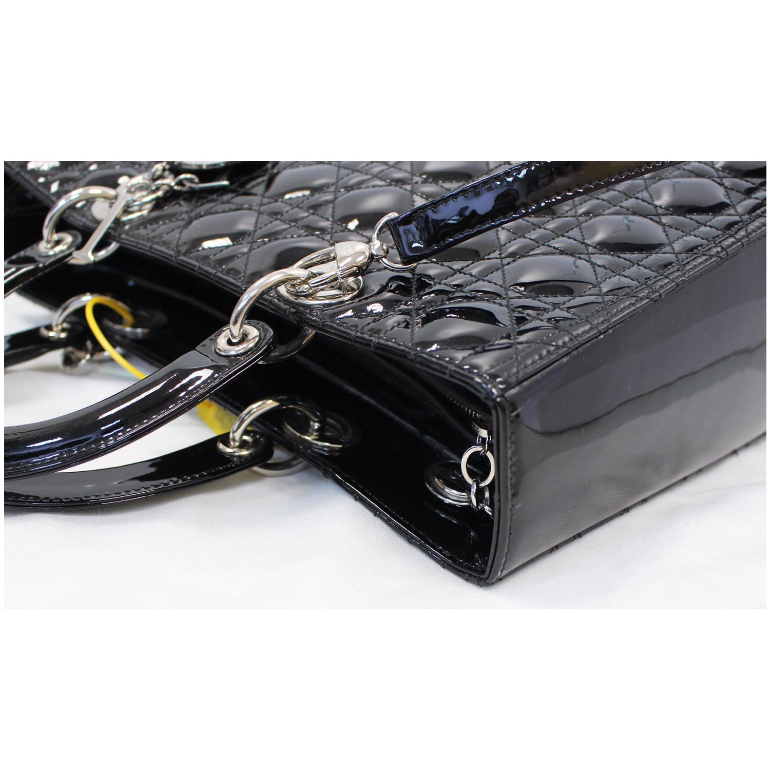CHRISTIAN DIOR Lady Dior Large Quilted Patent Leather Shoulder Bag Black