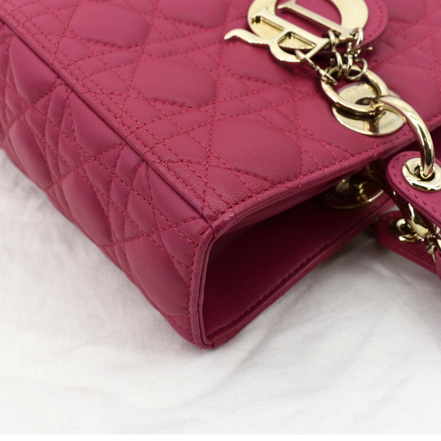 CHRISTIAN DIOR Large Lady Dior Cannage Lambskin Shoulder Bag Pink