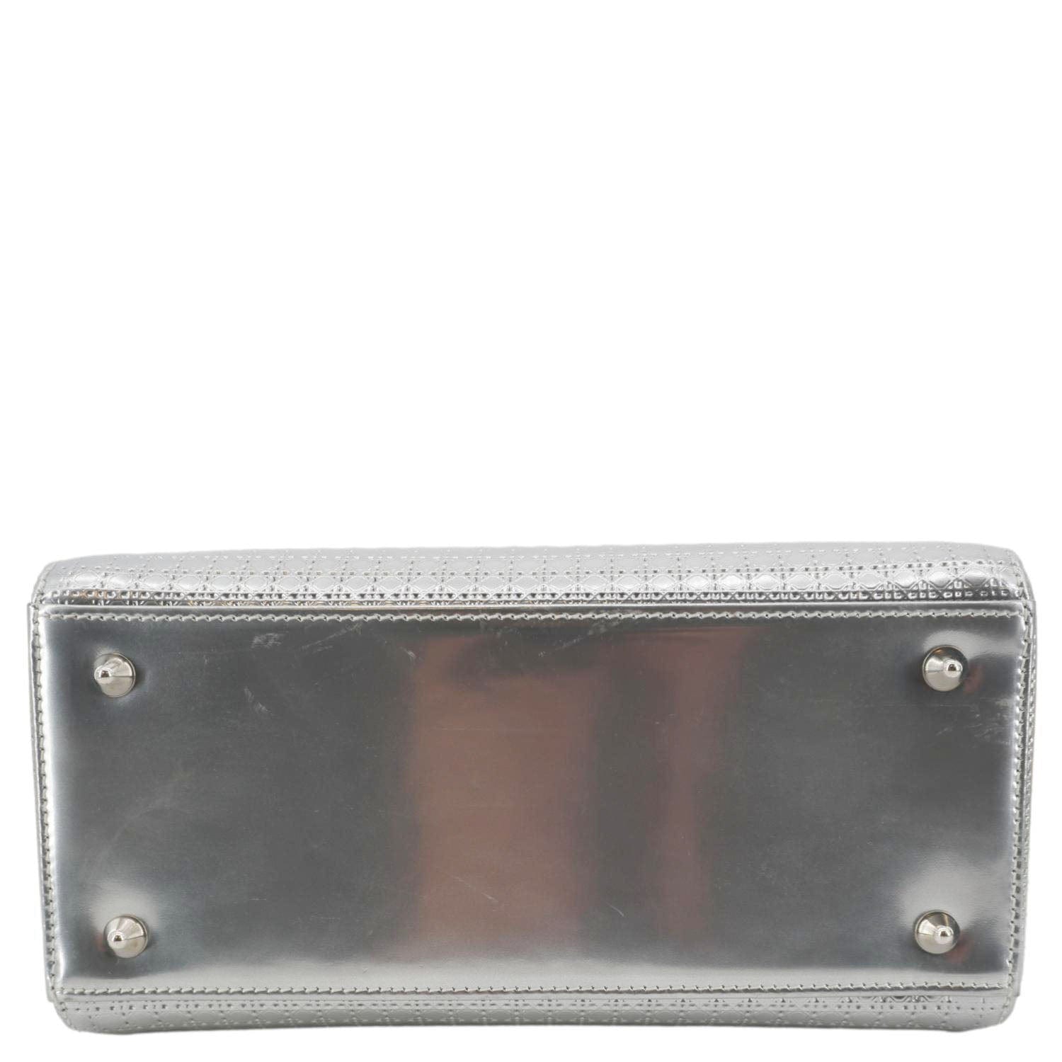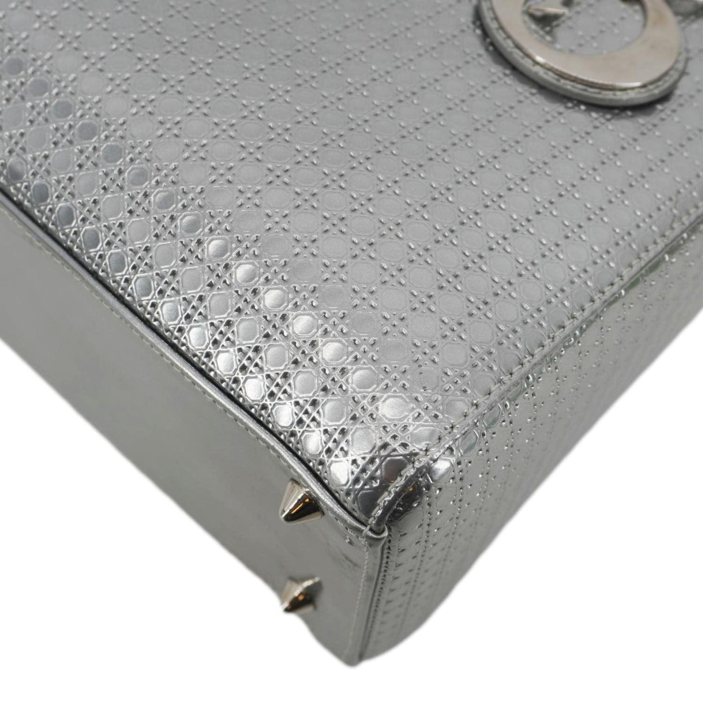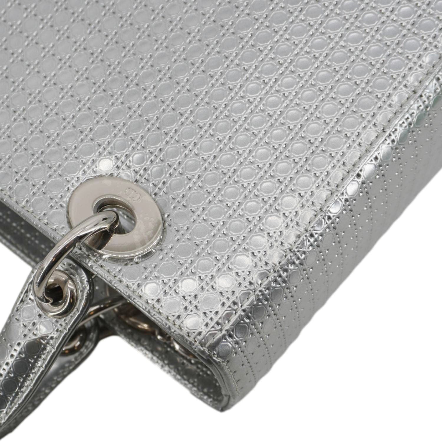 CHRISTIAN DIOR Lady Dior Medium Leather Shoulder Bag Metallic Silver