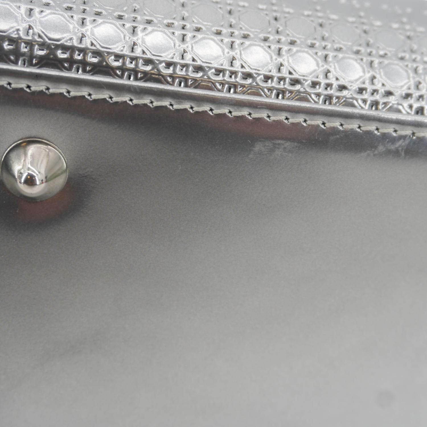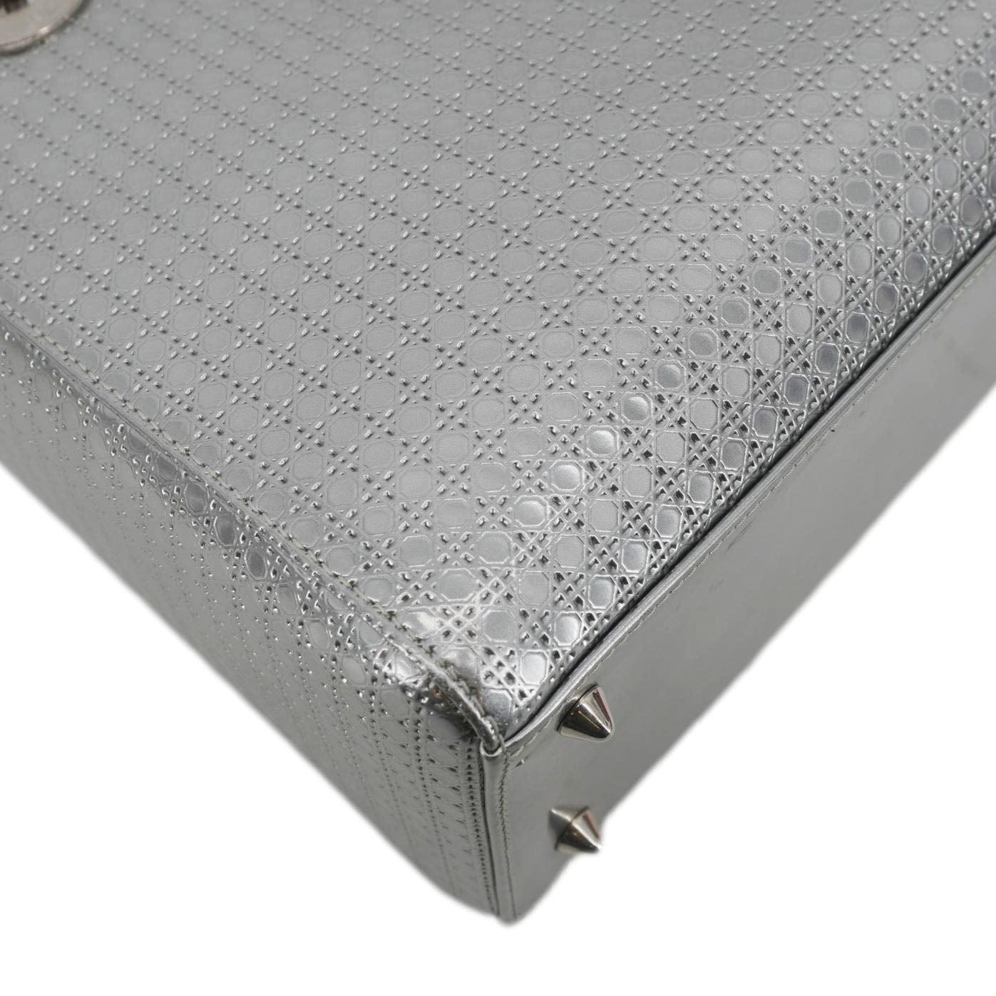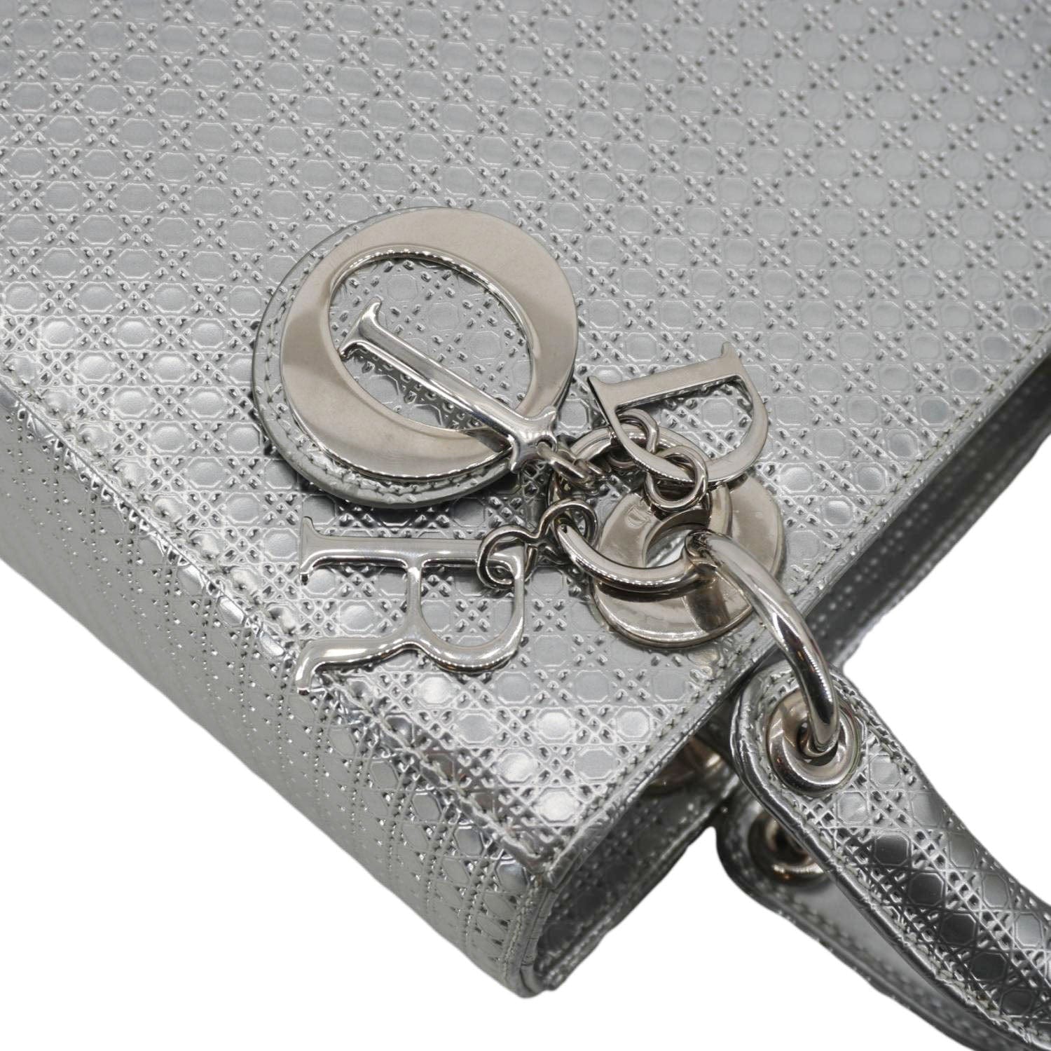 CHRISTIAN DIOR Lady Dior Medium Leather Shoulder Bag Metallic Silver