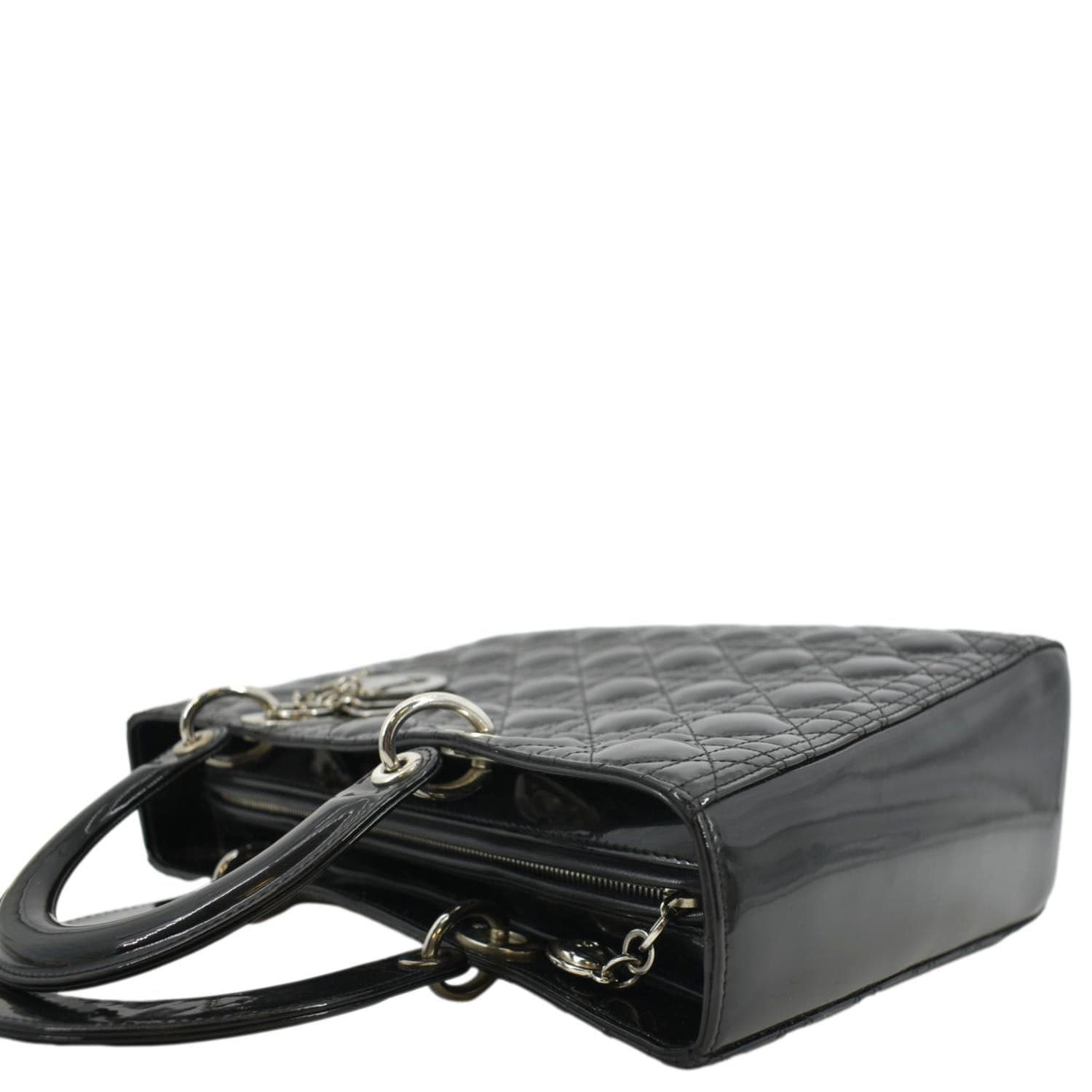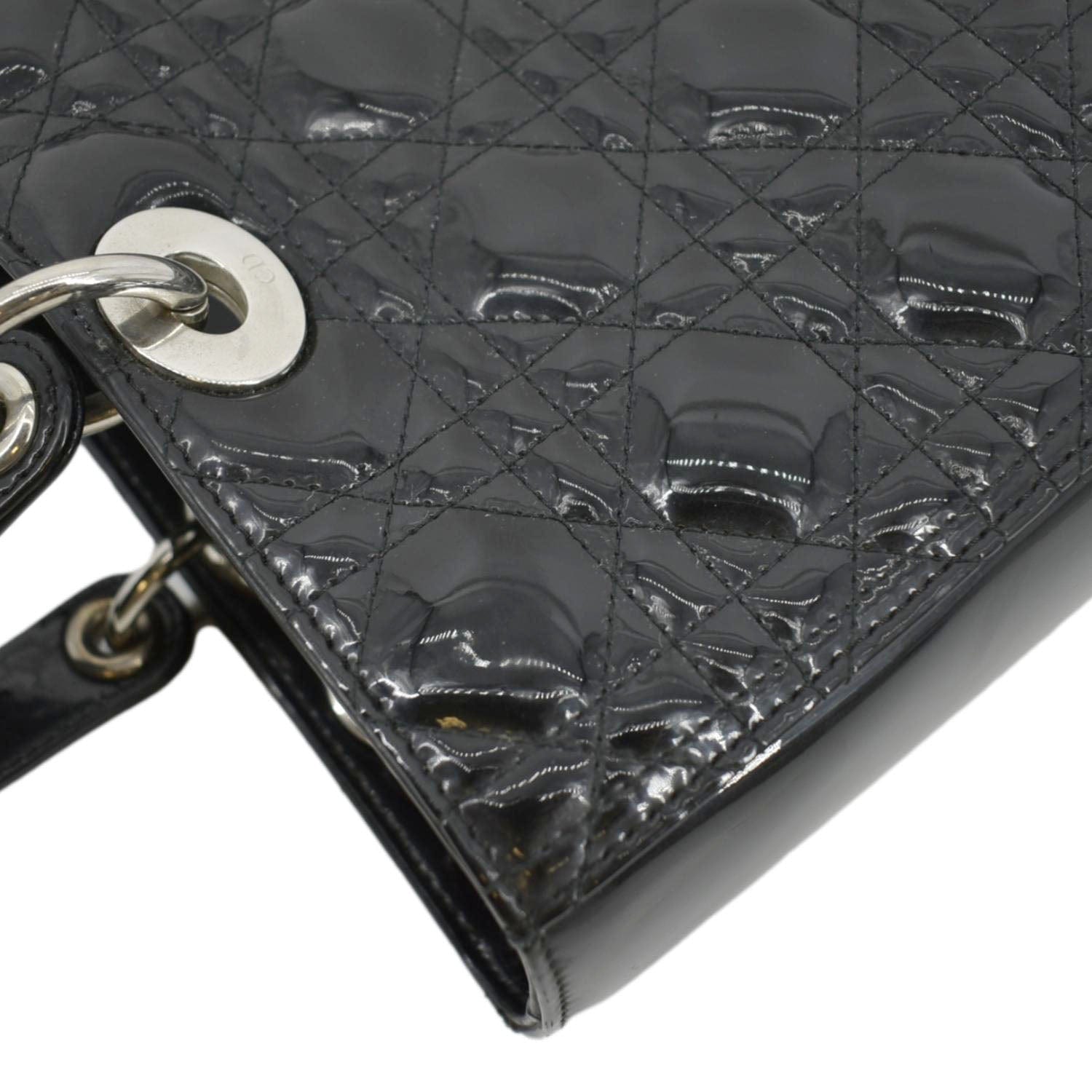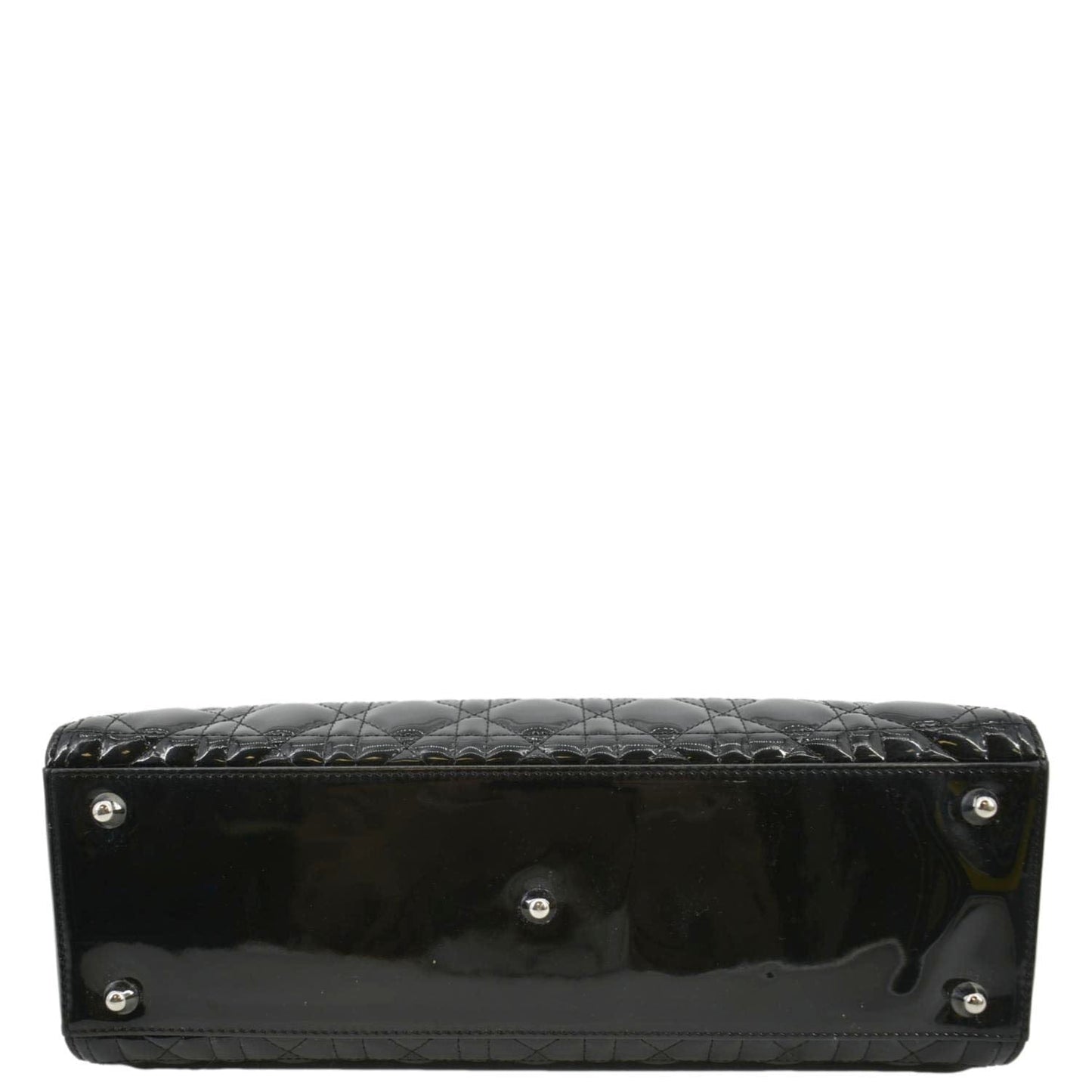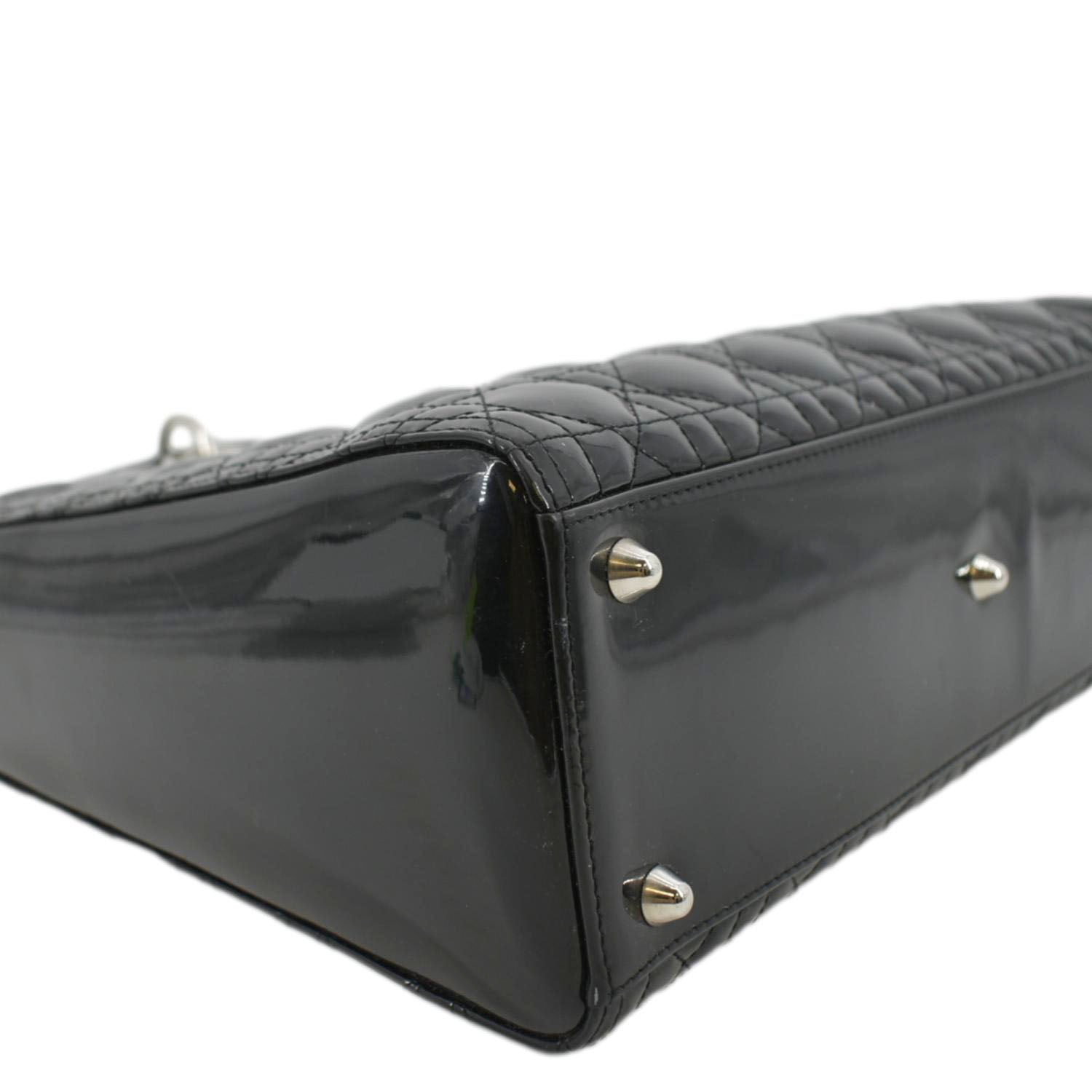 CHRISTIAN DIOR Lady Dior Large Quilted Patent Leather Shoulder Bag Black