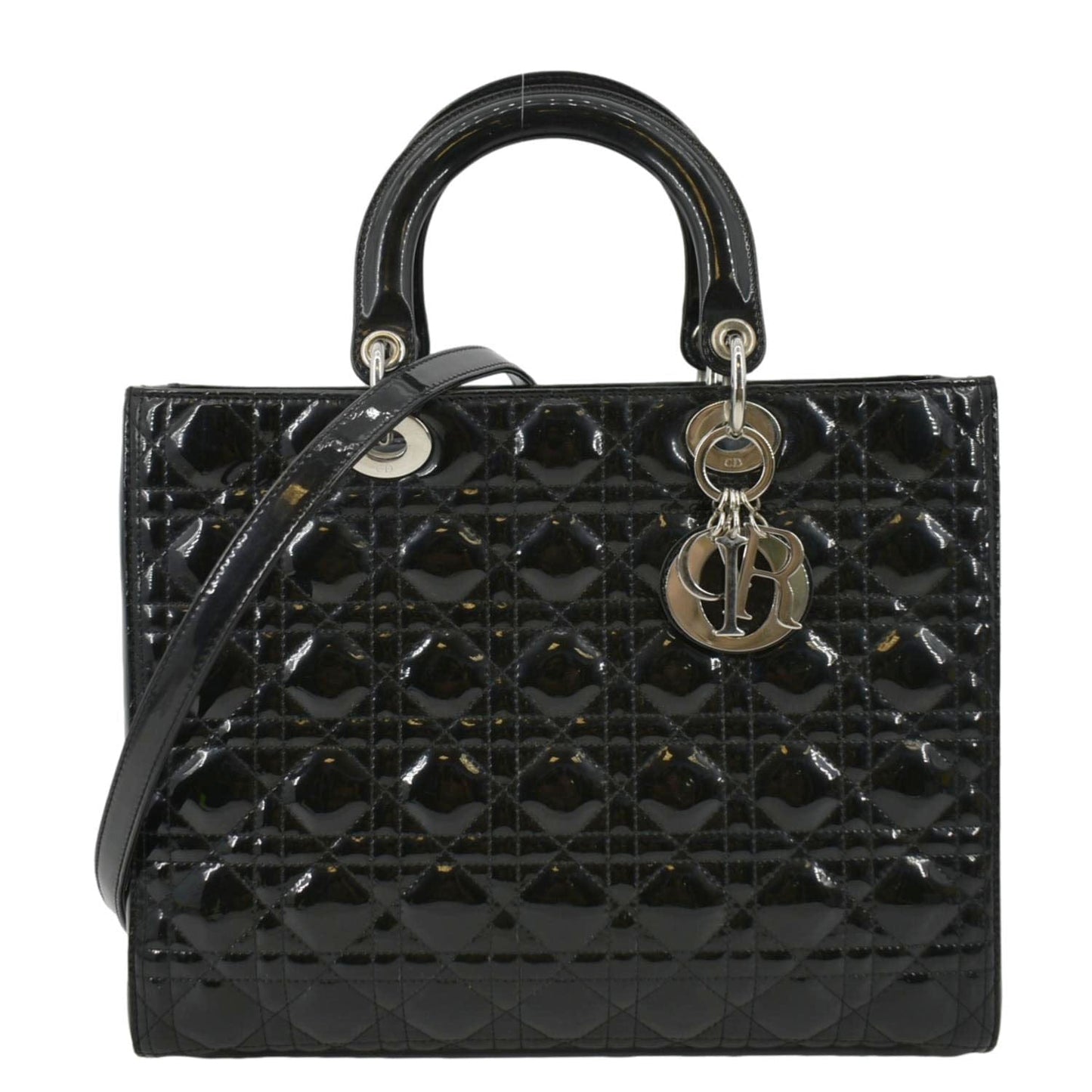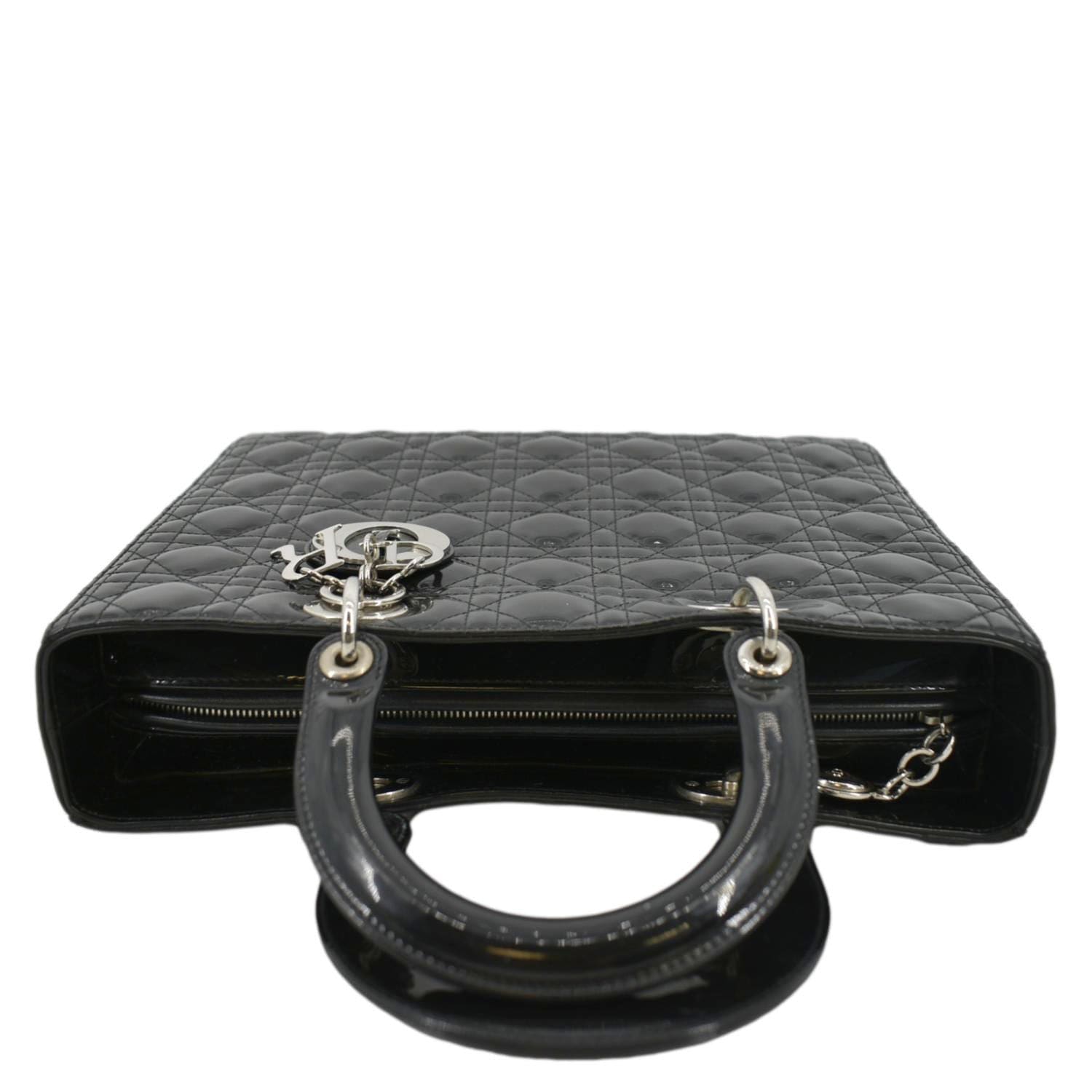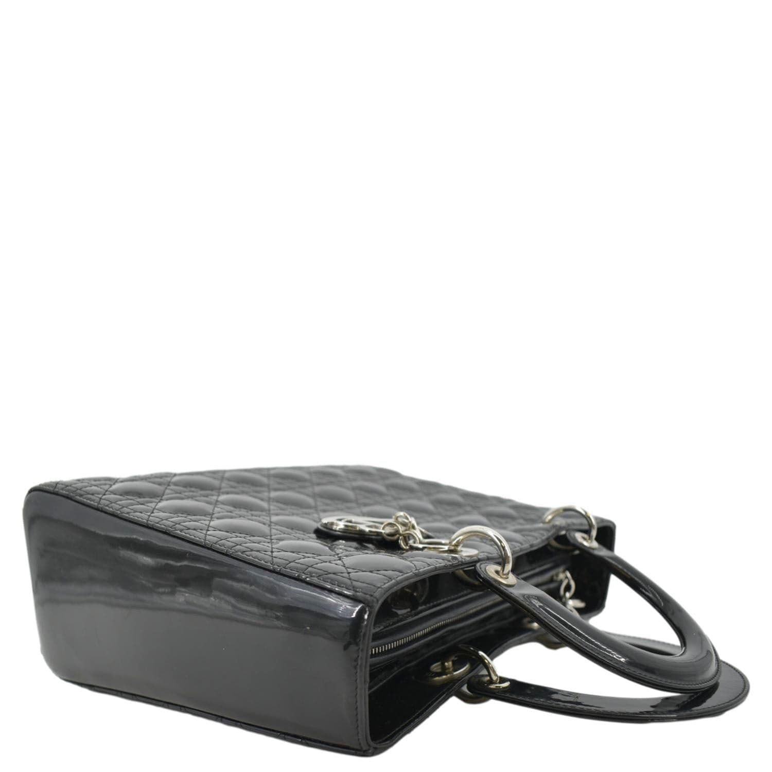 CHRISTIAN DIOR Lady Dior Large Quilted Patent Leather Shoulder Bag Black