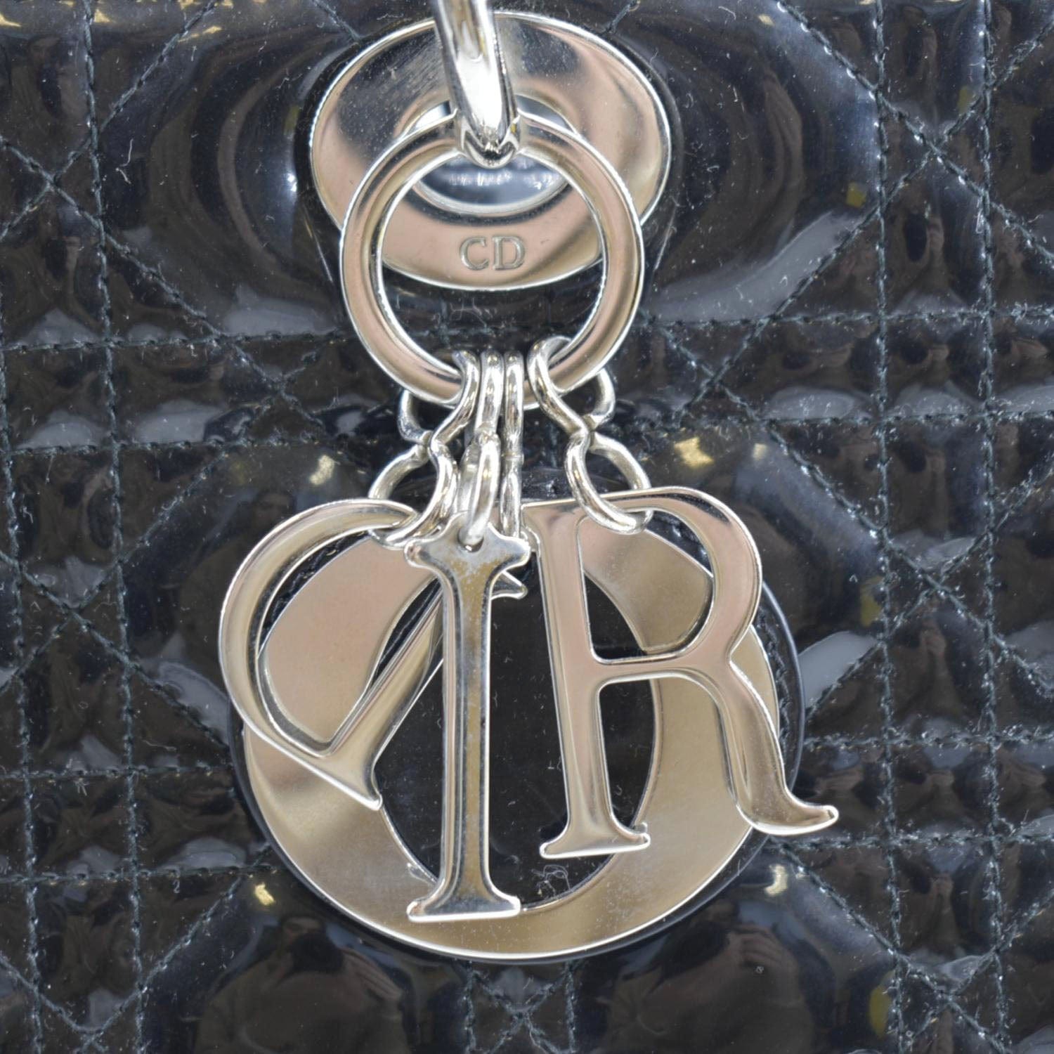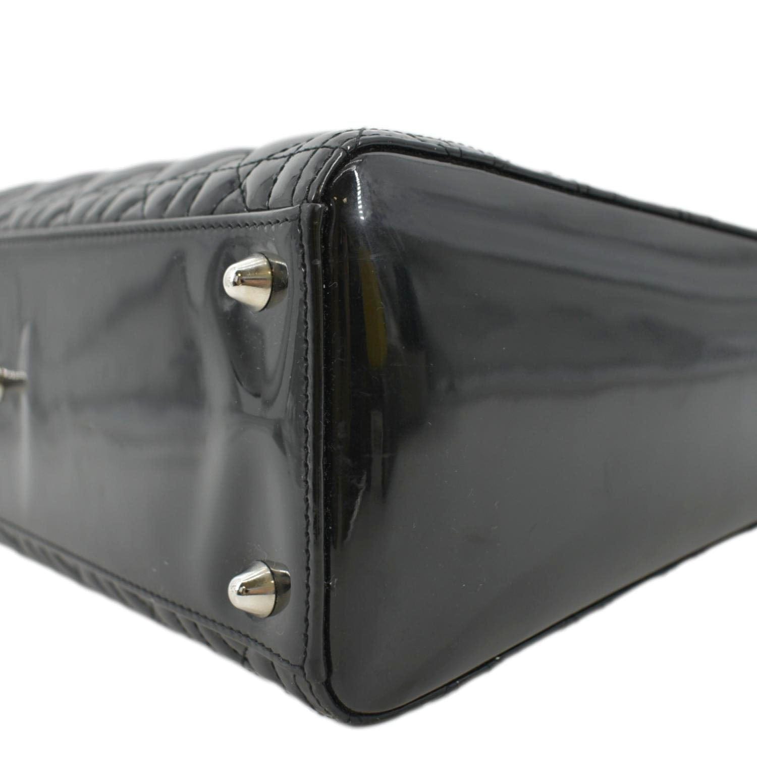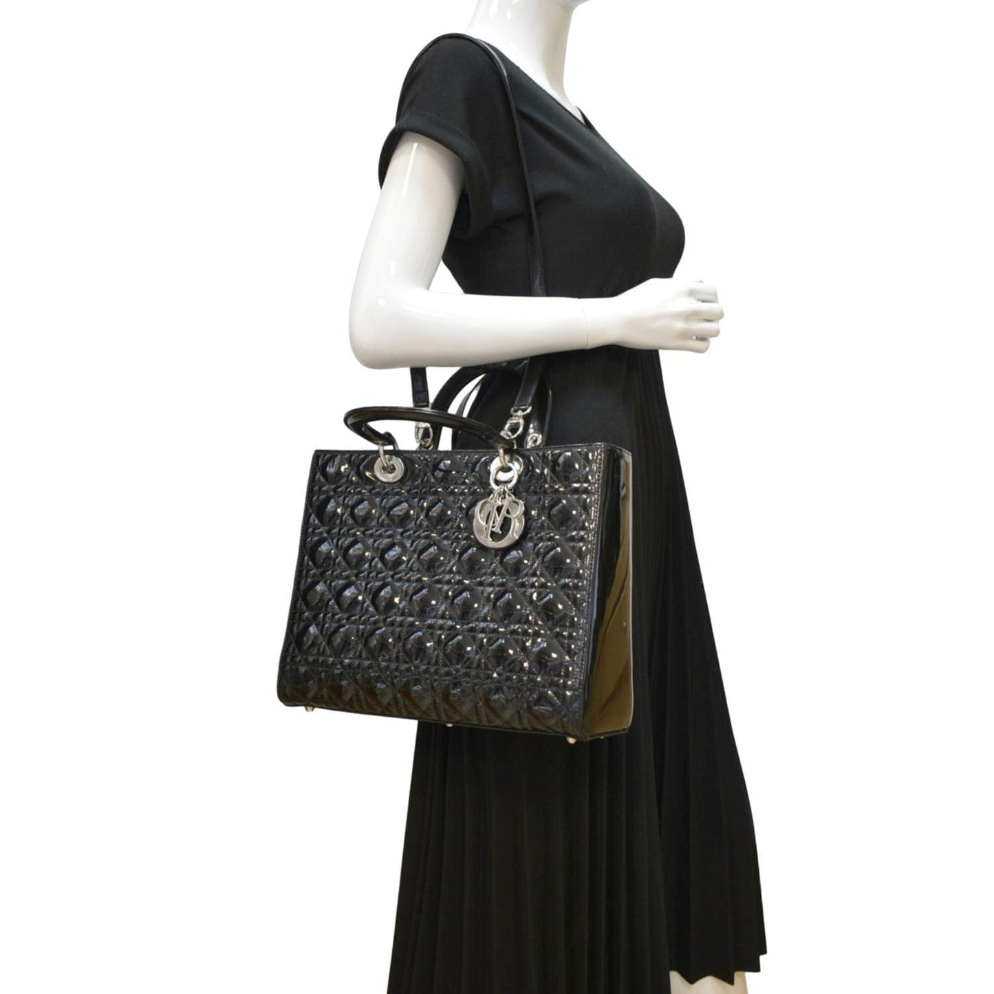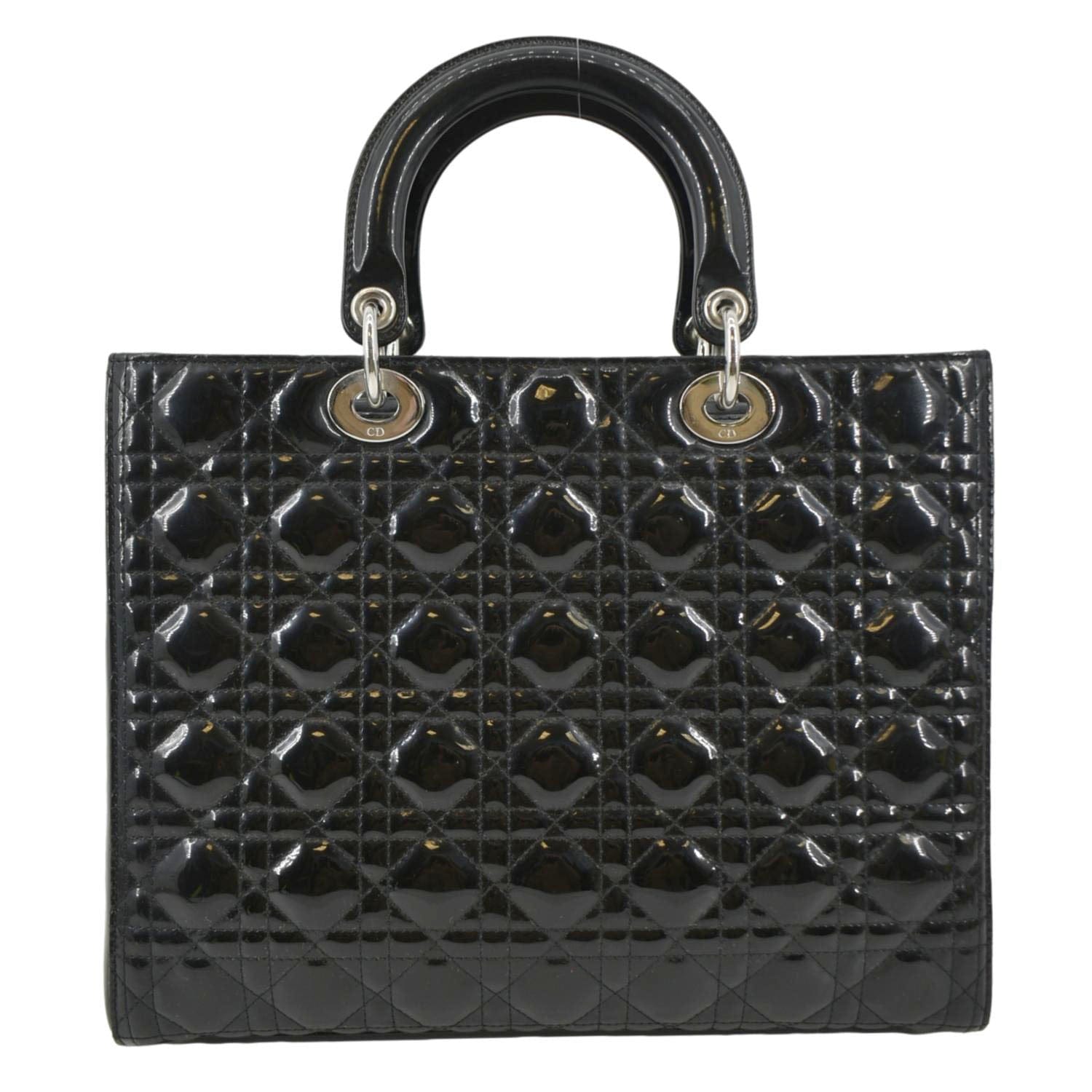 CHRISTIAN DIOR Lady Dior Large Quilted Patent Leather Shoulder Bag Black