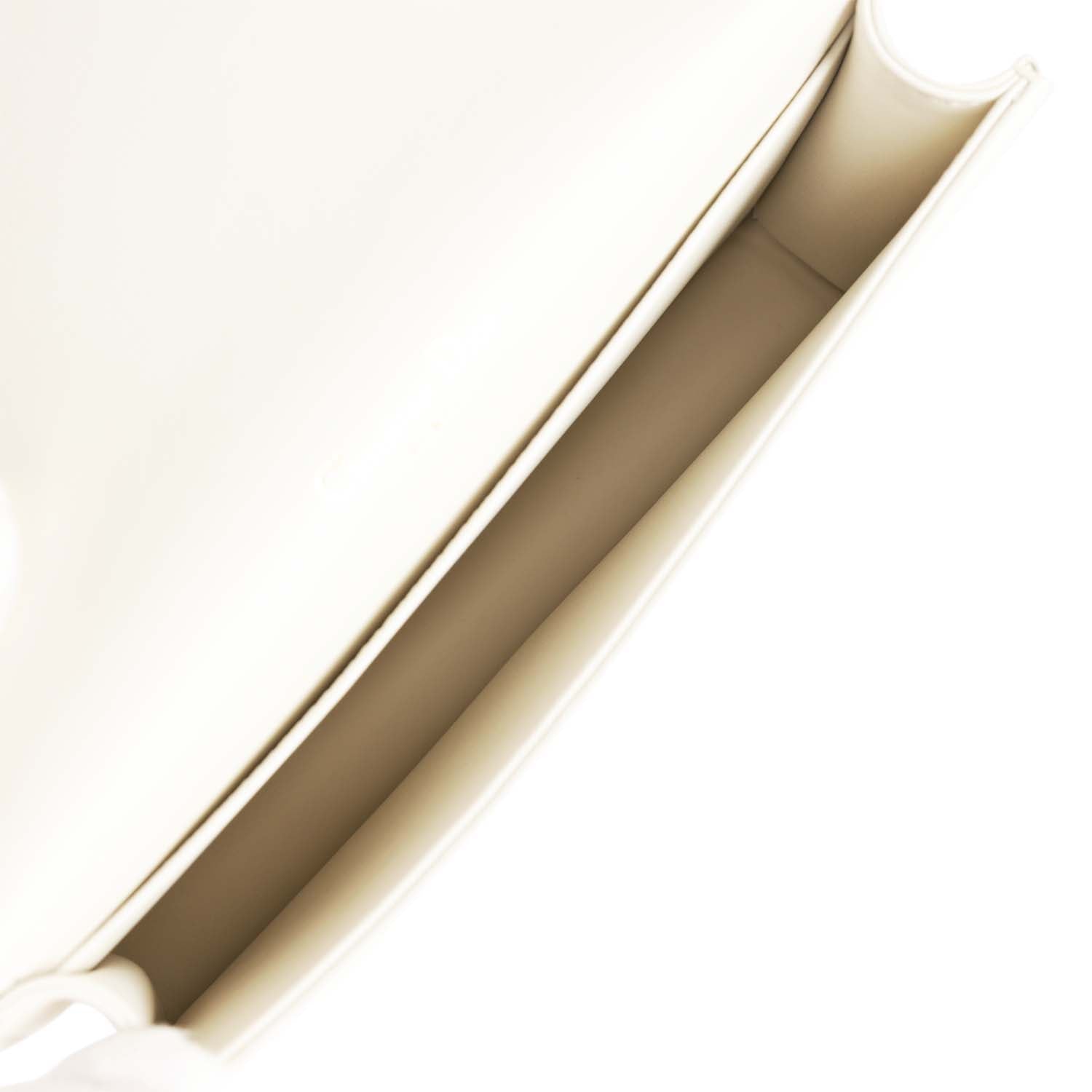 The interior is lined in latte leather and has one pocket on the rear wall.