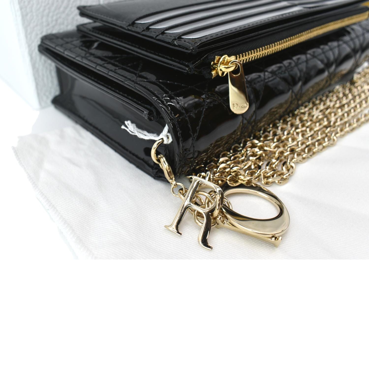 CHRISTIAN DIOR The Lady Dior Leather Chain Pouch Bag Black