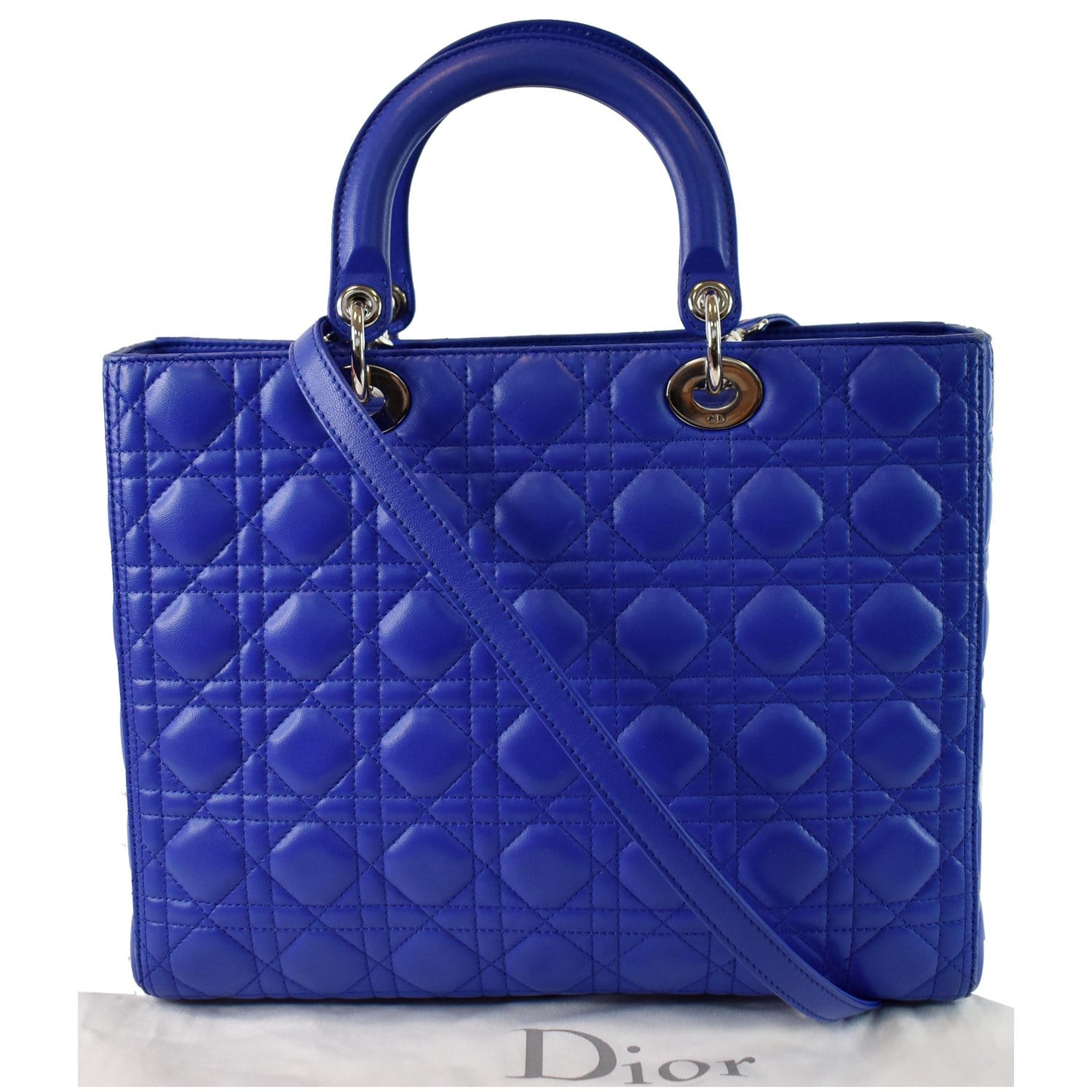 CHRISTIAN DIOR Large Lady Dior Lambskin Leather Shoulder Bag Blue
