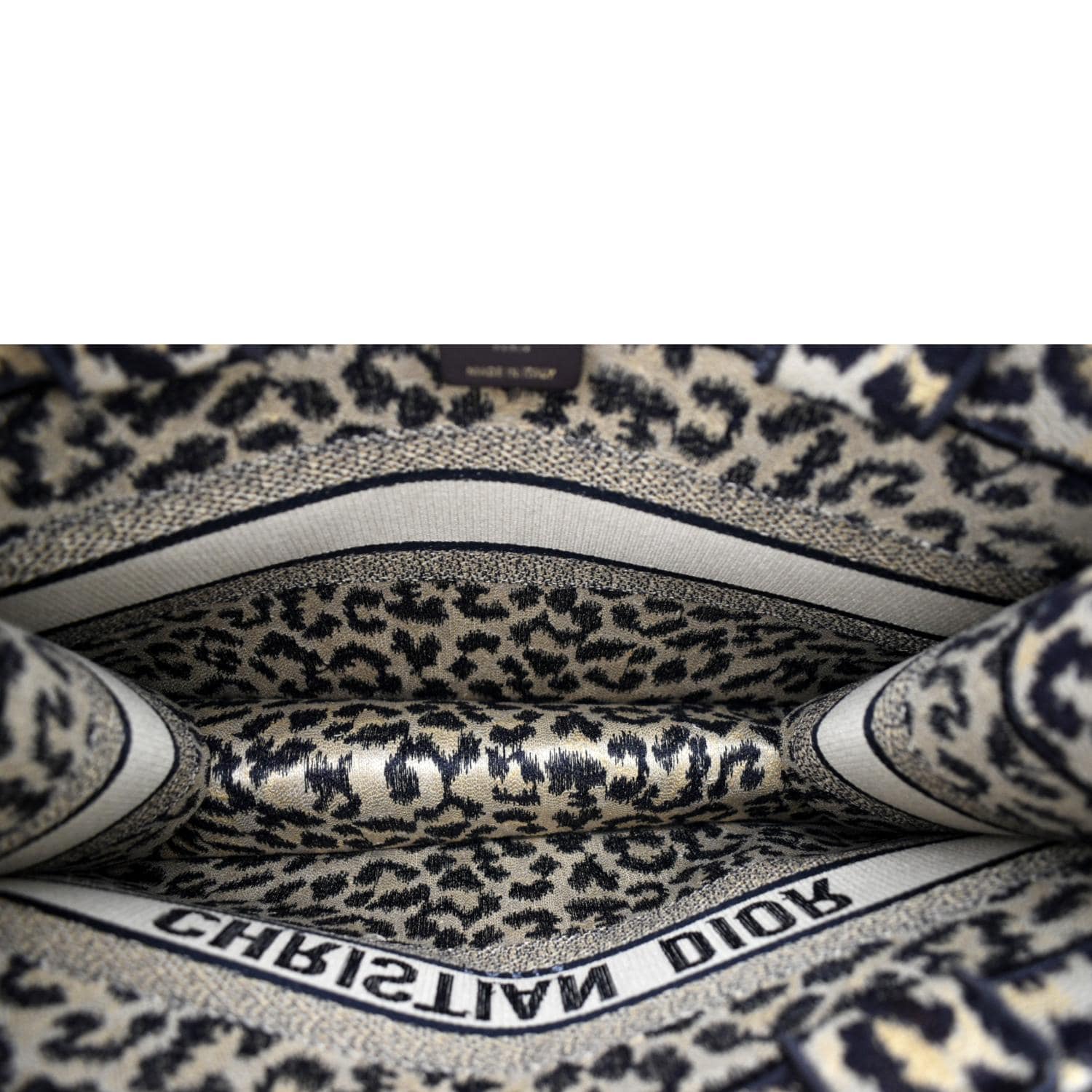 CHRISTIAN DIOR Leopard Medium Book Mizza Embroidered Tote Bag Beige