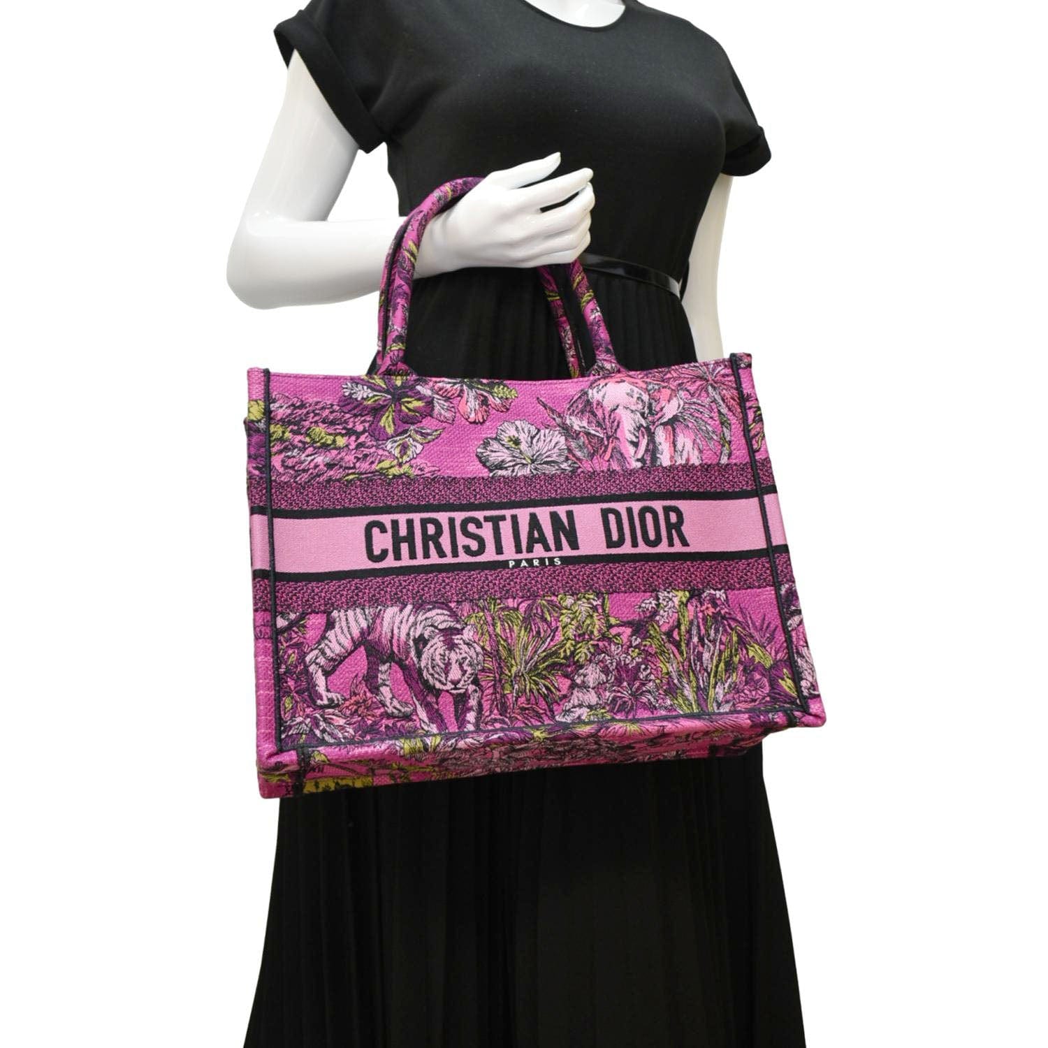 CHRISTIAN DIOR Medium Book Oblique Embroidered Canvas Tote Bag Pink