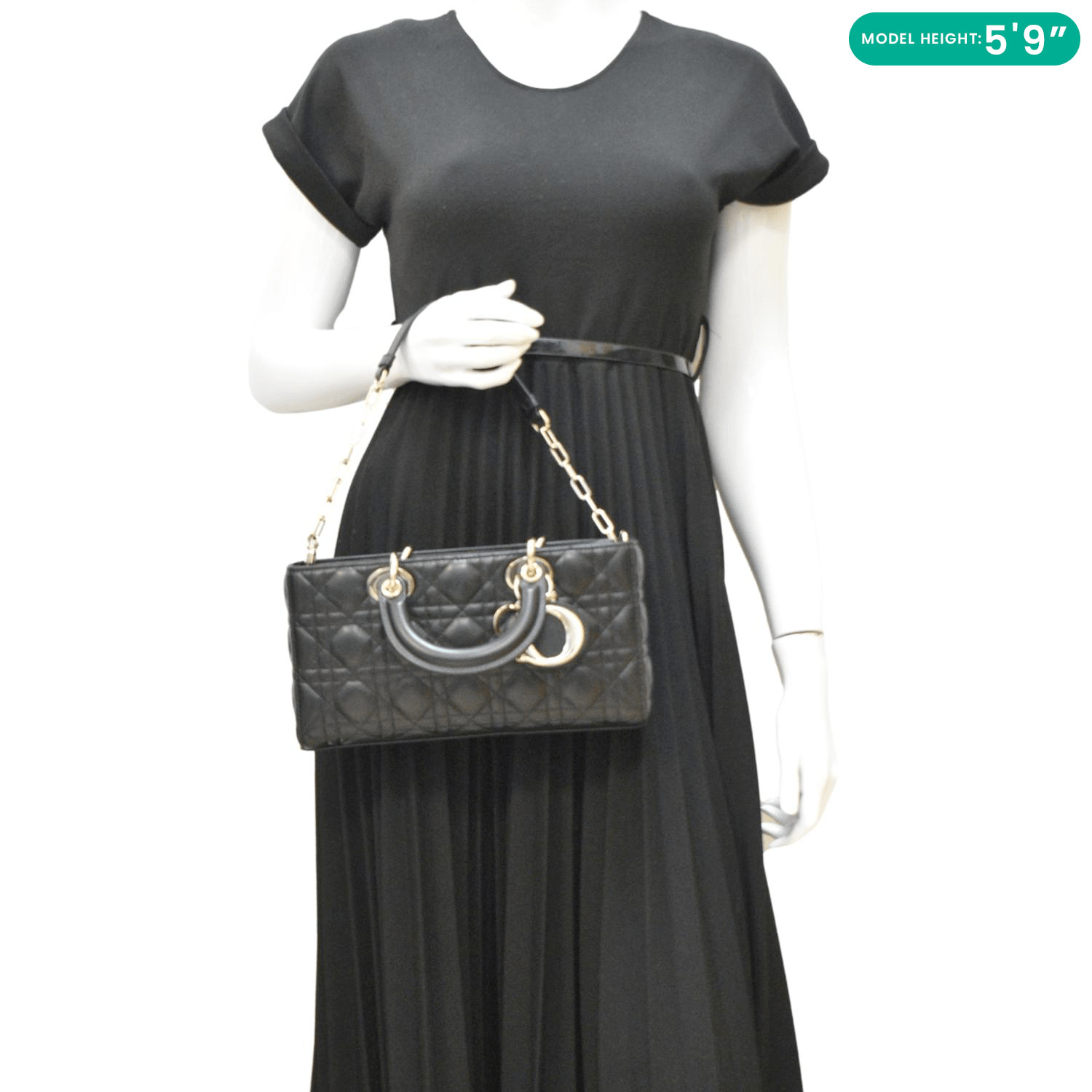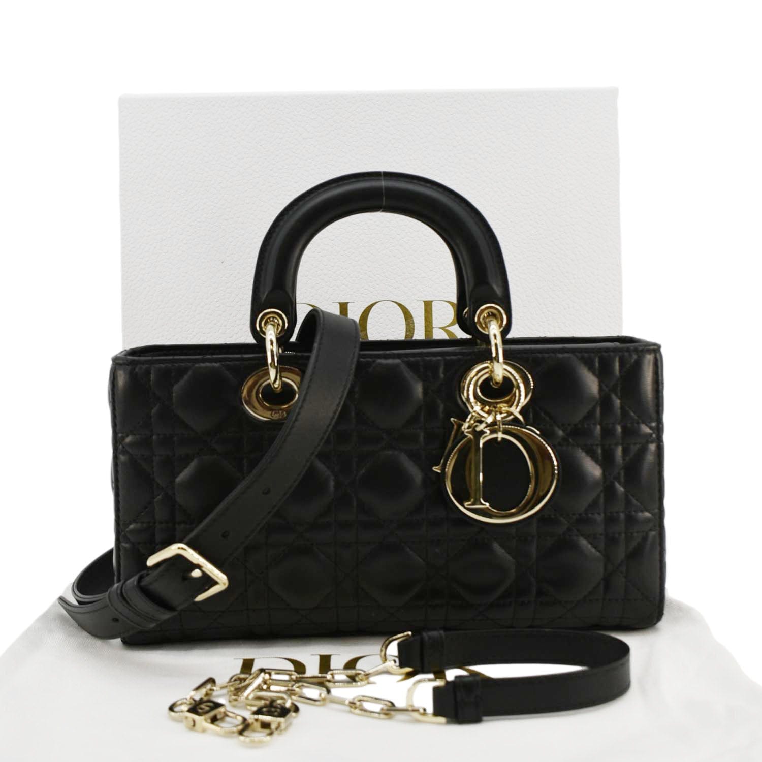 CHRISTIAN DIOR Lady D-Joy Medium Cannage Leather Shoulder Bag Black