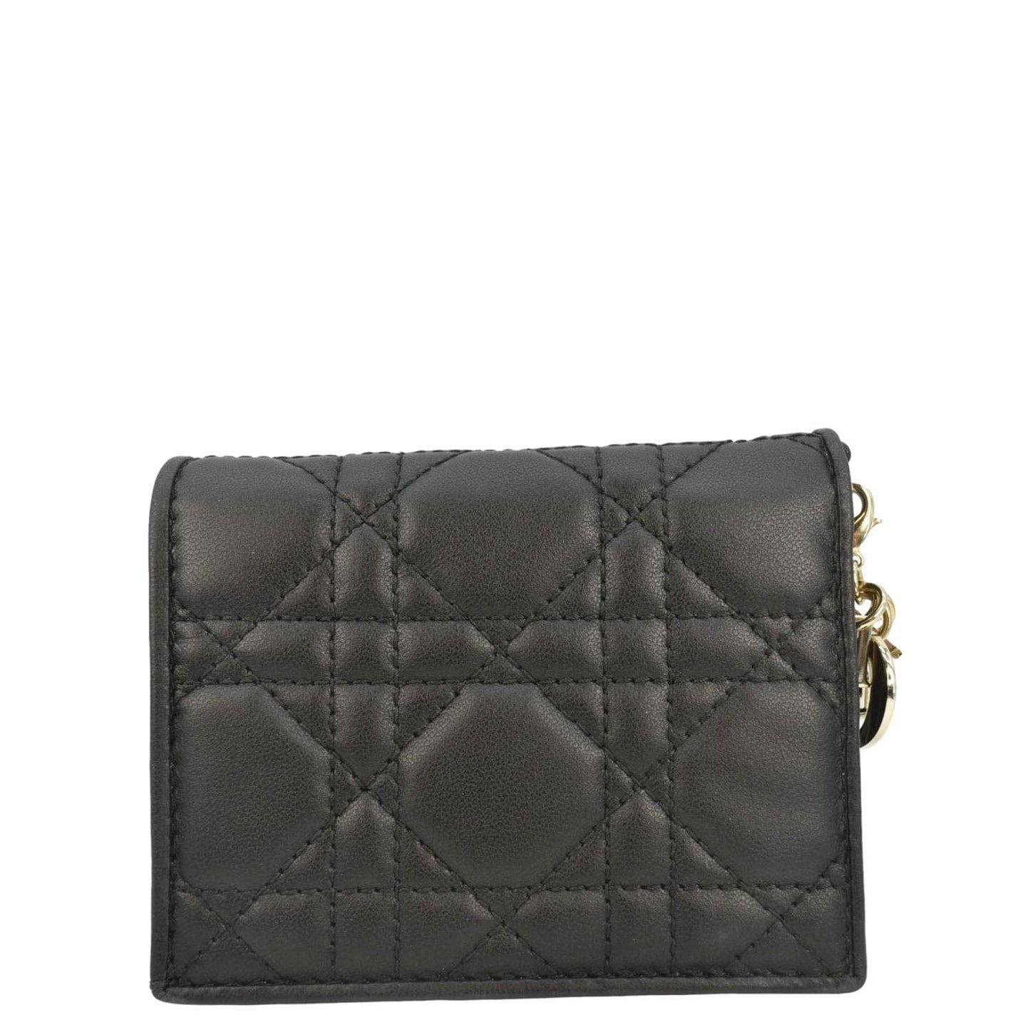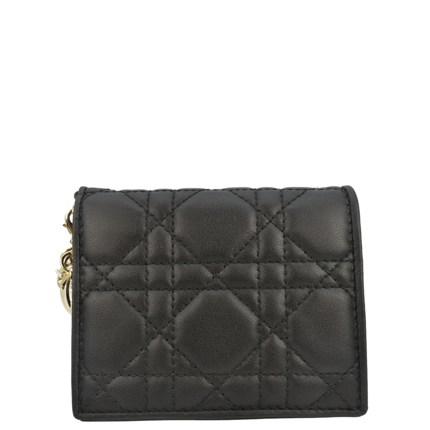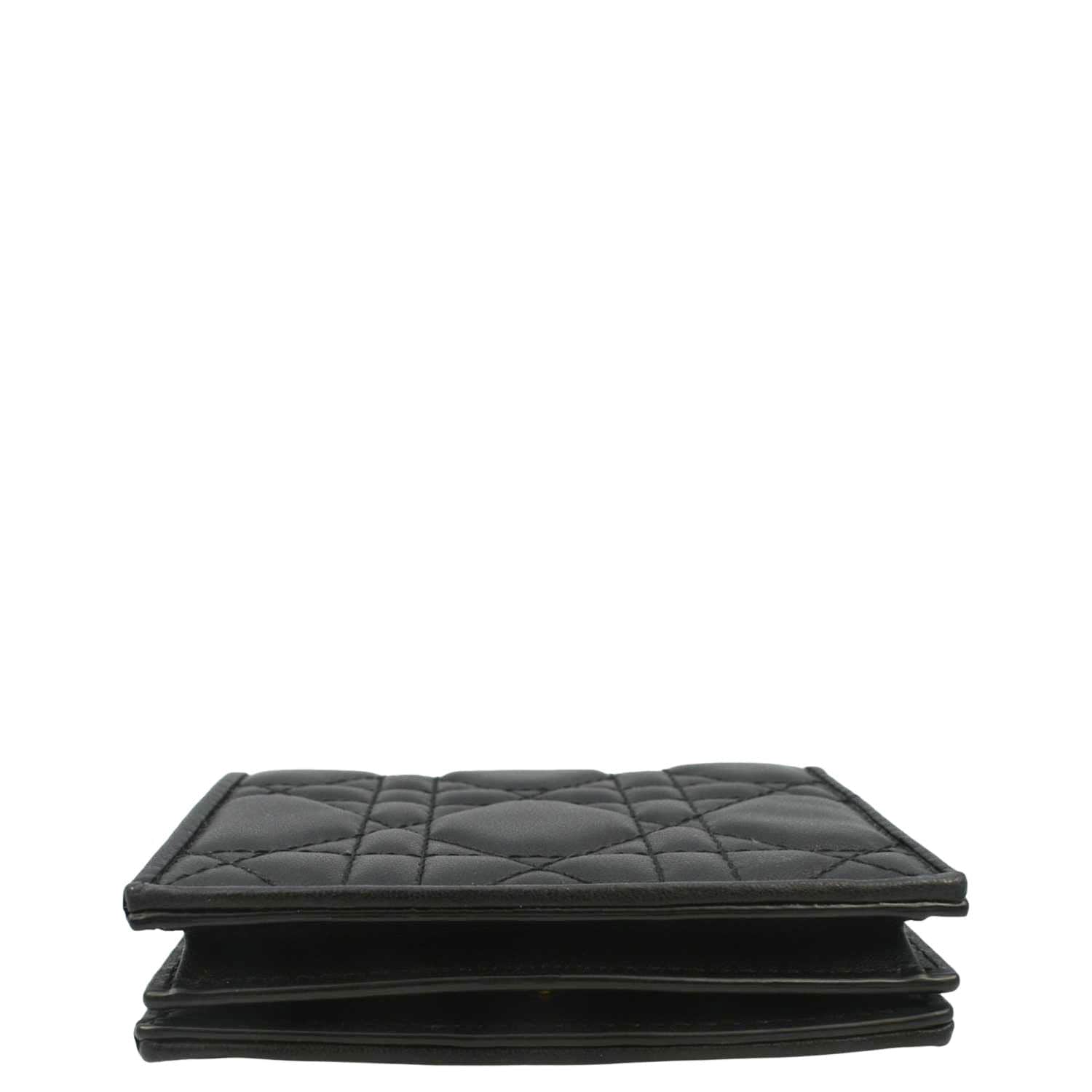 CHRISTIAN DIOR Lady Dior Gardenia Mini Cannage Lambskin Compact Wallet Black