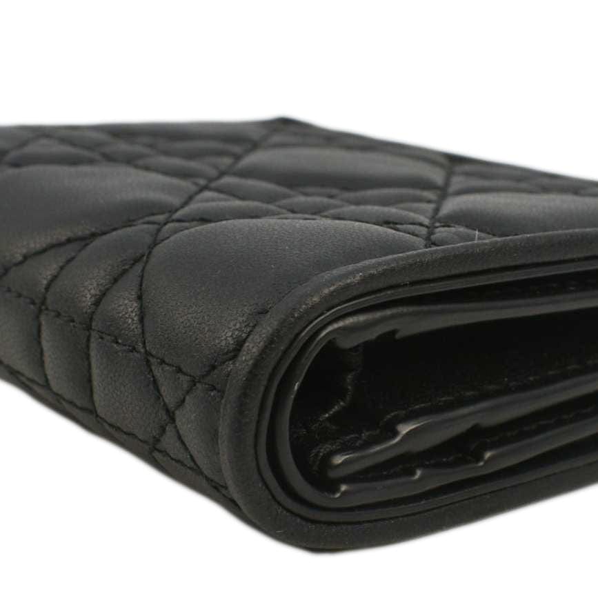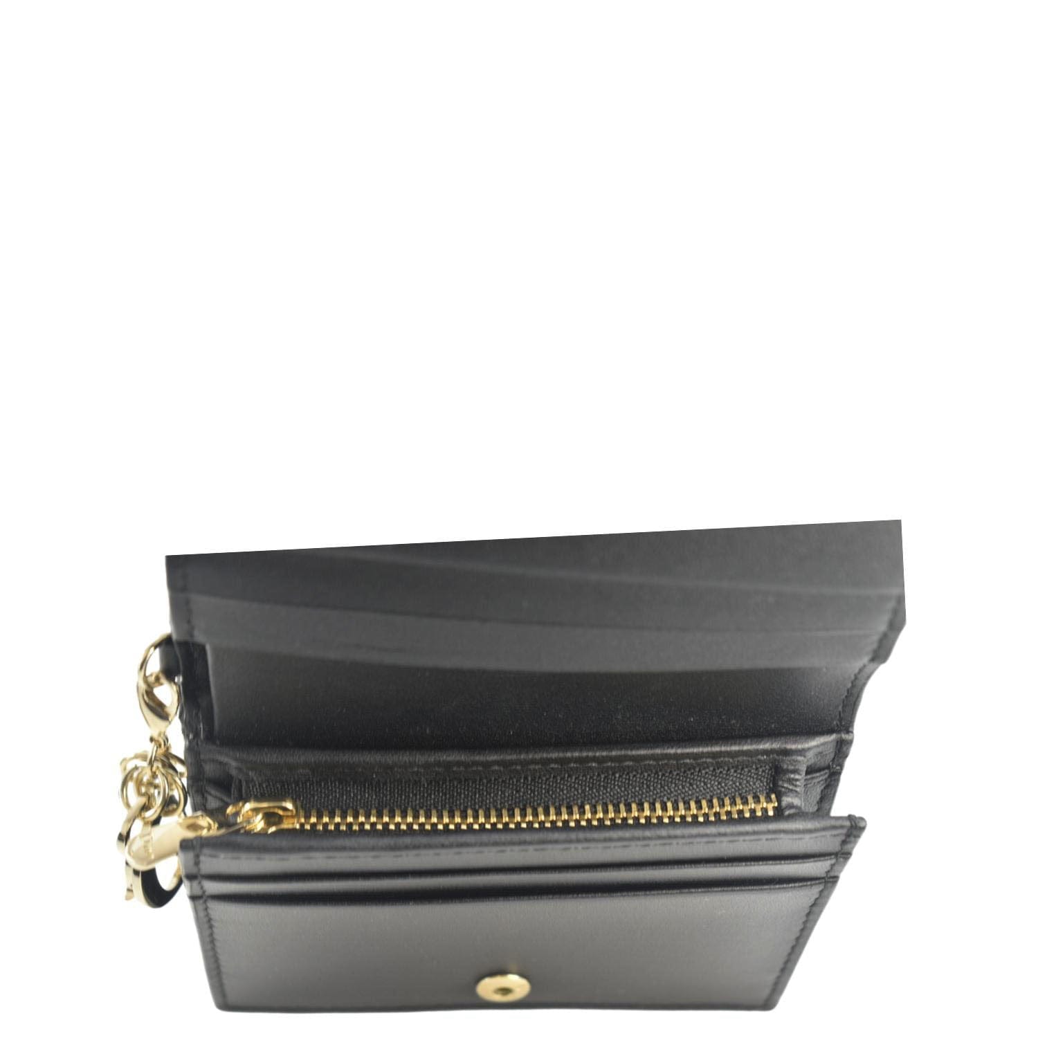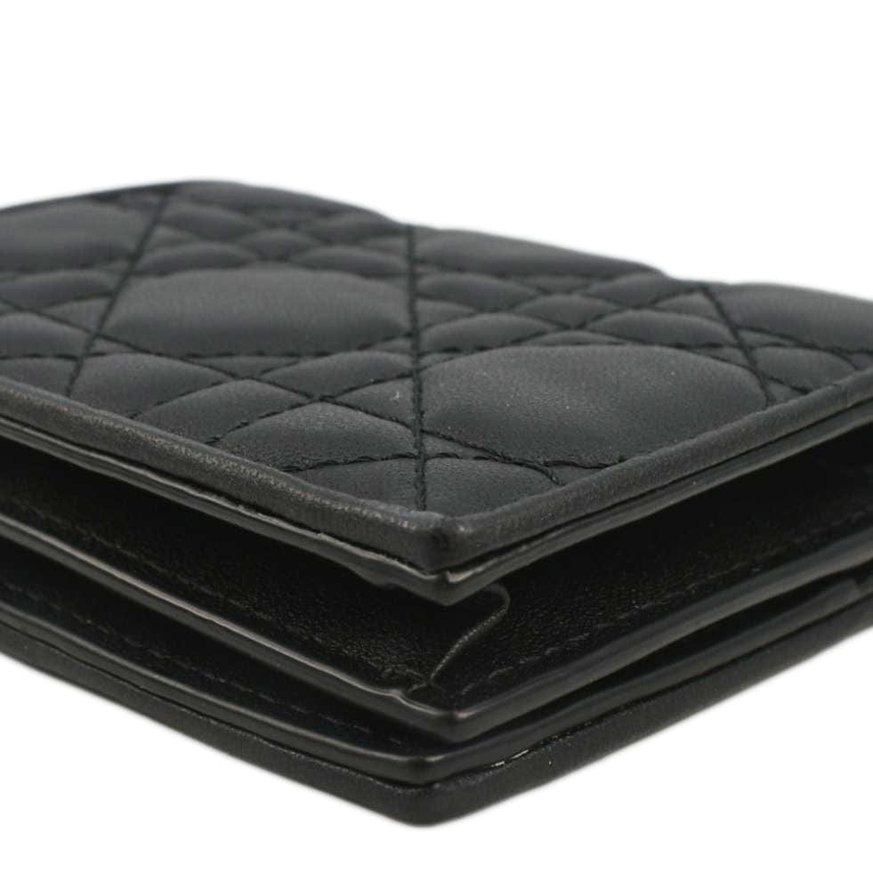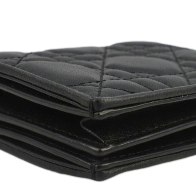 CHRISTIAN DIOR Lady Dior Gardenia Mini Cannage Lambskin Compact Wallet Black