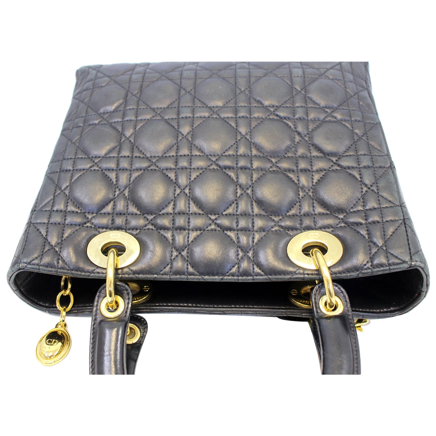 CHRISTIAN DIOR Mini Lady Dior Lambskin Cannage Satchel Bag Black