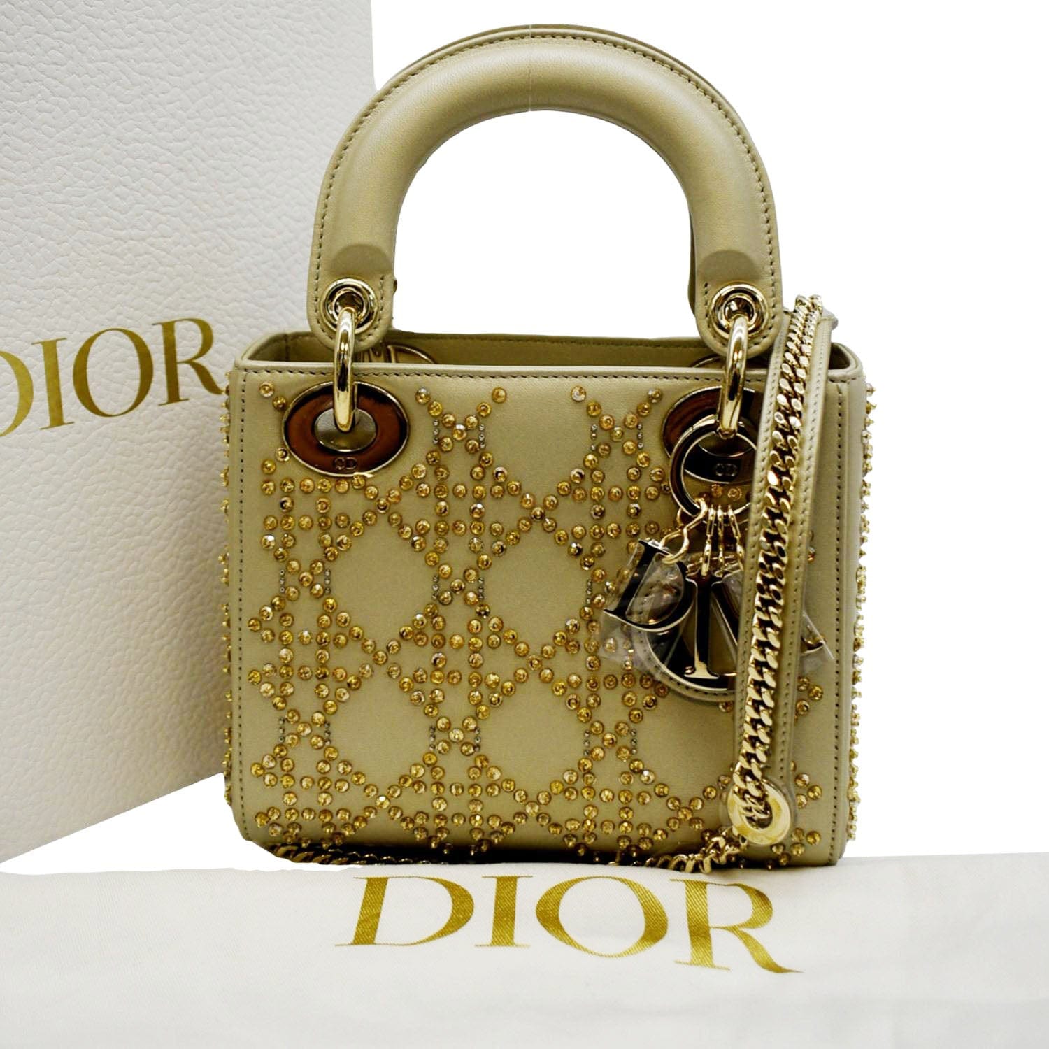 CHRISTIAN DIOR Mini Lady Dior Lambskin Leather Shoulder Bag Platinum Metallic