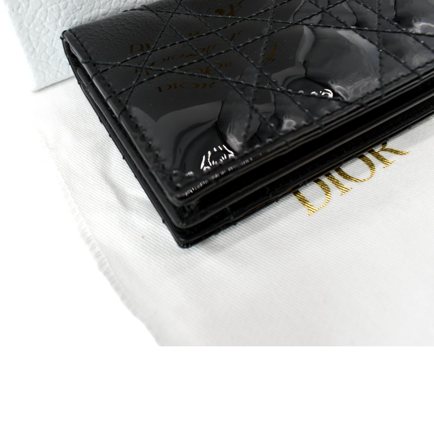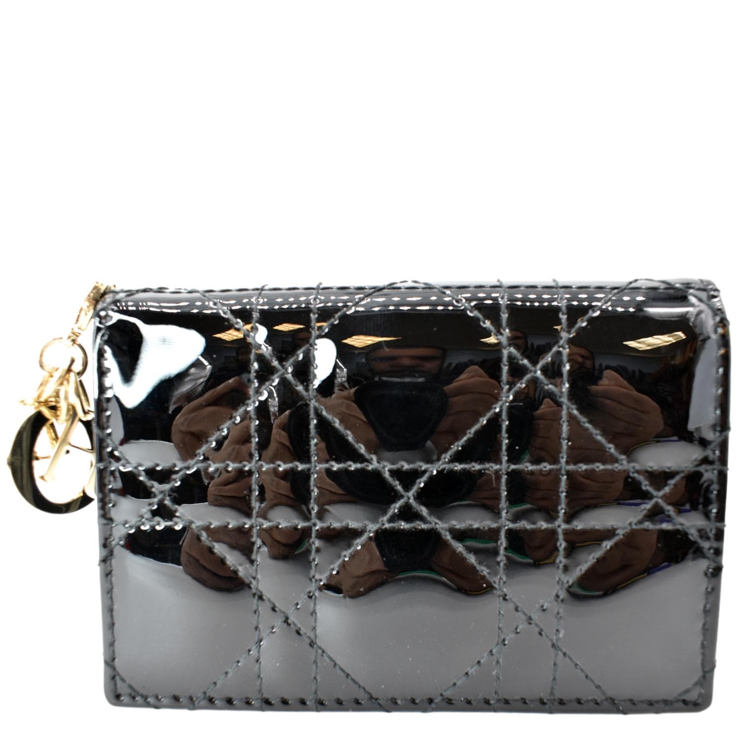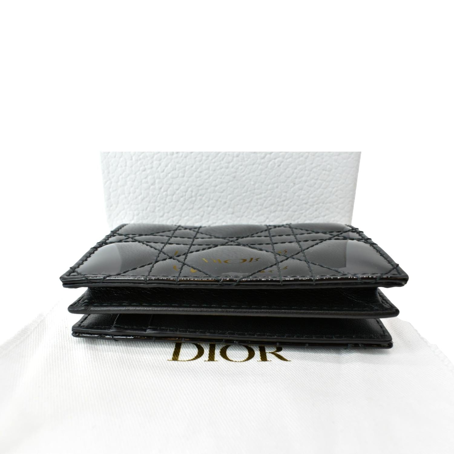 CHRISTIAN DIOR Mini Lady Dior Cannage Calfskin Leather Compact Wallet Black