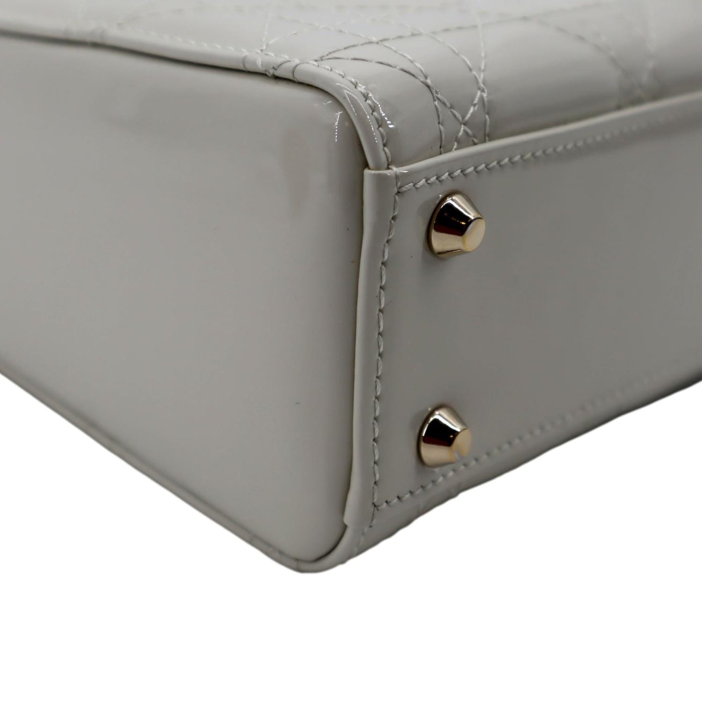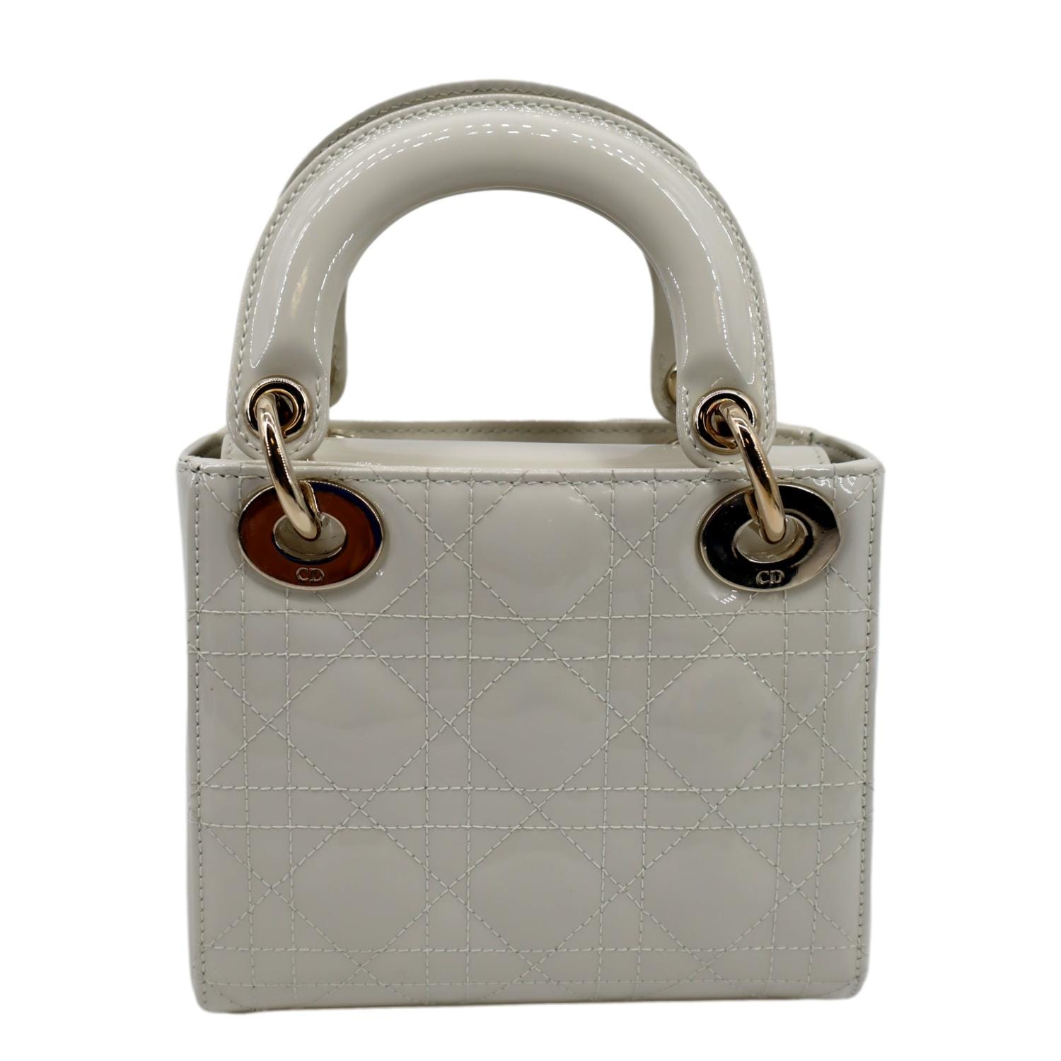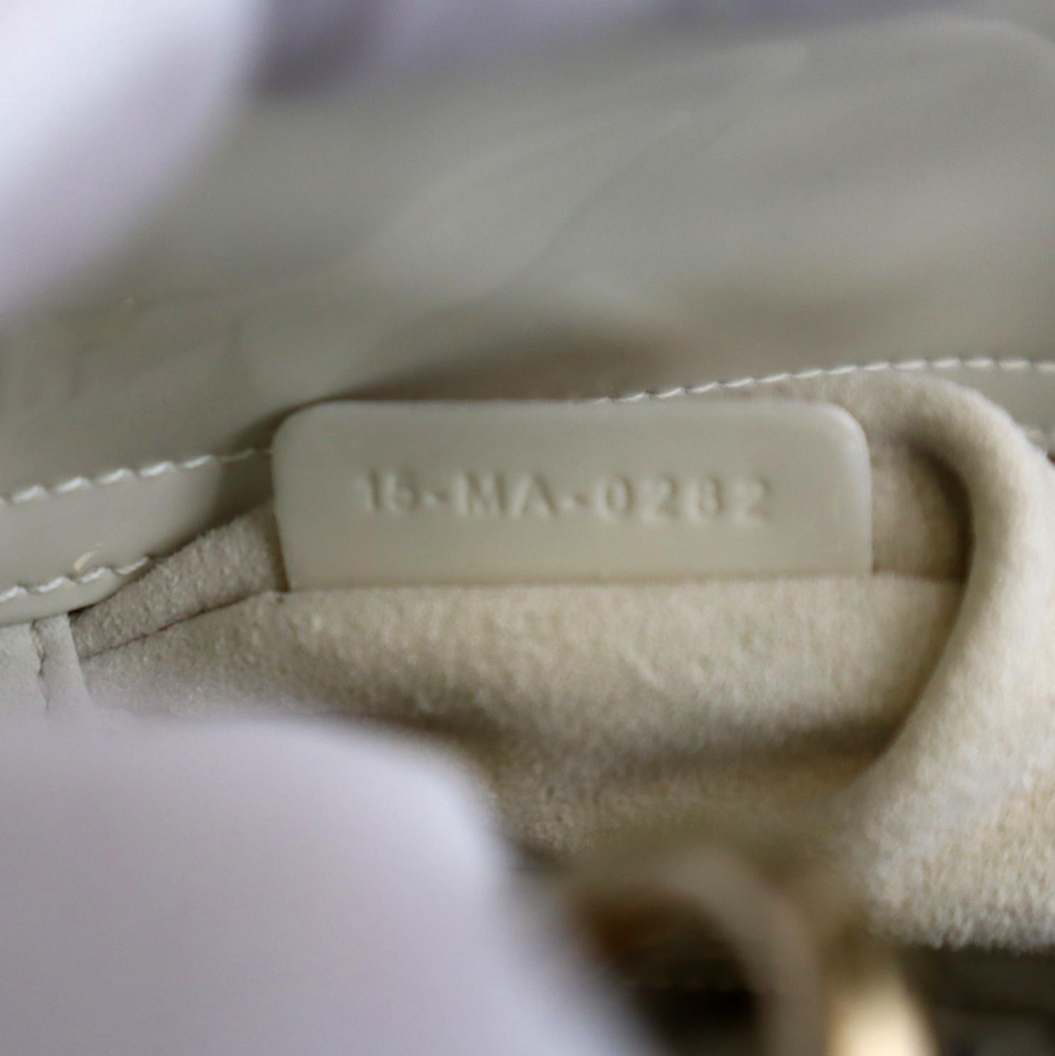 CHRISTIAN DIOR Mini Lady Dior Cannage Patent Leather Satchel Bag White