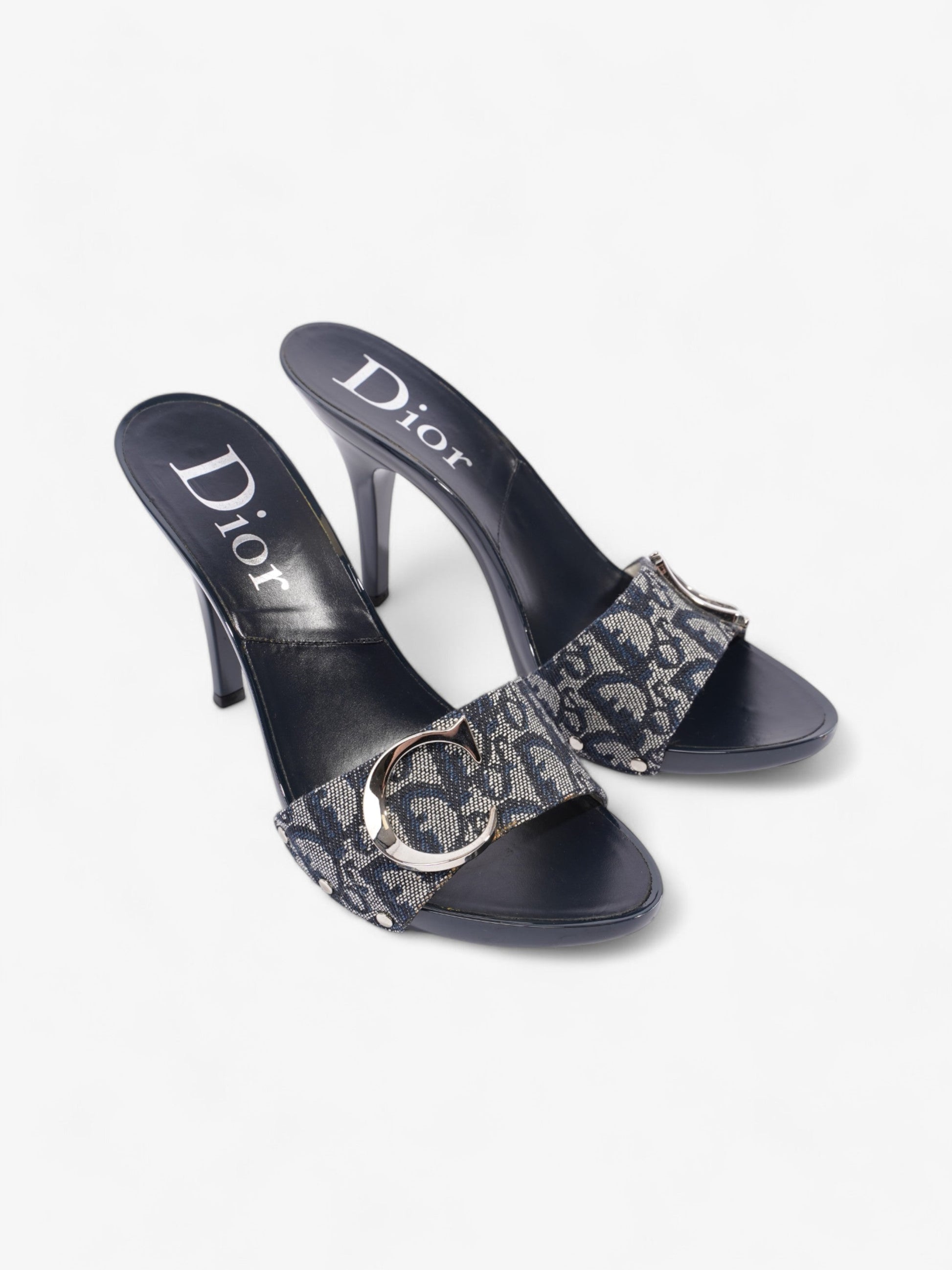 Christian Dior Monogram CD Buckle Heels 80 Navy Monogram Cloth EU 40 UK 7