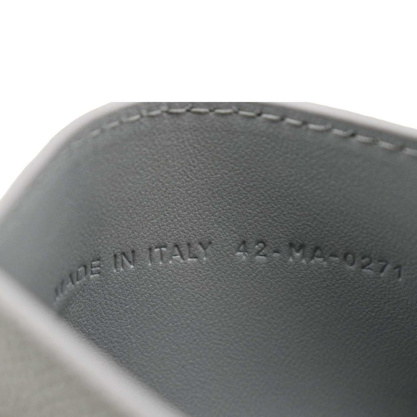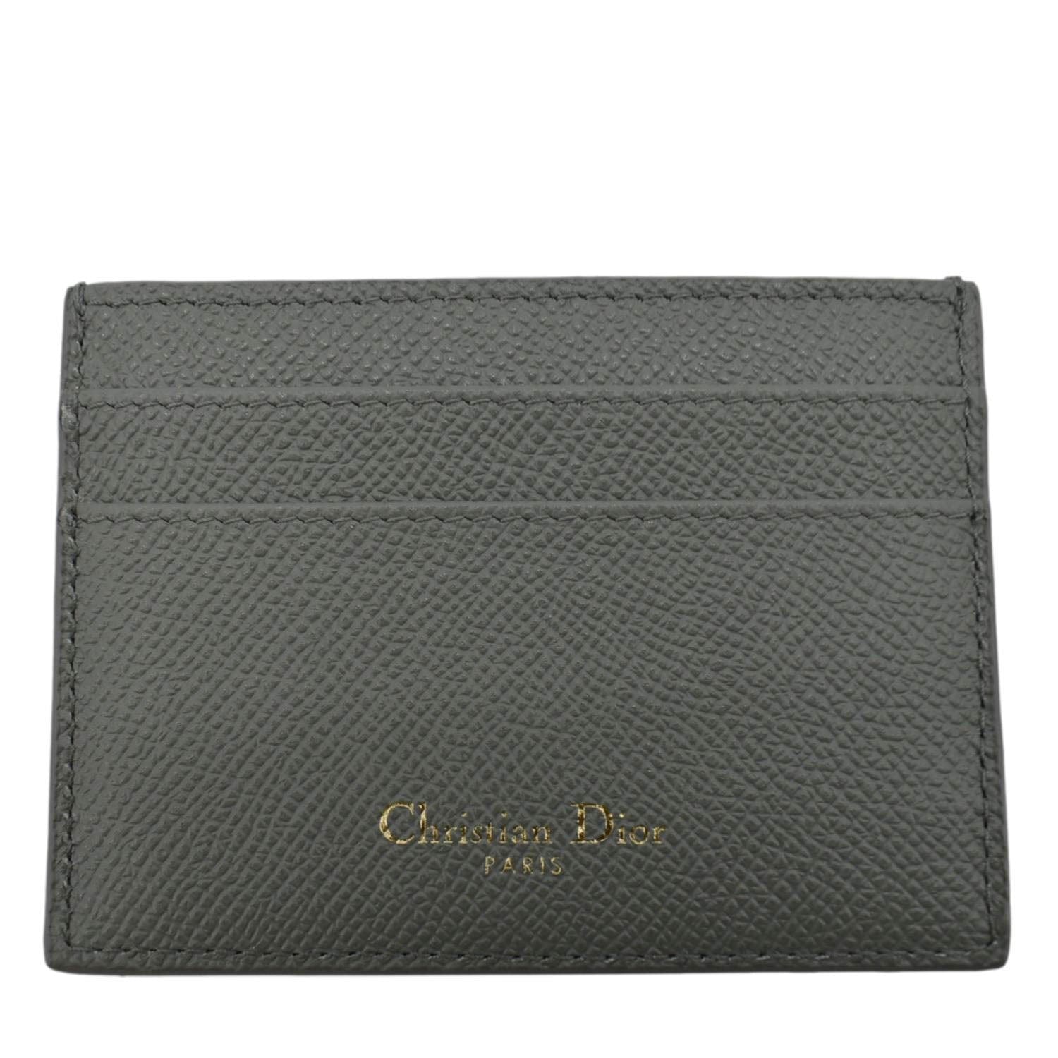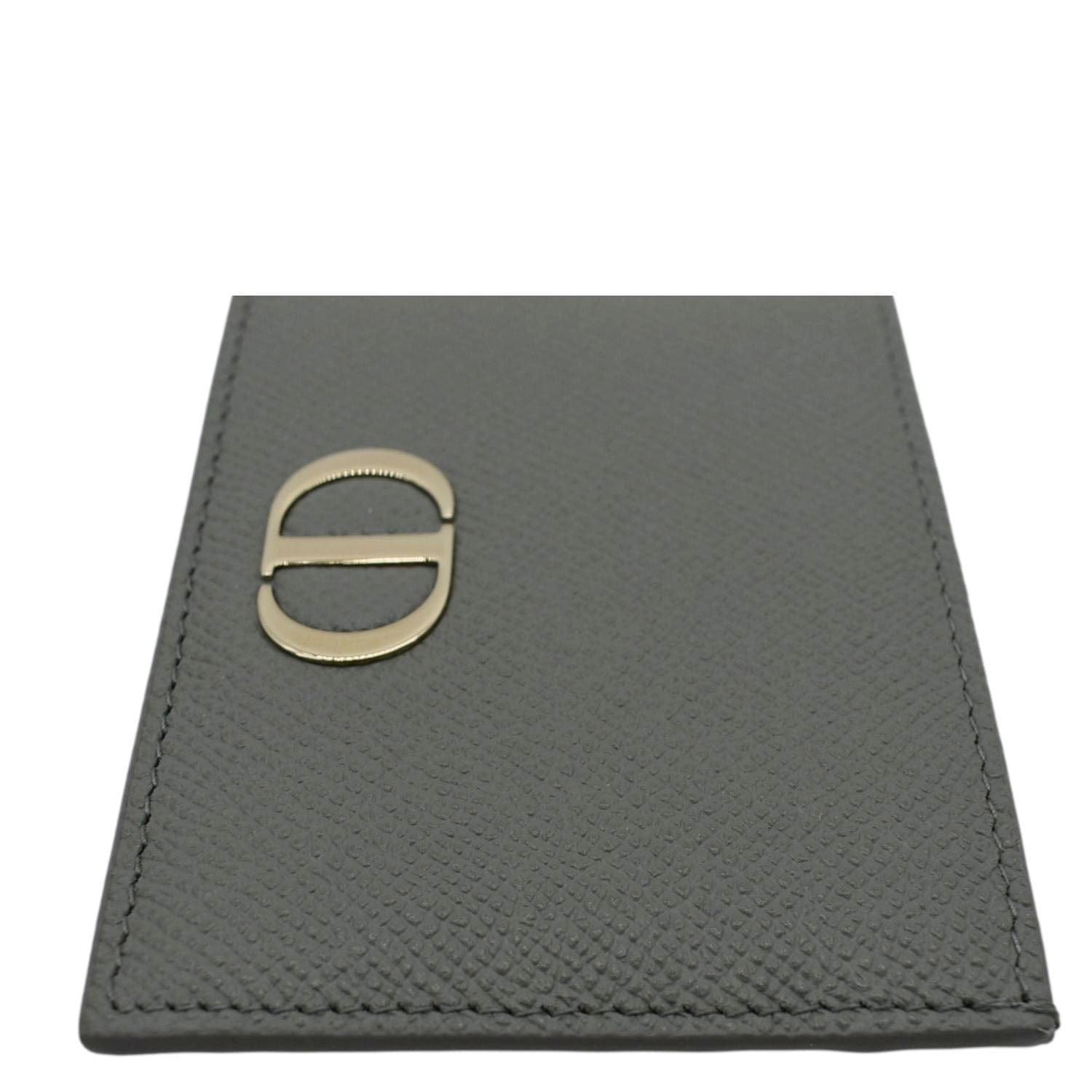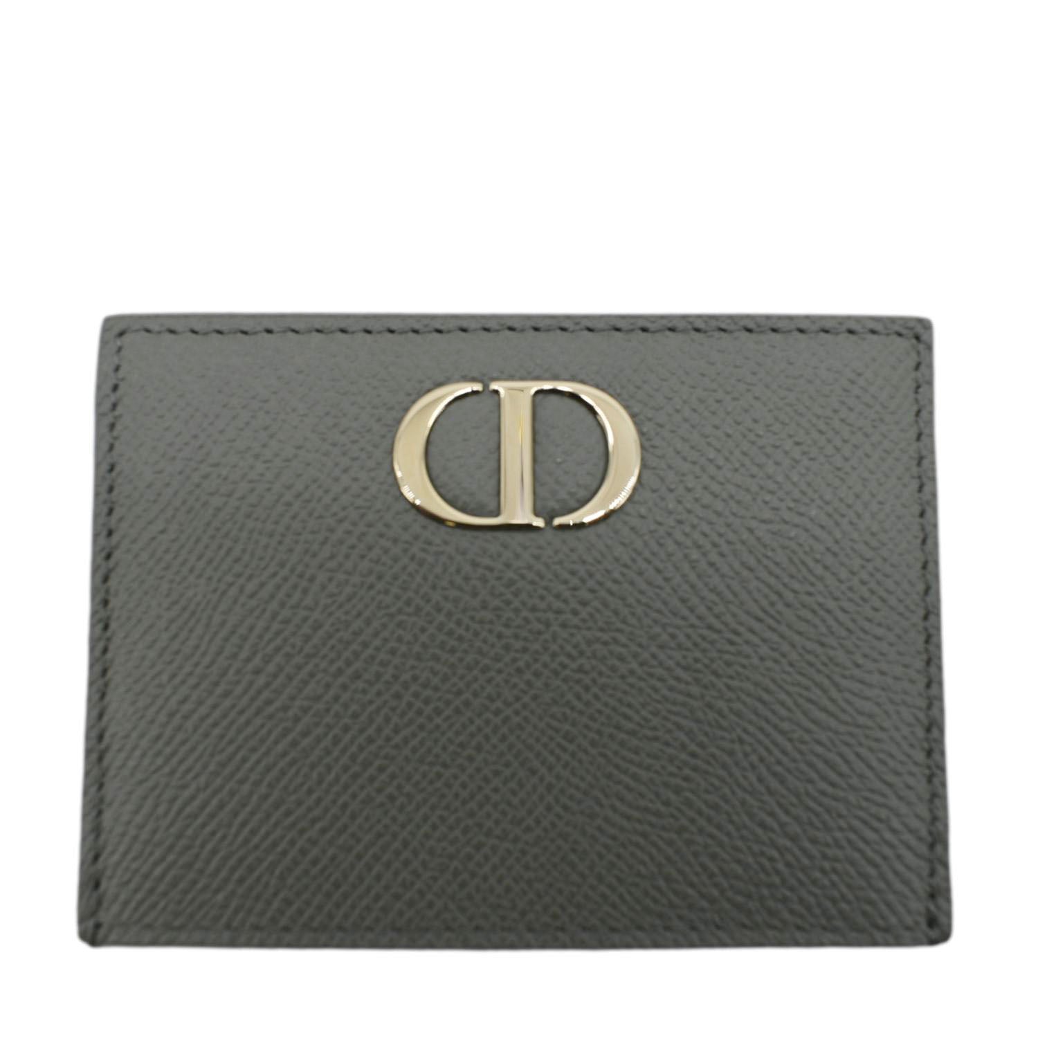 The Christian Dior 30 Montaigne Grained Calfskin Leather Card Holder in Dark Grey features a sleek design with the iconic 'CD' logo on the front. Crafted from premium-grained calfskin leather, it offers multiple card slots for stylish and practical organization.