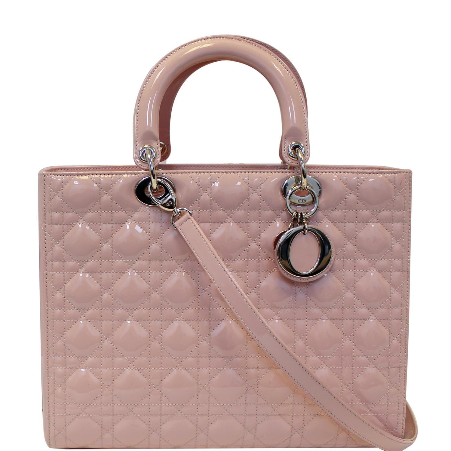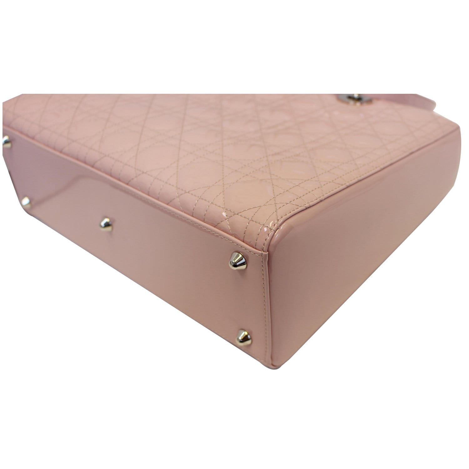 CHRISTIAN DIOR Quilted Patent Leather Lady Dior Large Shoulder Bag Pink
