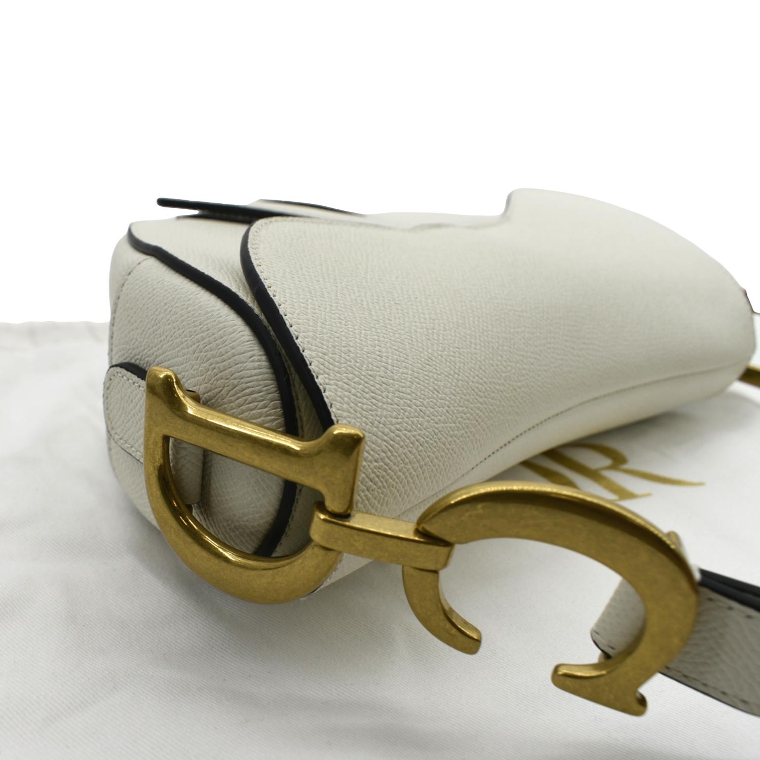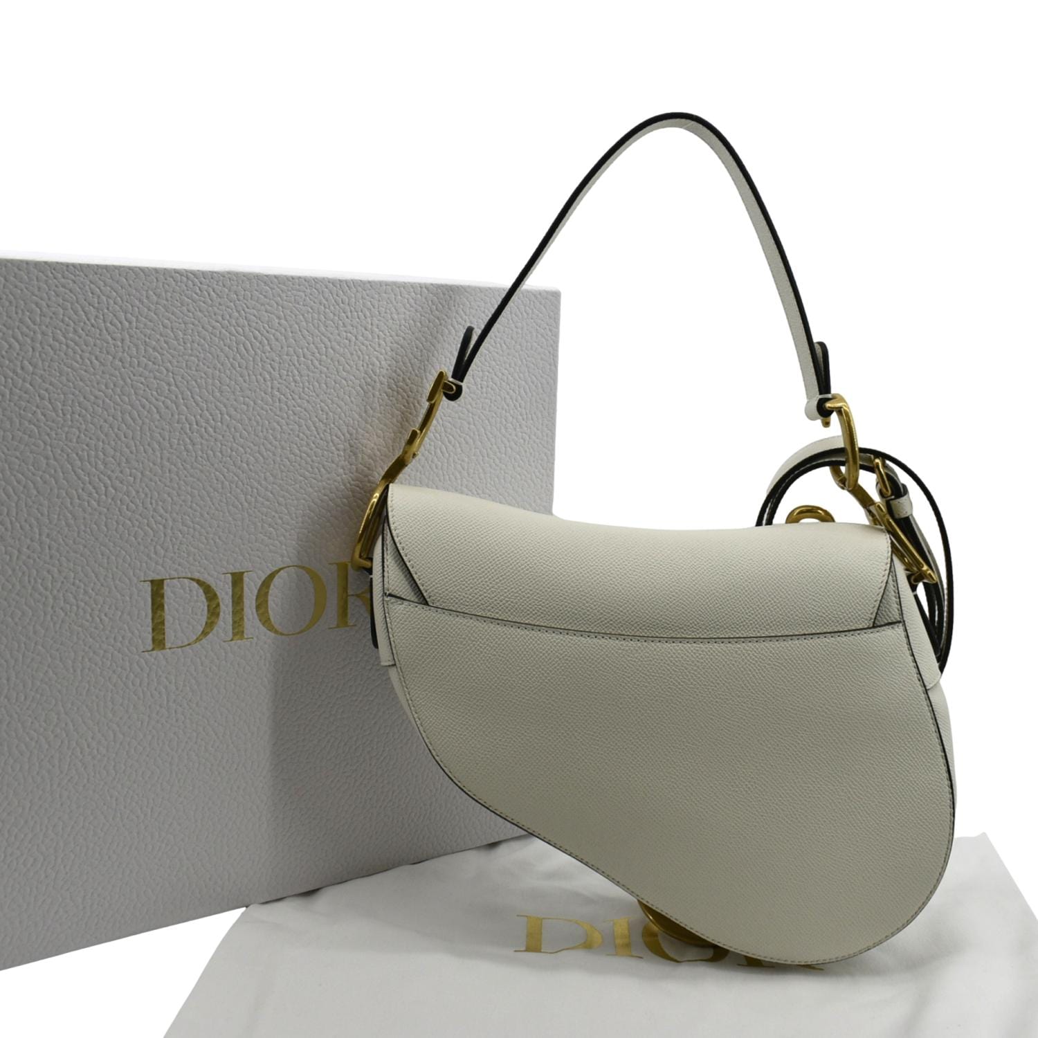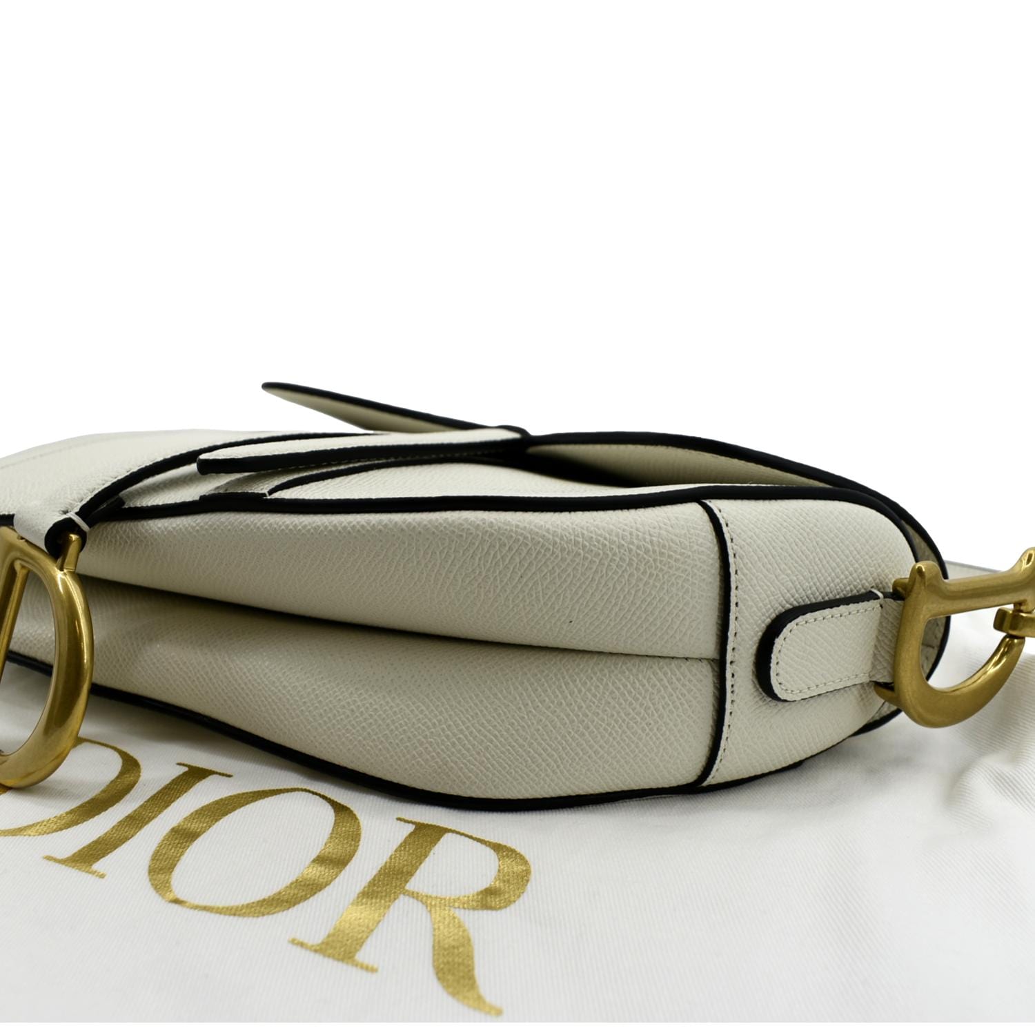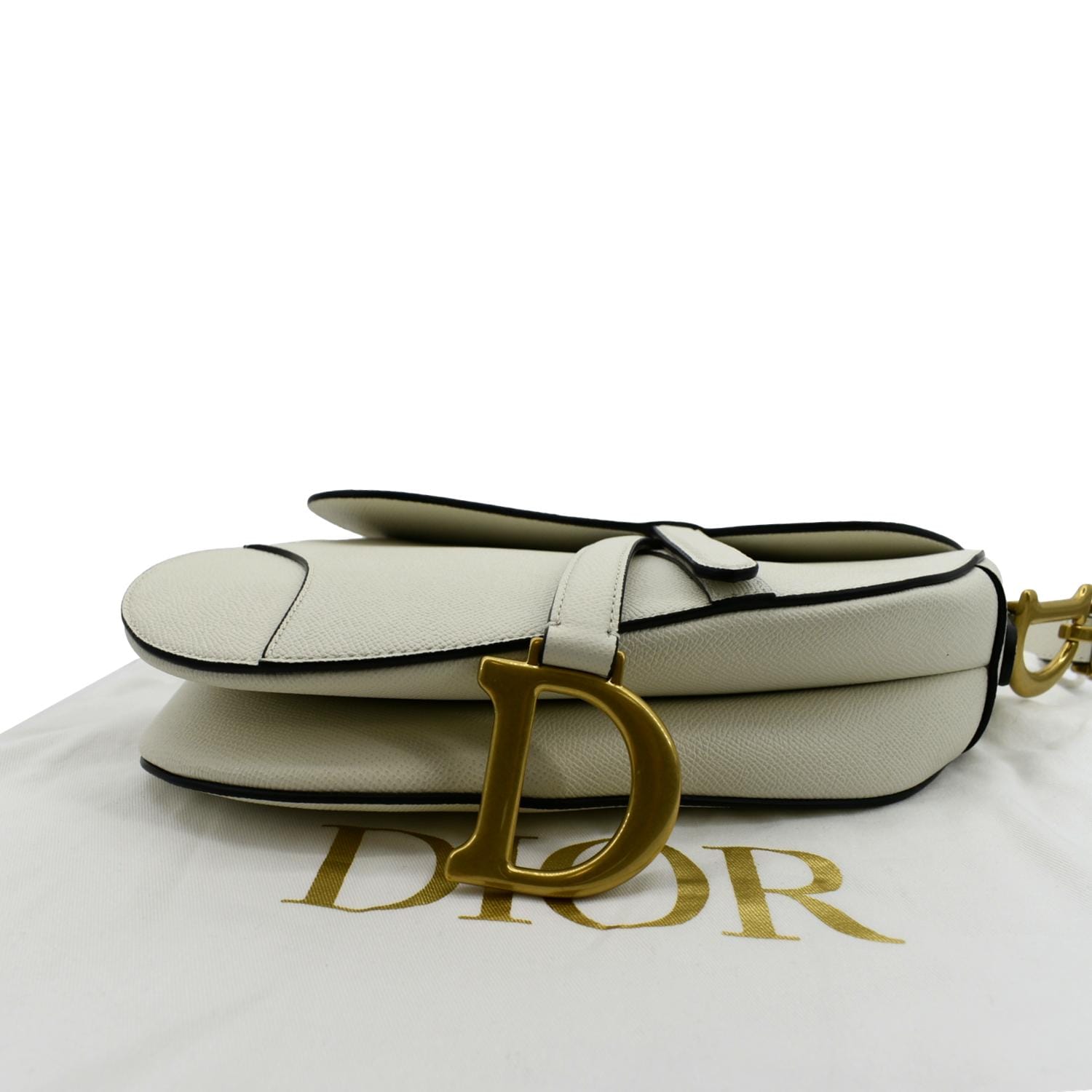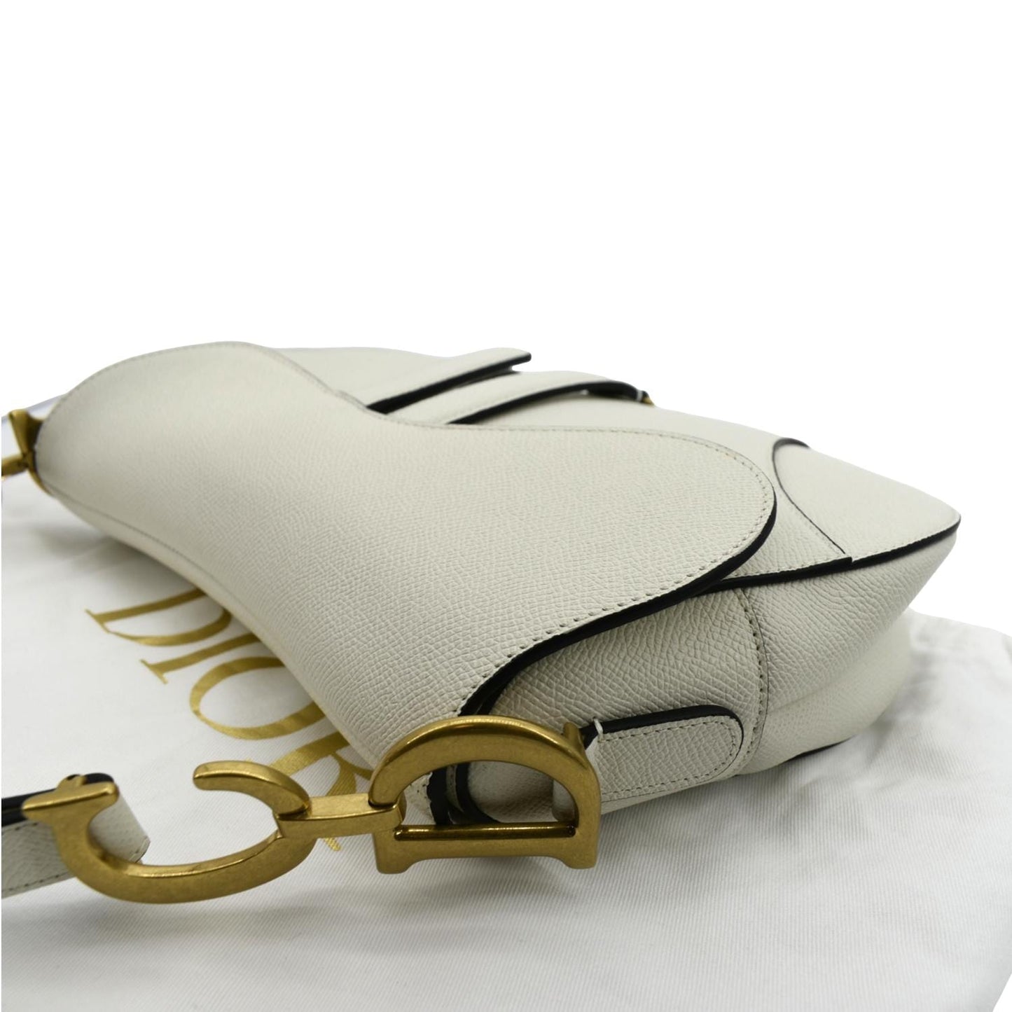 CHRISTIAN DIOR Saddle Grained Calfskin Leather Shoulder Bag Ivory