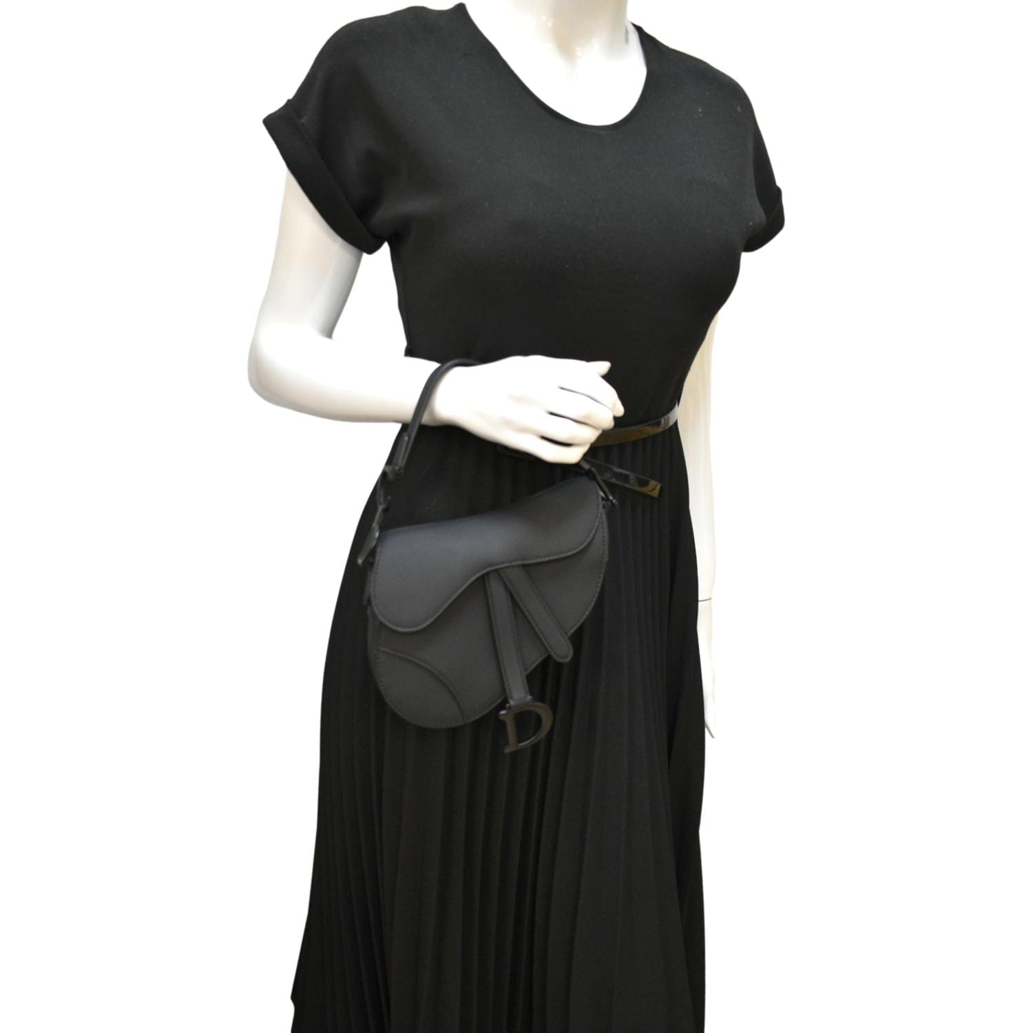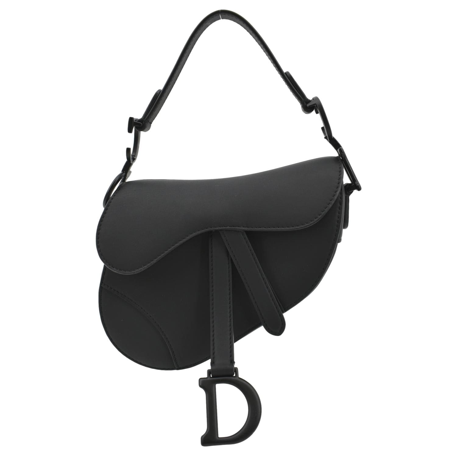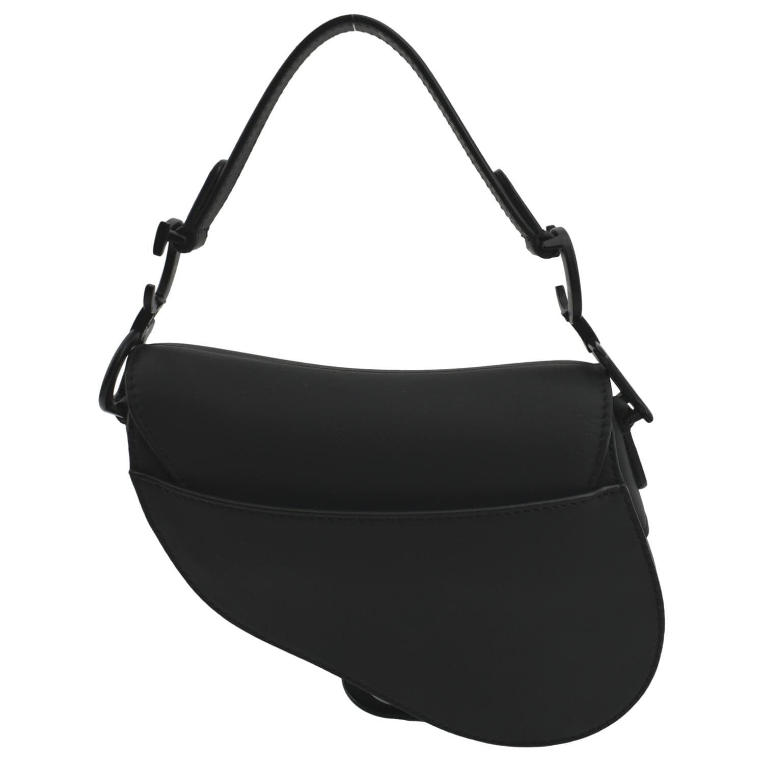 CHRISTIAN DIOR Saddle Calfskin Leather Satchel Bag Black