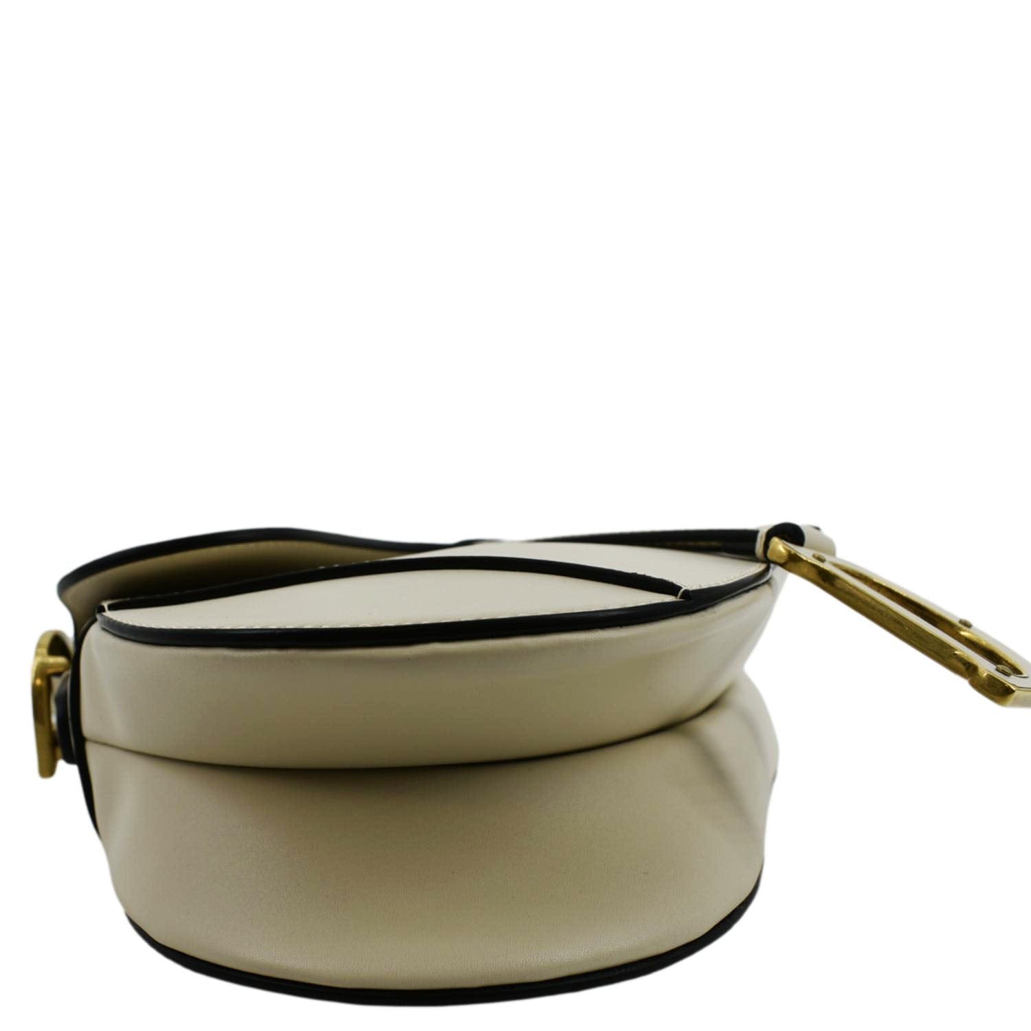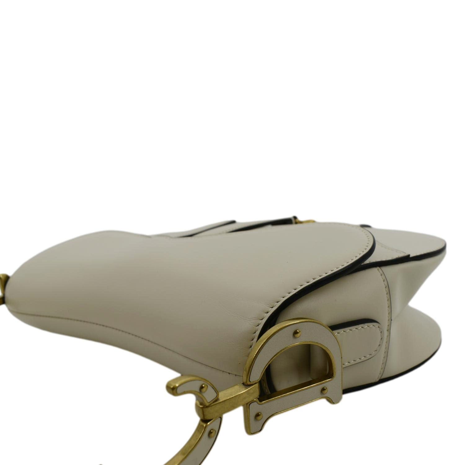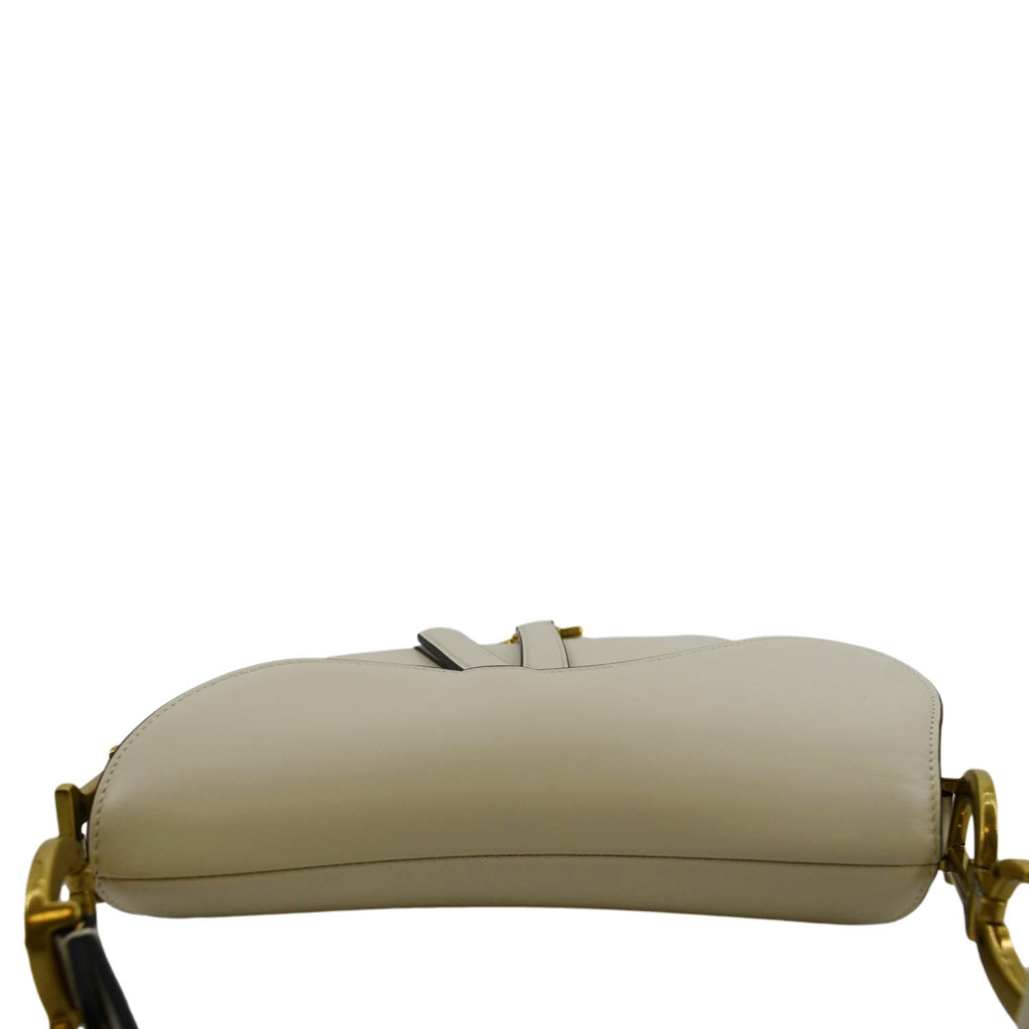 CHRISTIAN DIOR Saddle Smooth Calfskin Leather Satchel Shoulder Bag Dusty Ivory