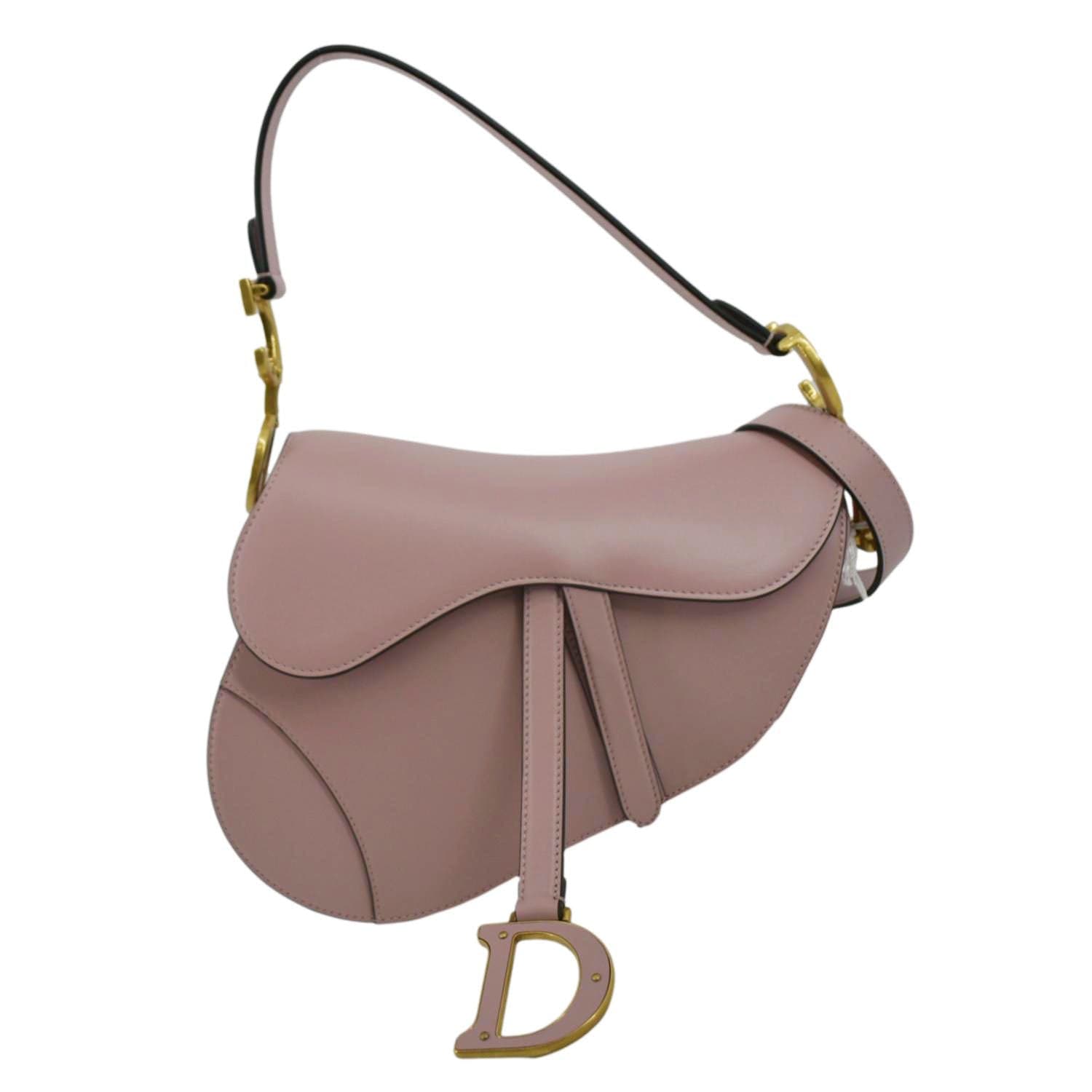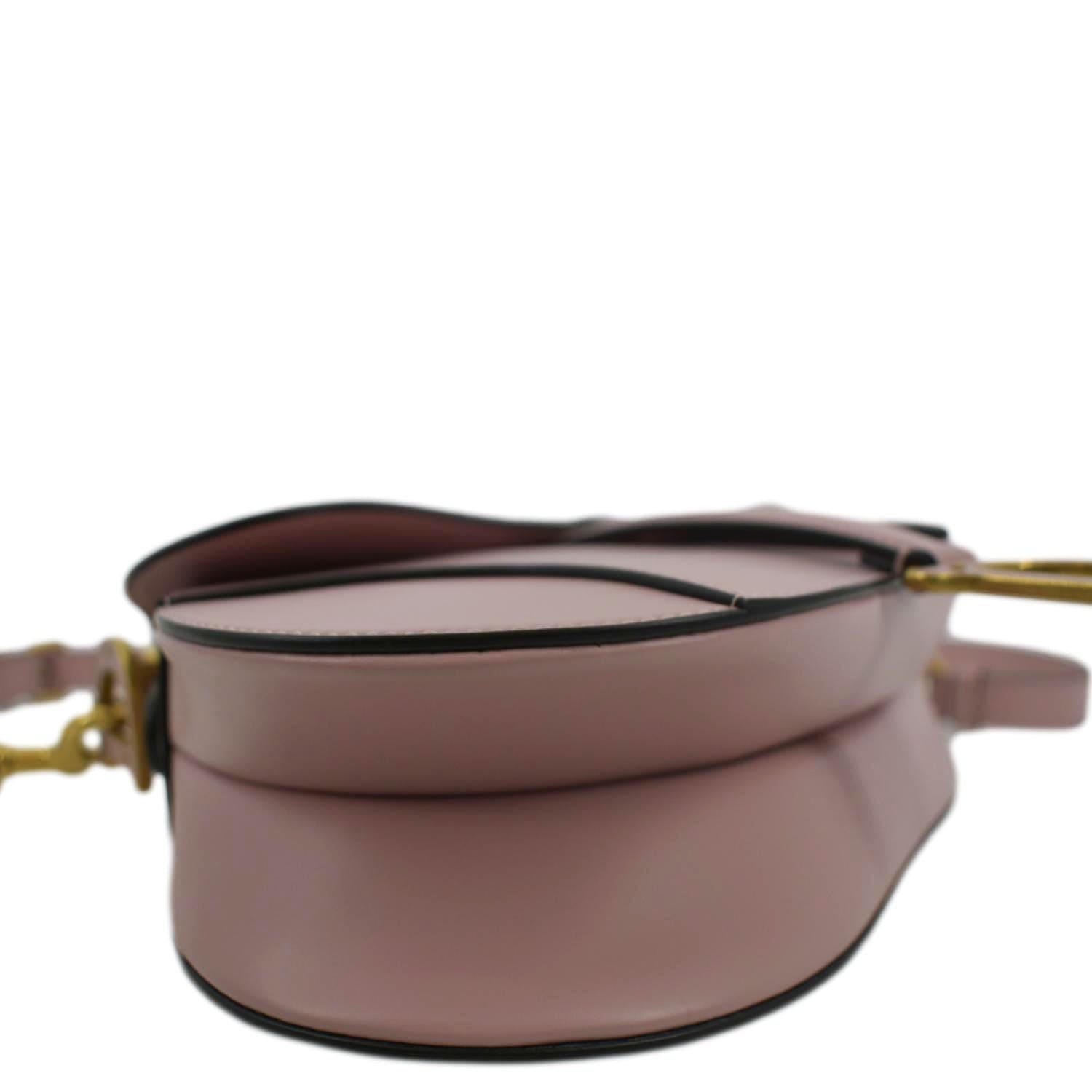CHRISTIAN DIOR Saddle Smooth Calfskin Leather Satchel Shoulder Bag Antique Pink
