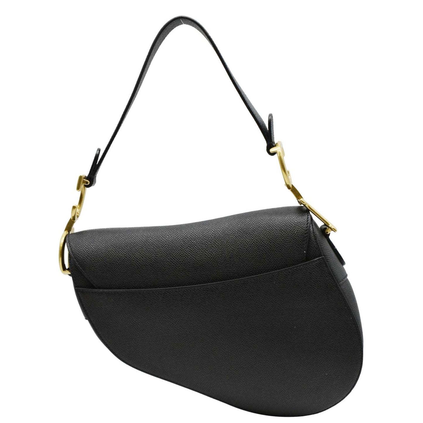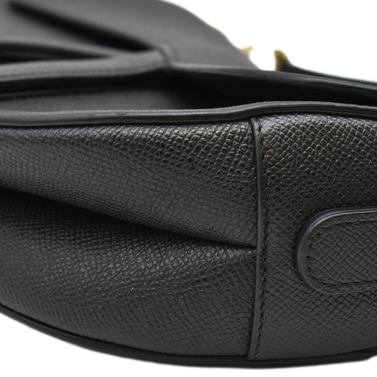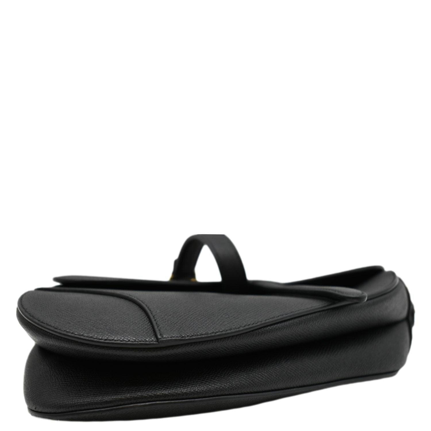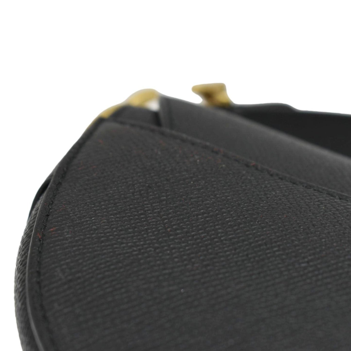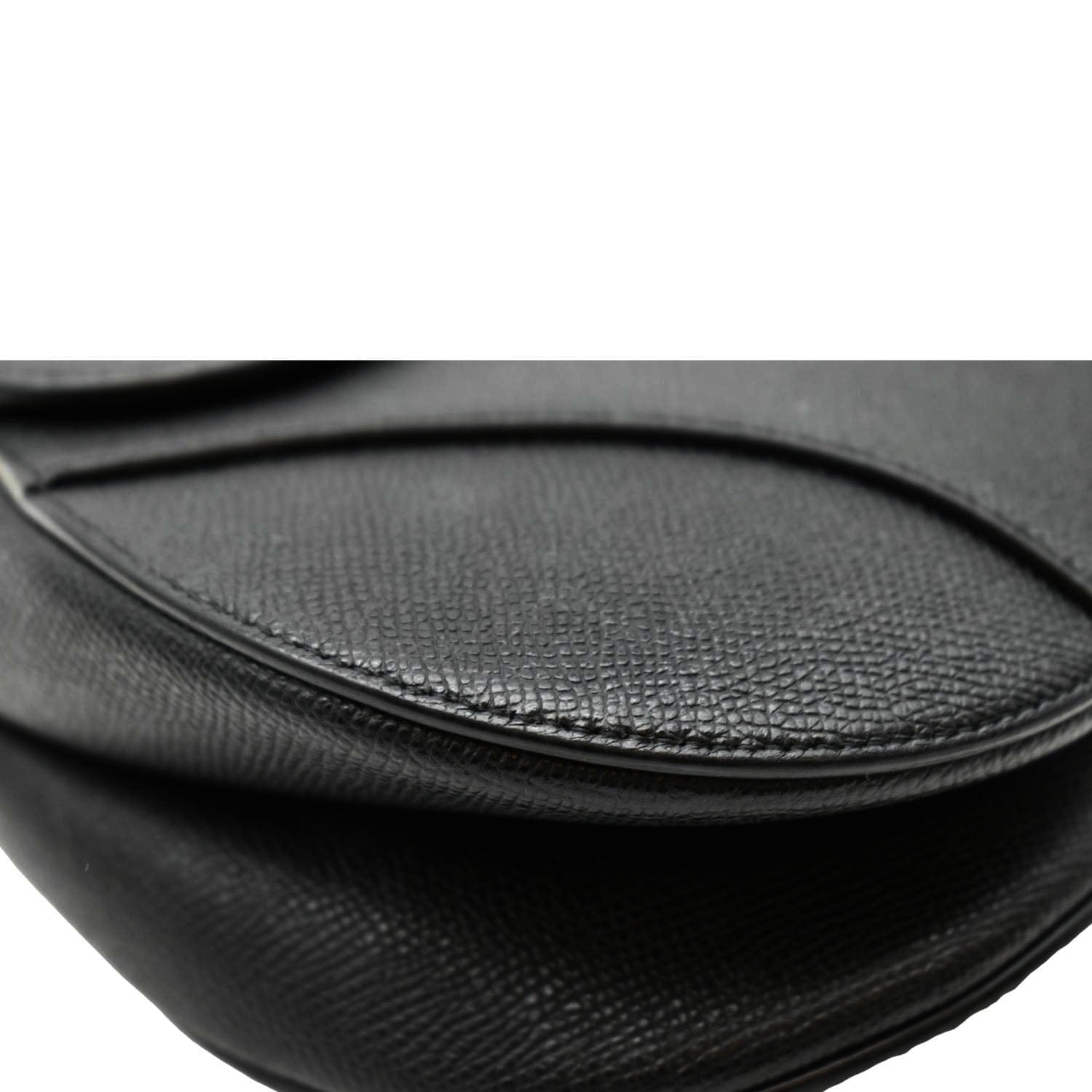 CHRISTIAN DIOR Saddle Grained Leather Satchel Shoulder Bag Black