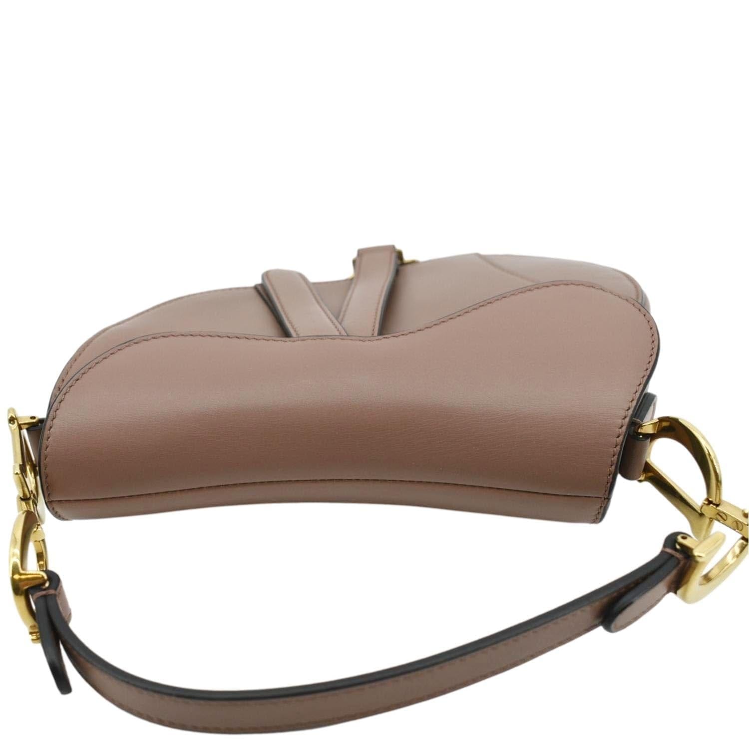 CHRISTIAN DIOR Saddle Calfskin Leather Satchel Bag Rose Taupe