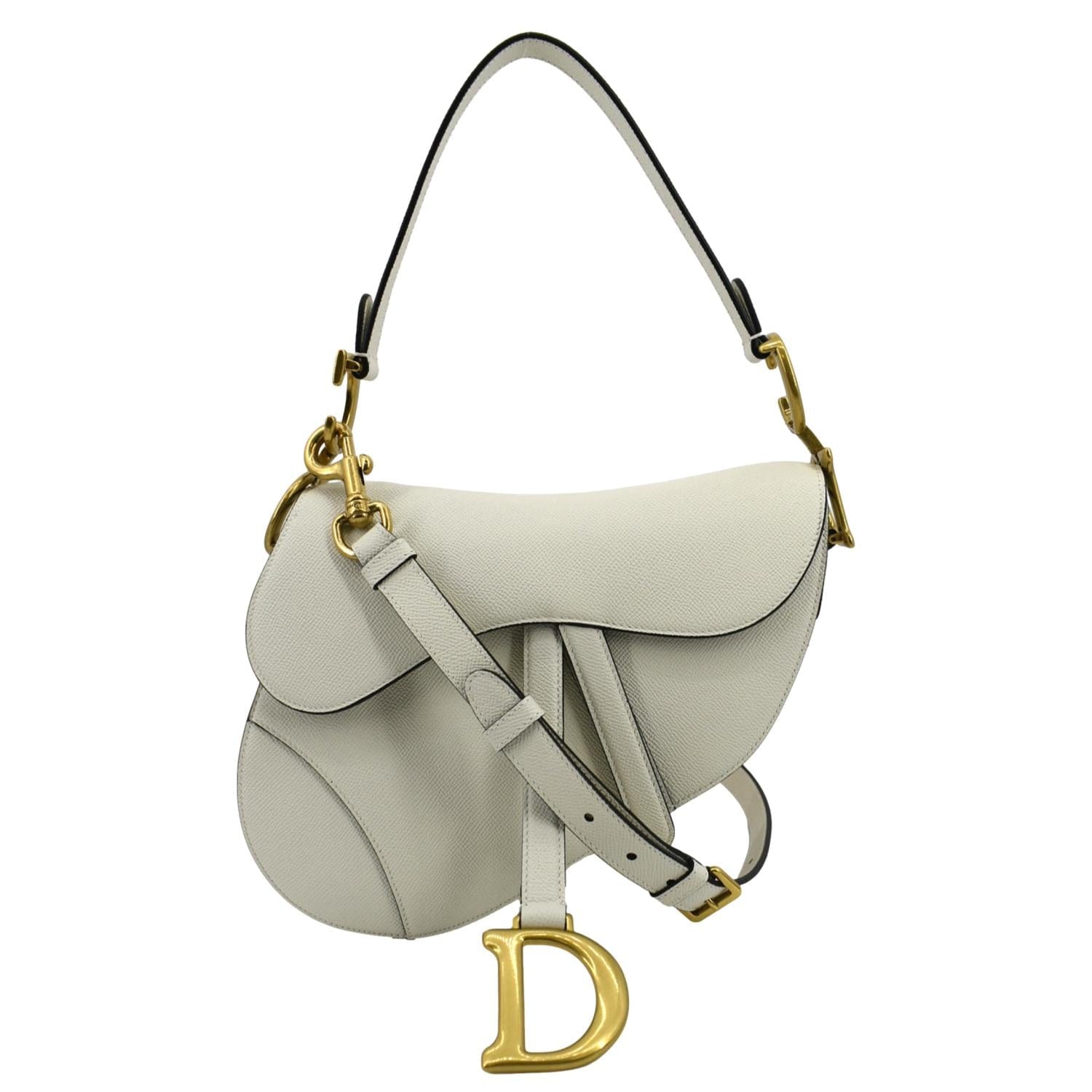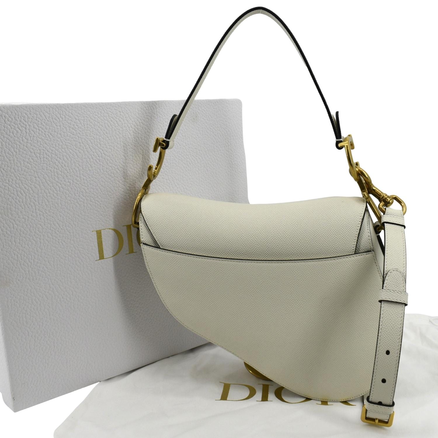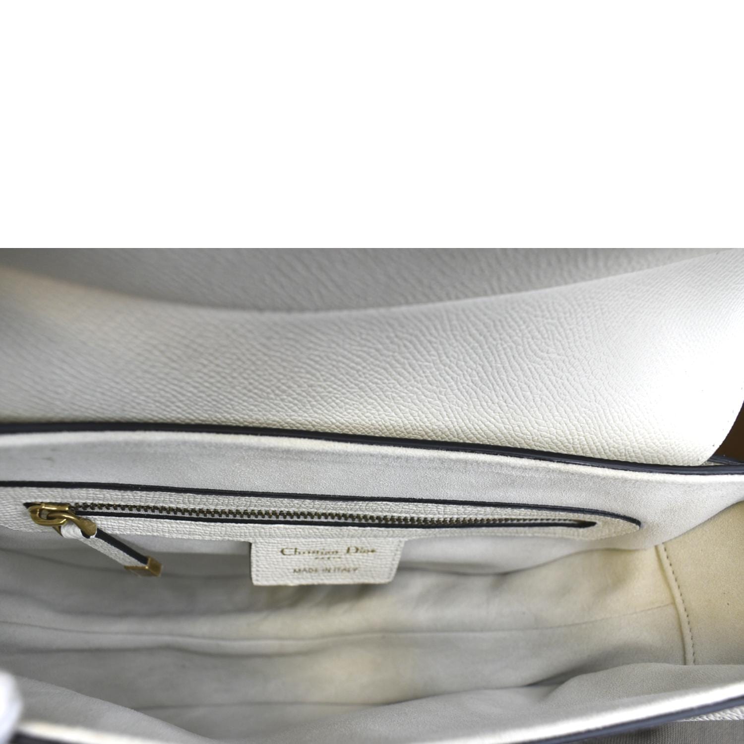 CHRISTIAN DIOR Saddle Grained Calfskin Leather Shoulder Bag Ivory