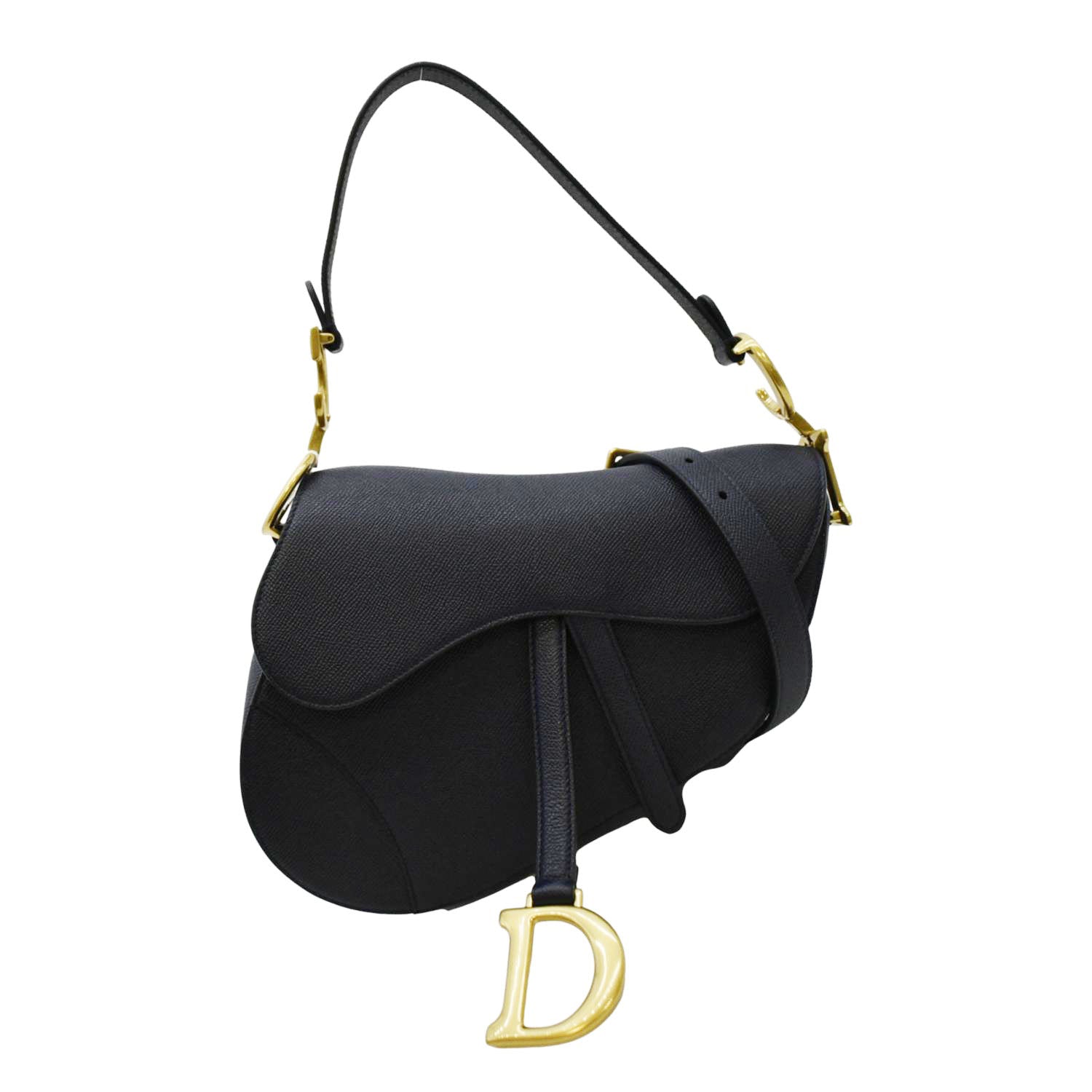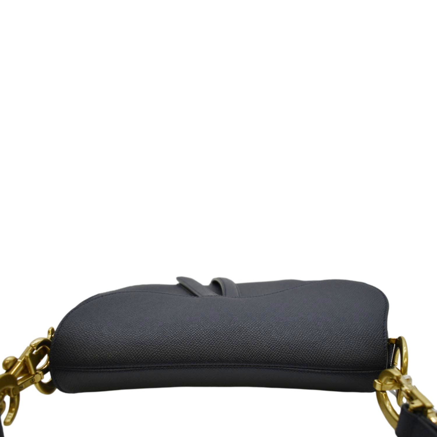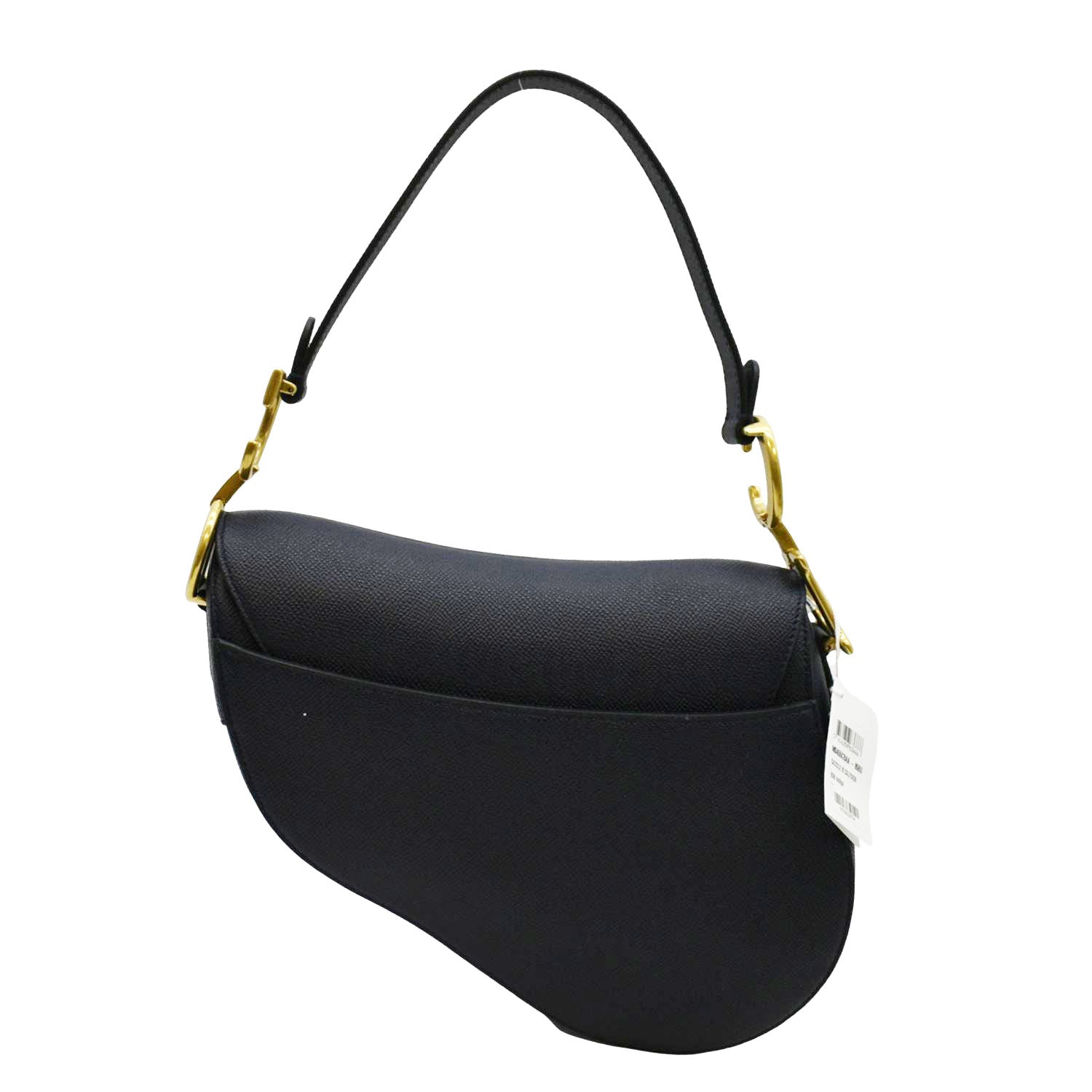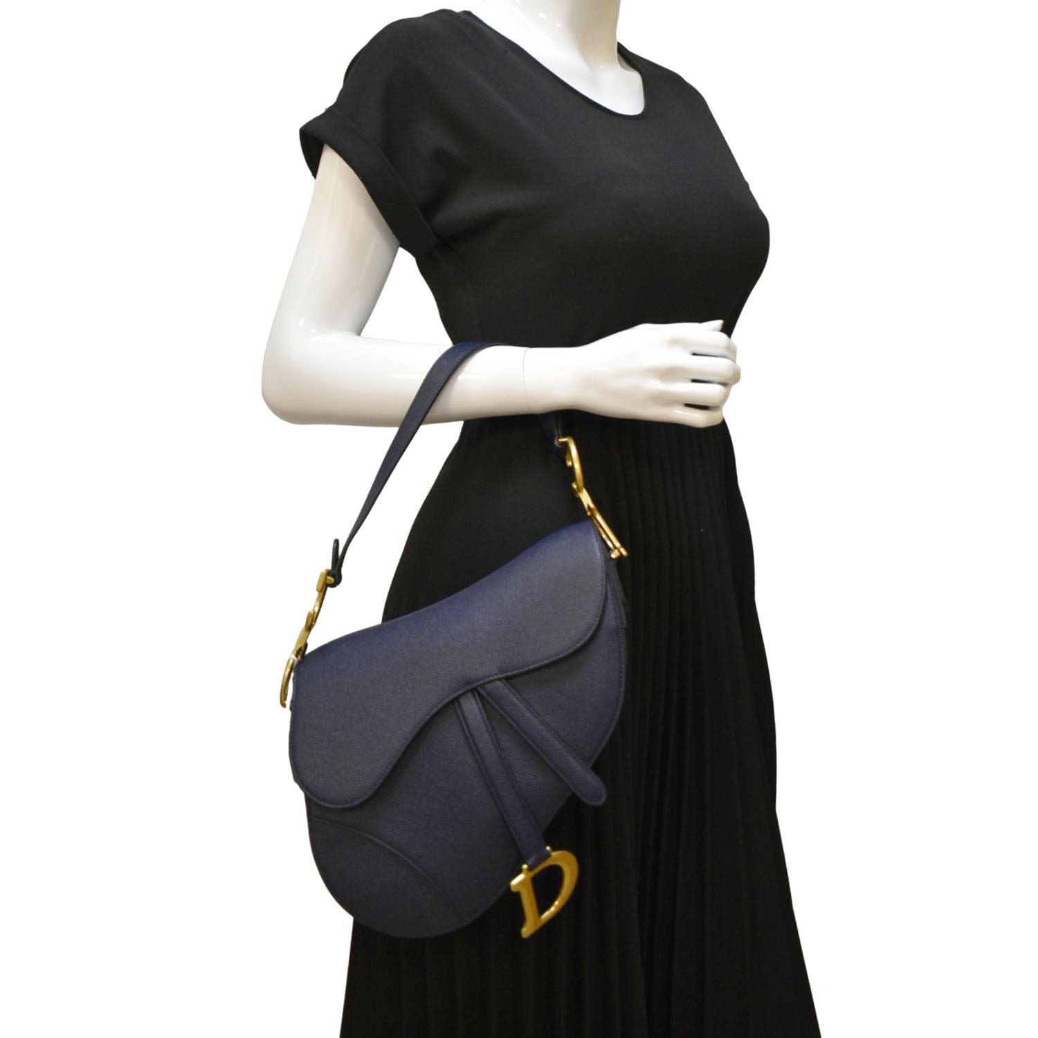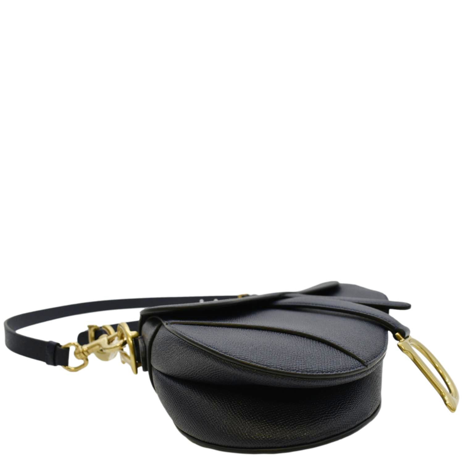 CHRISTIAN DIOR Saddle Grained Calfskin Leather Satchel Shoulder Bag Navy Blue