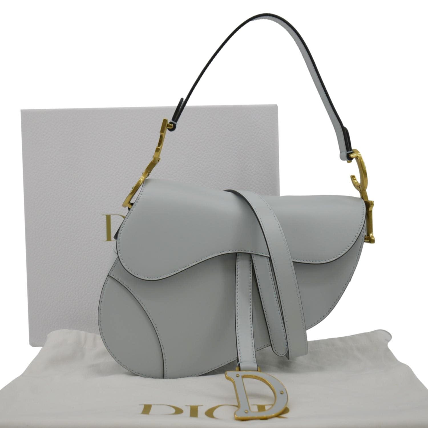 CHRISTIAN DIOR Saddle Smooth Calfskin Leather Satchel Bag Placid Blue