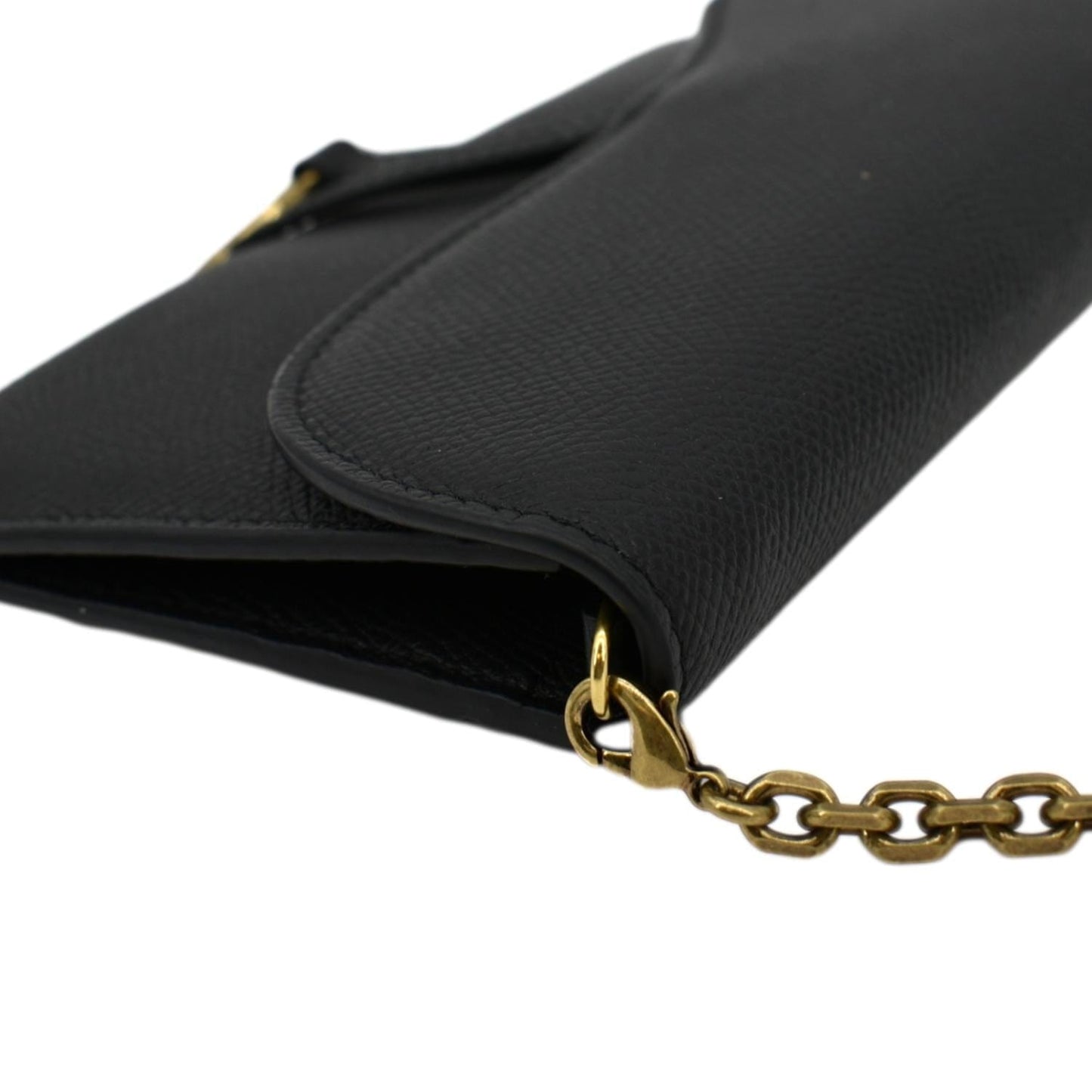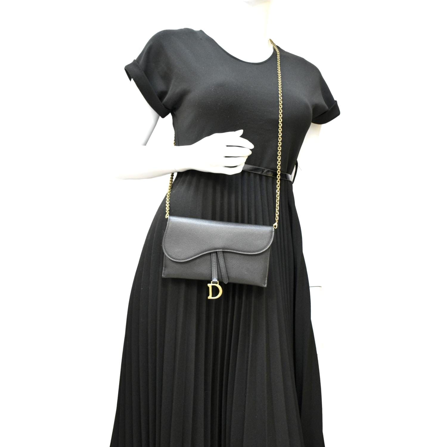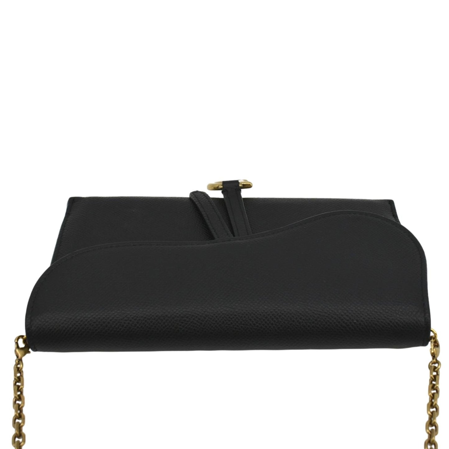 CHRISTIAN DIOR Long Saddle Leather Crossbody Chain Wallet Black