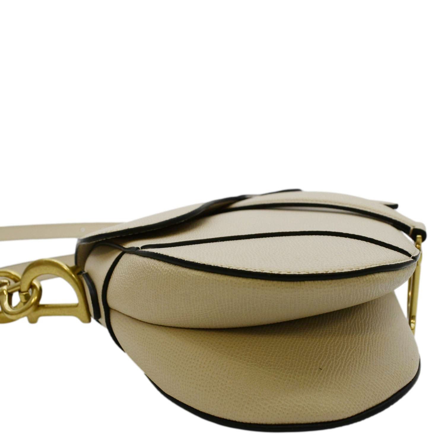 CHRISTIAN DIOR Grained Leather Saddle Caramel Beige Satchel