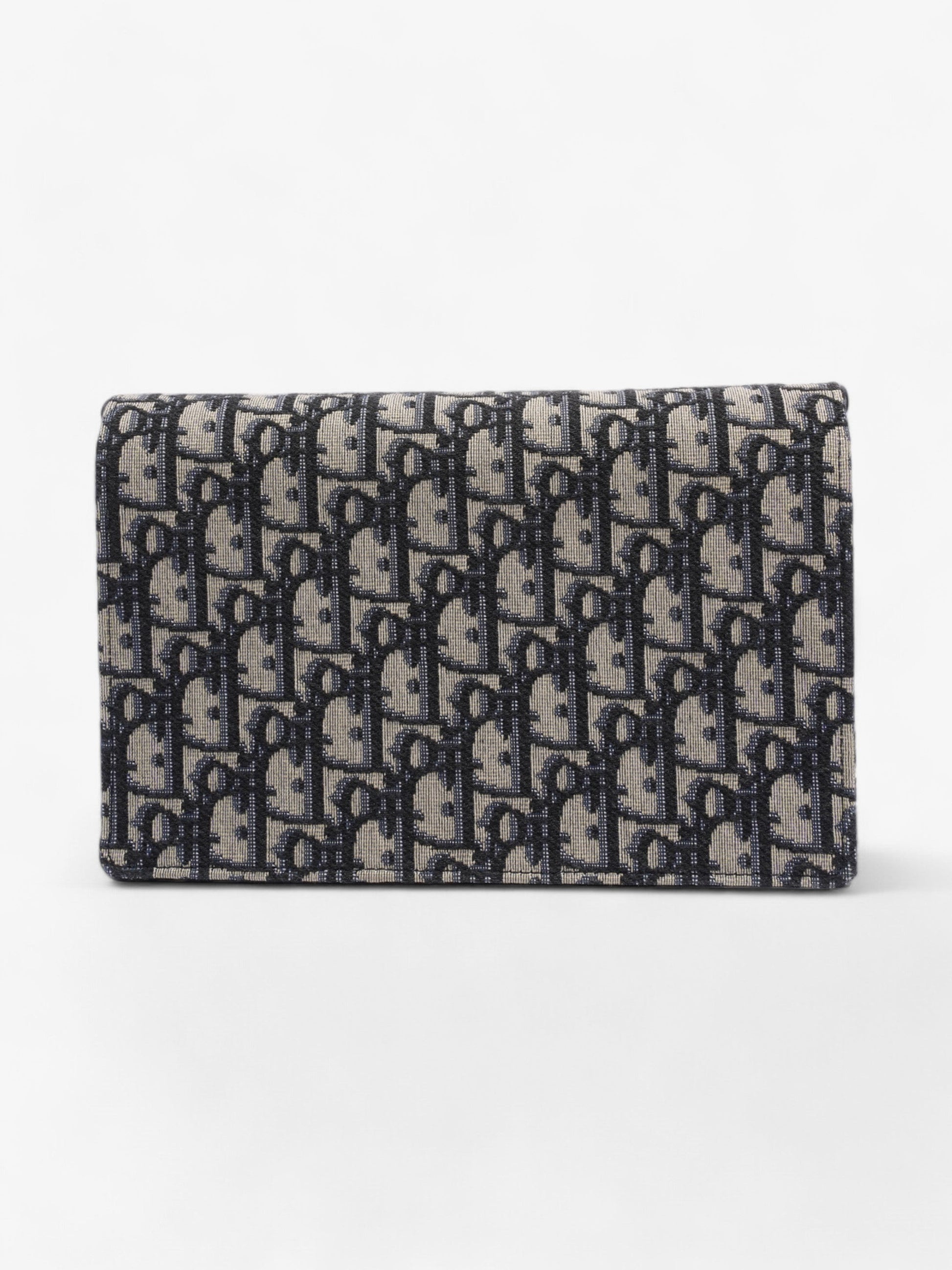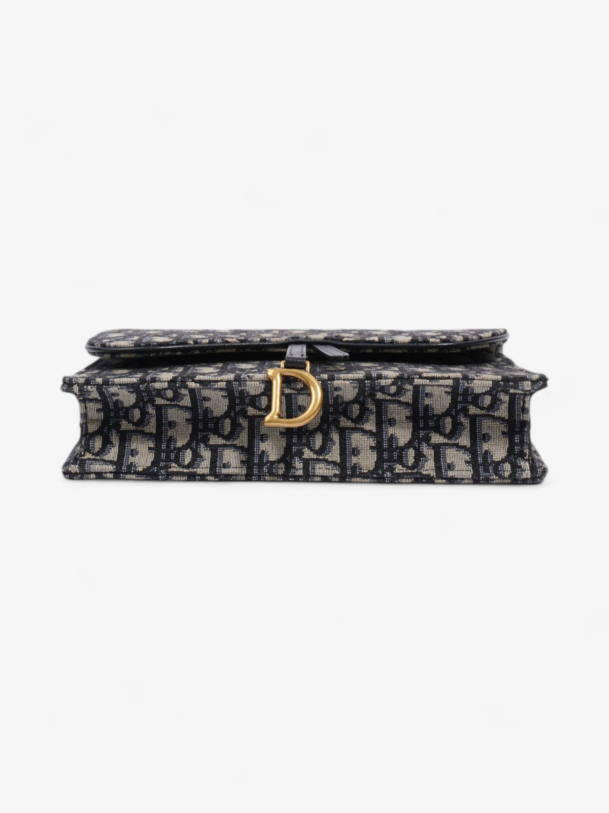 Christian Dior Saddle Pouch with Chain Blue Oblique Cotton Medium