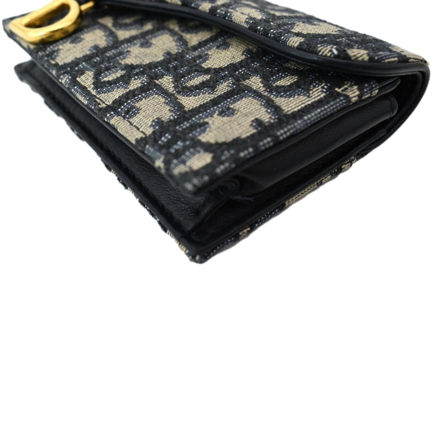 CHRISTIAN DIOR Saddle Flap Jacquard Canvas Card Holder Beige