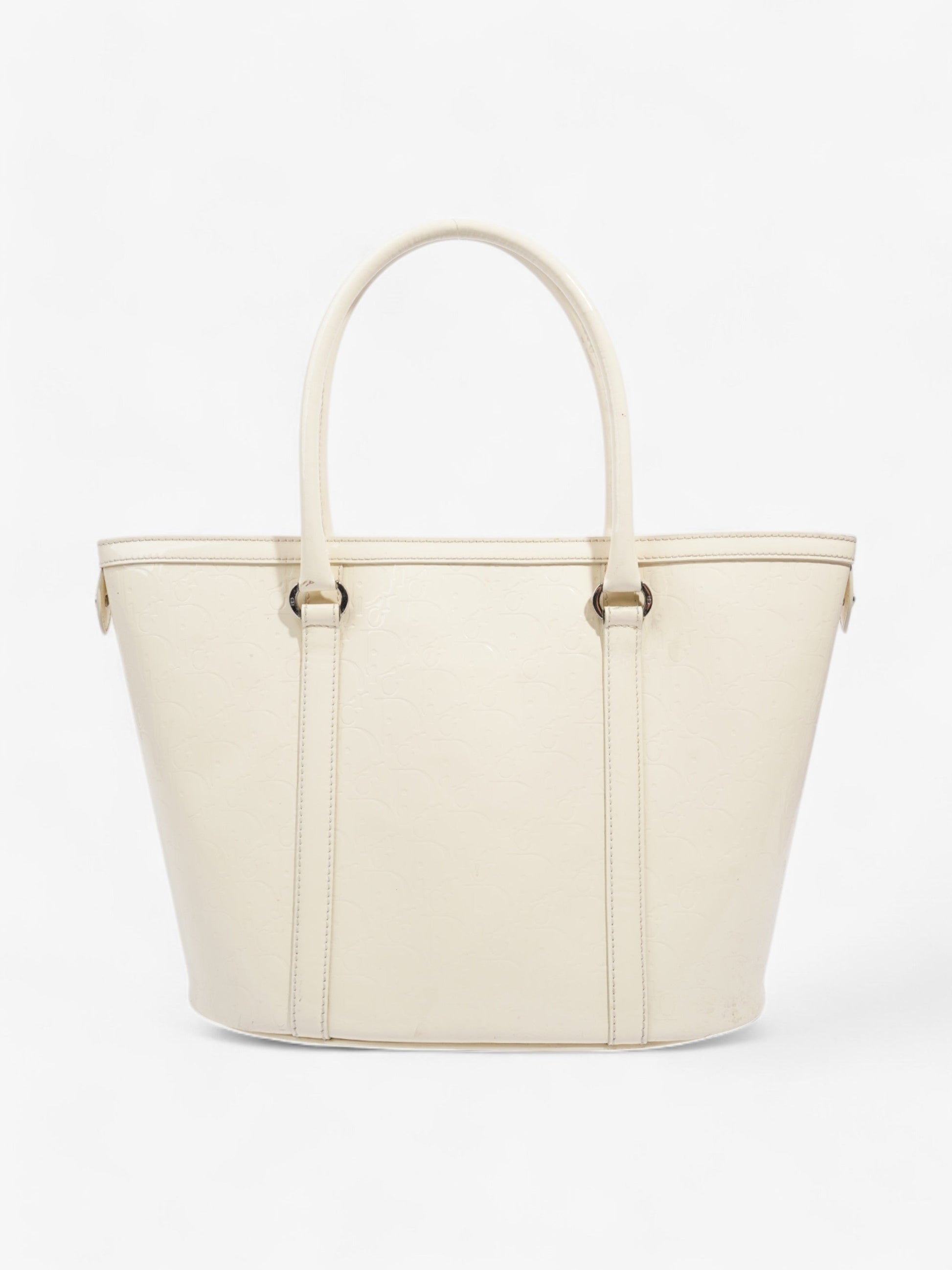 Christian Dior Tote Bag Off White Patent Leather