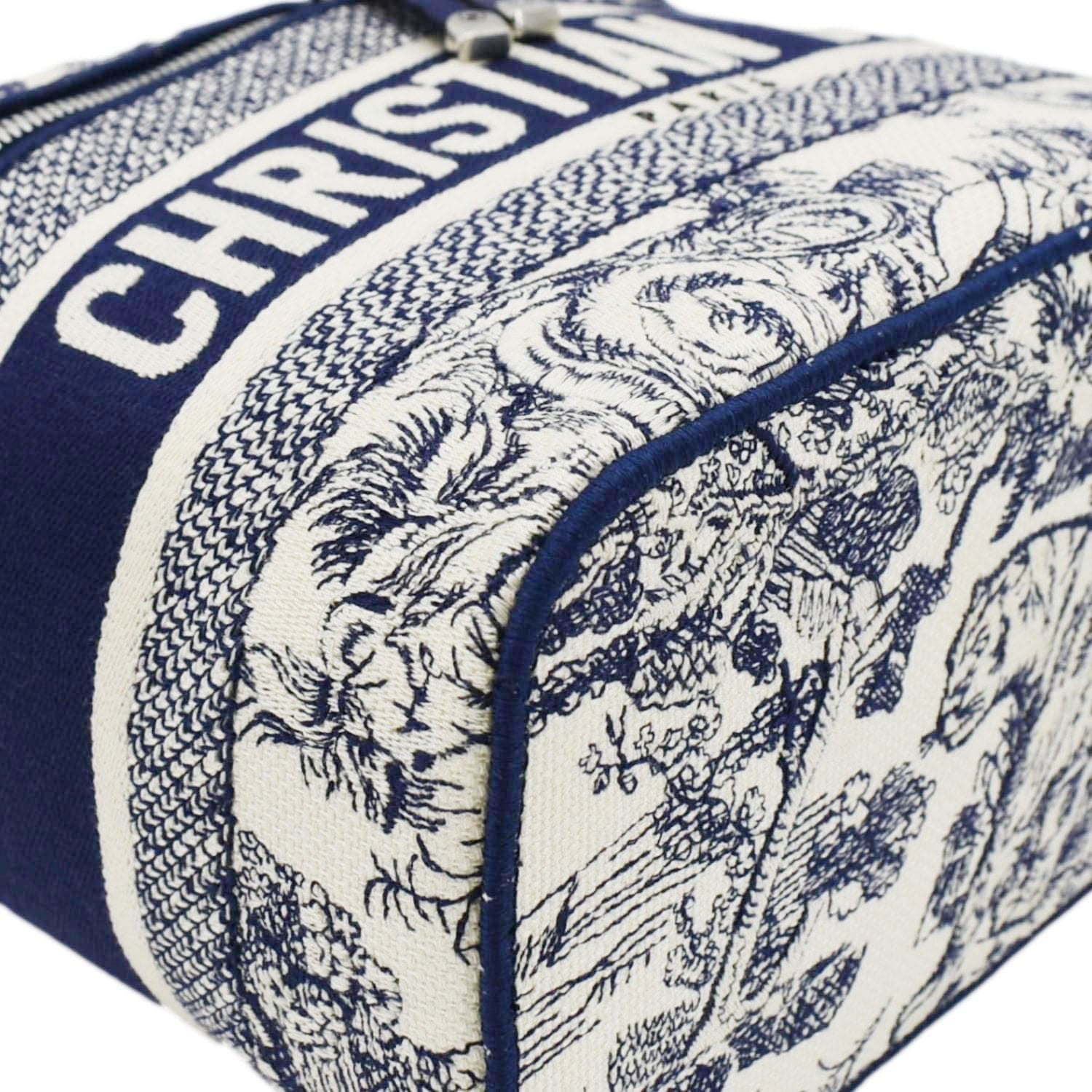 CHRISTIAN DIOR Travel Oblique Embroidery Canvas Vanity Case Blue